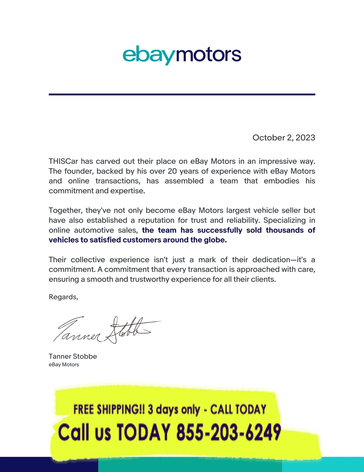 Notice to Bidders: The vehicles we list for sale on eBay are owned by THIScar and/or our retail partners and are also for sale at our collective retail locations nationwide. As a result, vehicles may sell locally while the listing is still active.