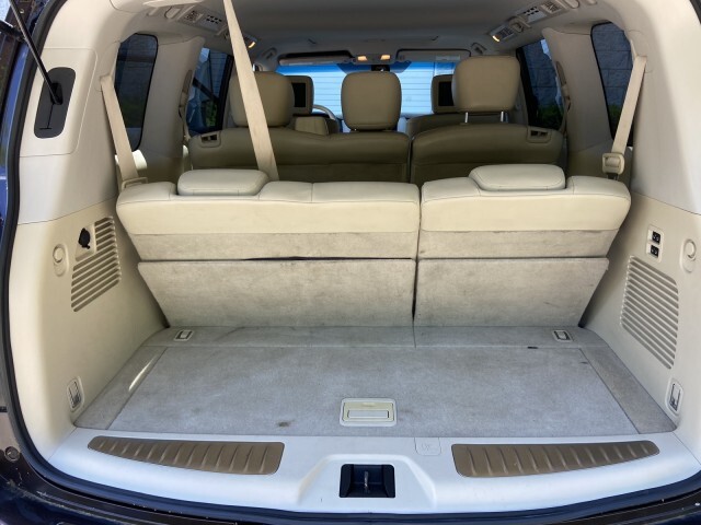 CLEAN CARFAX, WELL SERVICED, NON SMOKER... THIS INFINITI QX56 IS VERY CLEAN INSIDE AND OUT... IT RUNS AND DRIVES GREAT!!! FULLY LOADED WITH OPTIONS.... 8 PASSENGER, 4WD, Navigation, Back Up Camera , Keyless Start , Leather Interior , Moonroof , Ice Cold A/C , Heated seats , Bluetooth , 3rd Row Seats , Power Seats , ABS Brakes , Alloy Wheels , Park Distance Control , Tilt Wheel , Cruise control , And Much More.... CLICK VIEW ALL IMAGES TO SEE OVER 50 PHOTOS ! My name Is Dennis Contact me at631-731-1562. I will be happy to help.