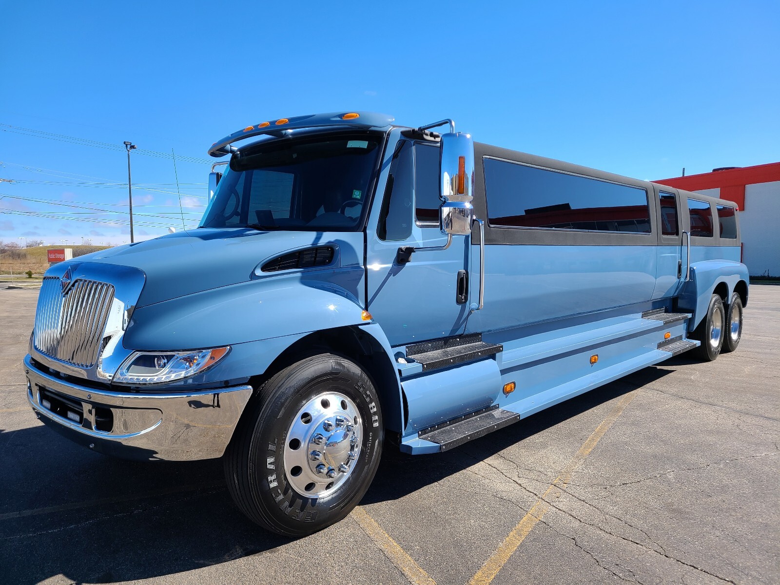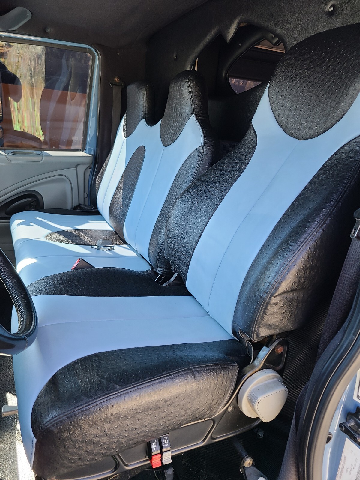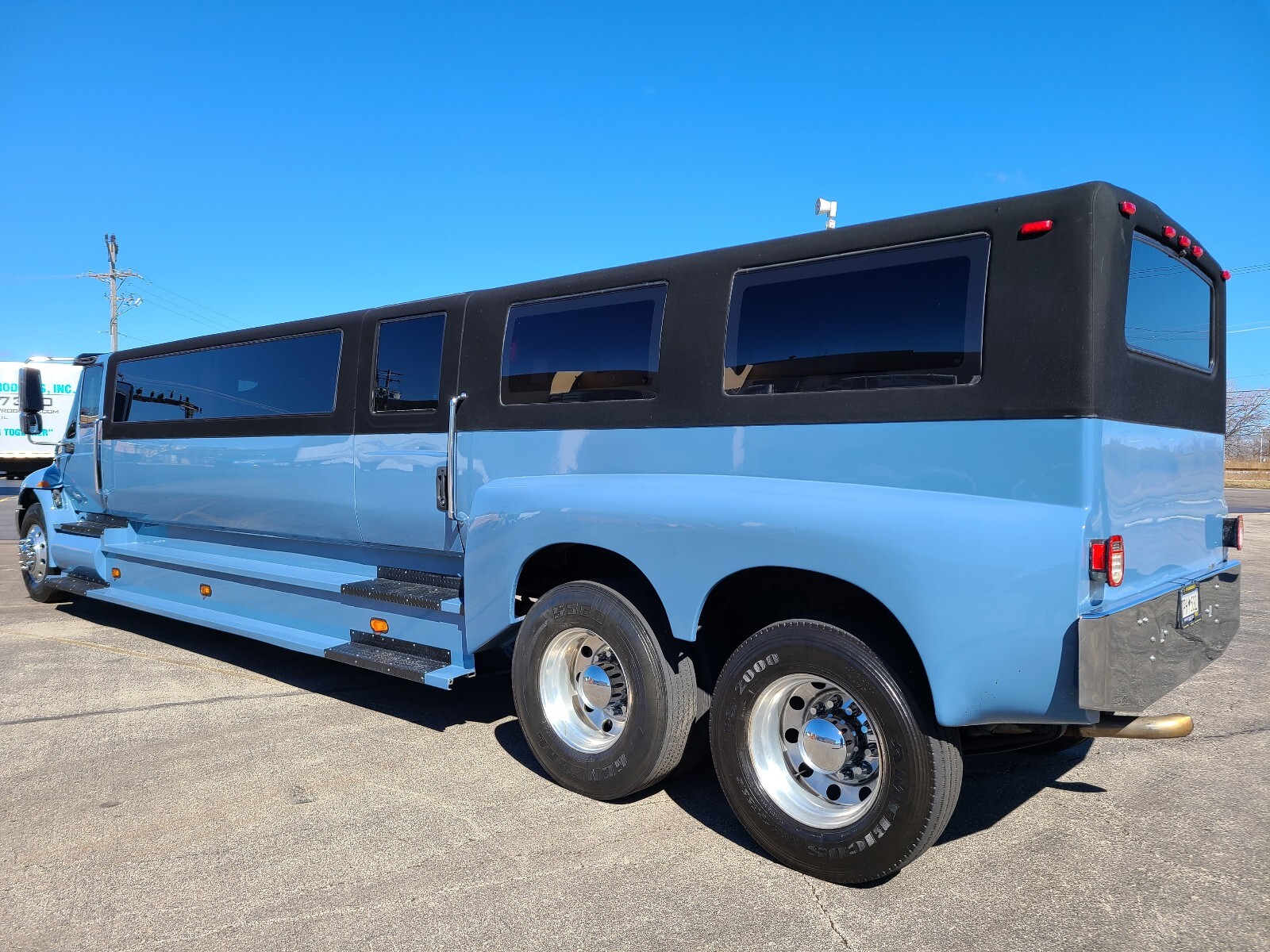 This bus is a dream long list of recent upgrades including a completely new paint job & interior to match the 2023 Mercades G wagon AMG 63 periwinkle blue ?