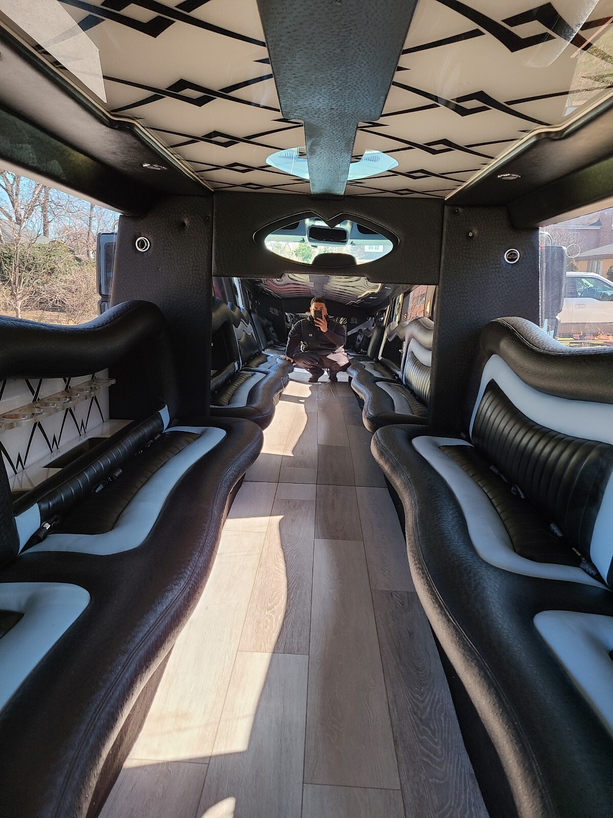 Custom design led headliner,4 mini bars, laser led, 2 tvs front and rear thru mirrored glass,Alpine sound system the list goes on and on