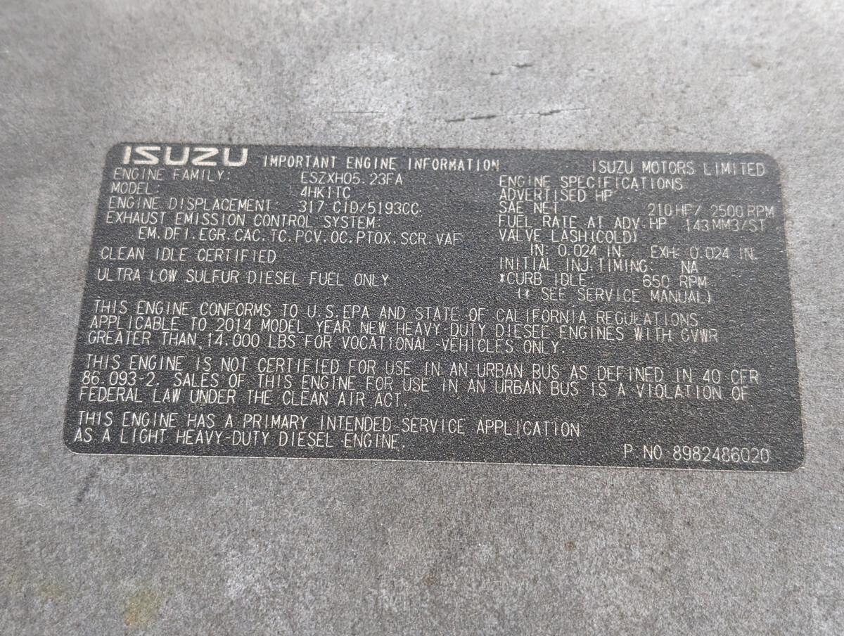2015 Isuzu NQR 12FT Dump Truck DIESEL 72460 Miles 5.2L I4
