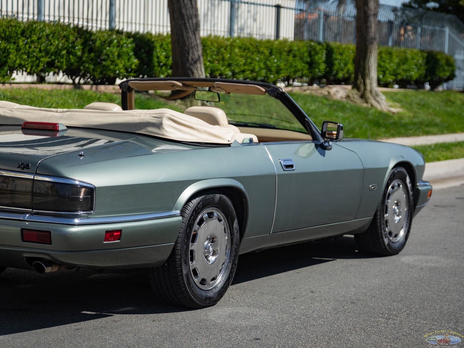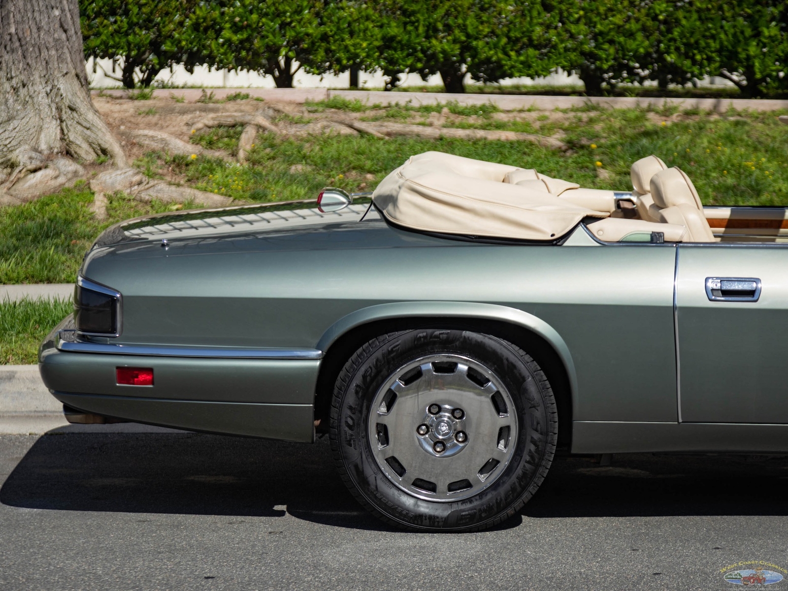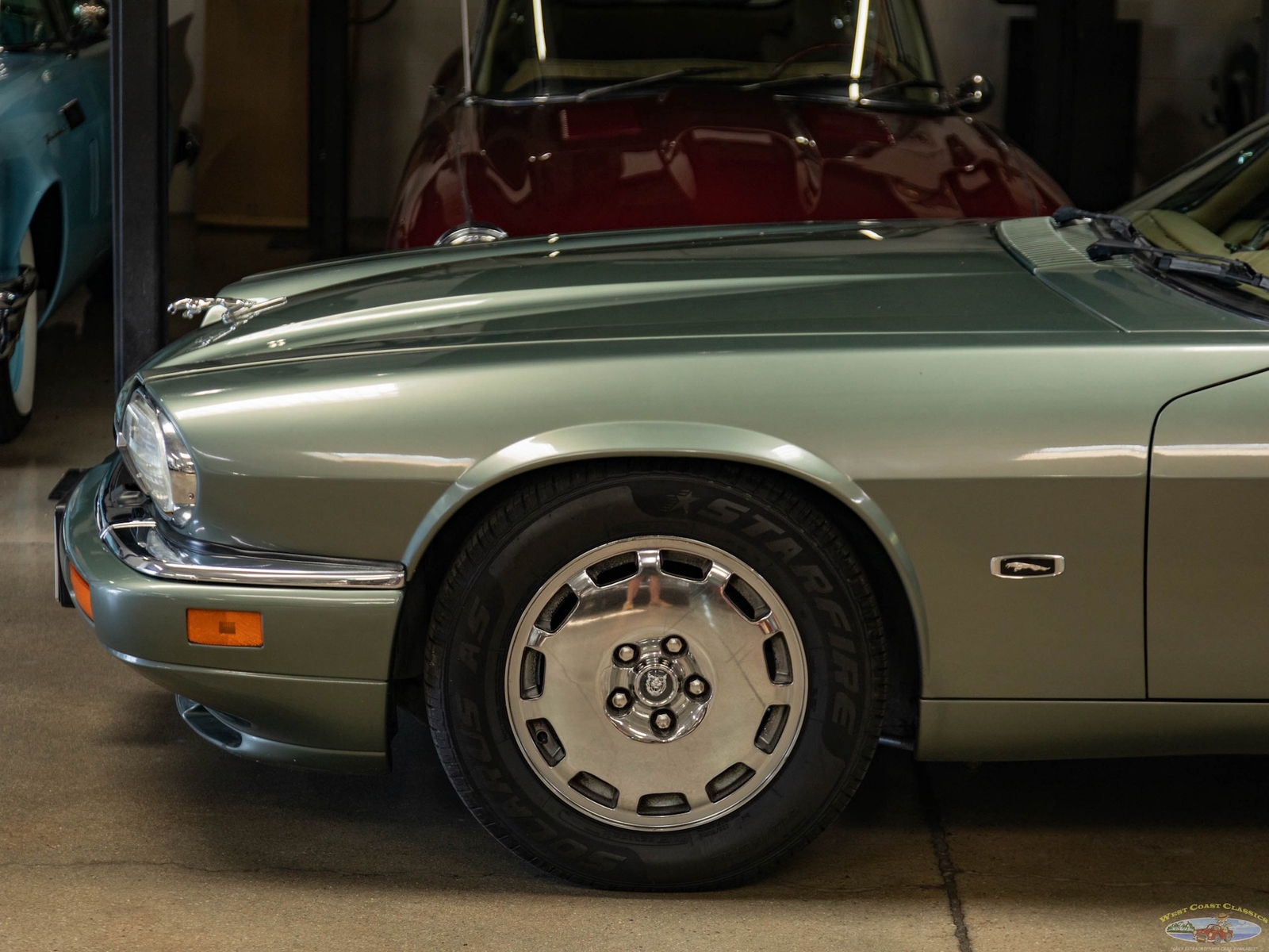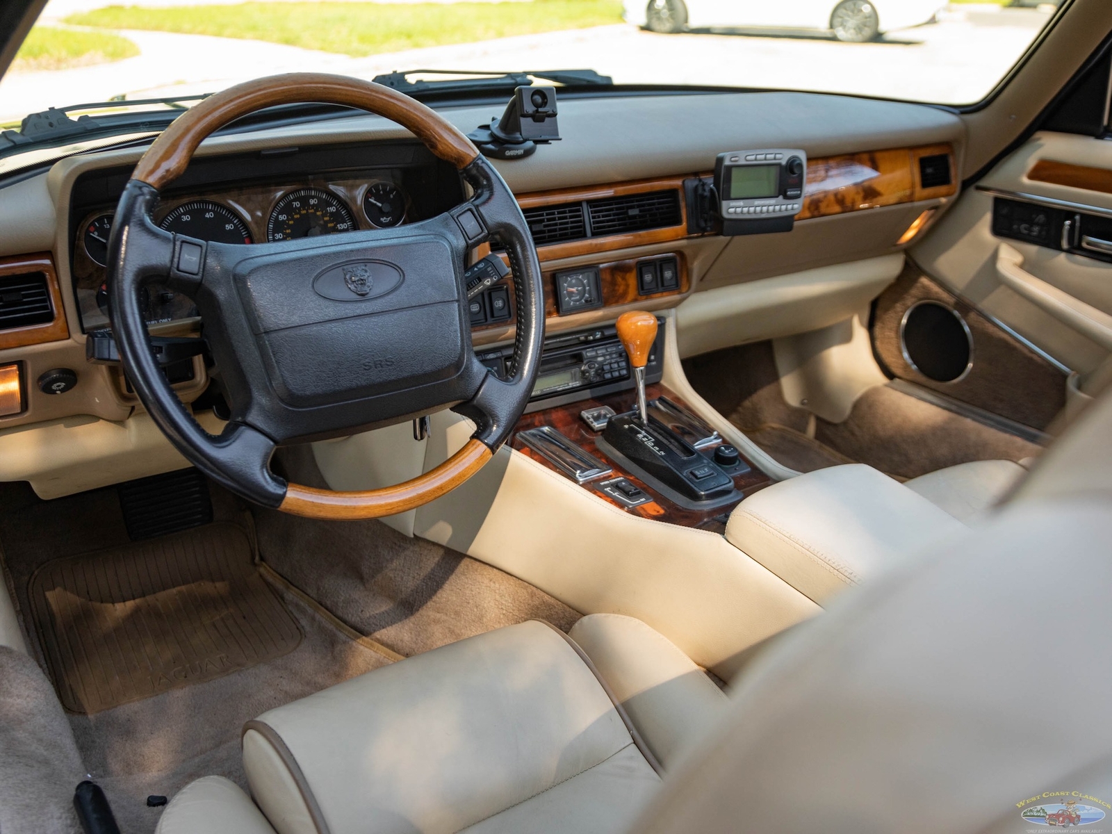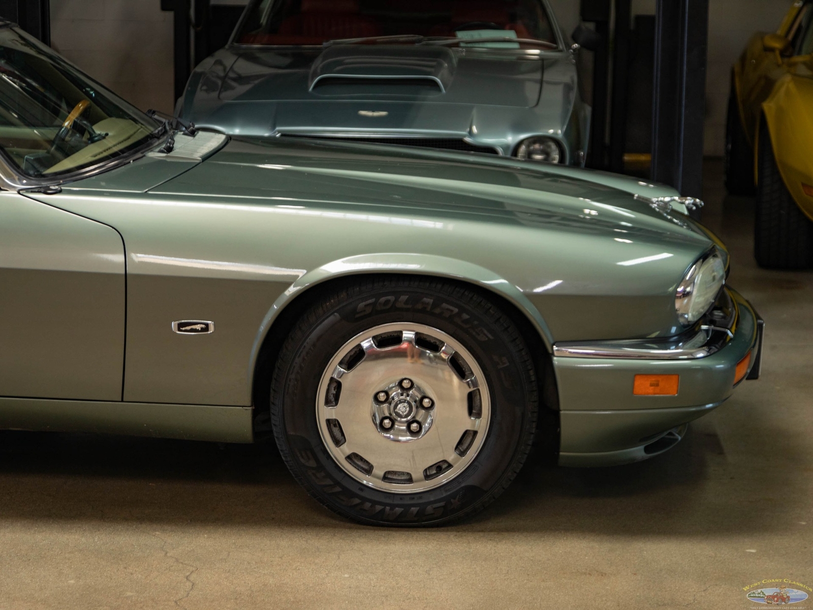 The original factory and very striking 'Jade Green' color paint is in stunning condition and the original 'Cream' color leather seats with 'Light' piping is also in outstanding condition with virtually no signs of any wear and there are no flaws in the dashboard or the walnut veneer, the door panels or the carpets. The soft top is also in exceptional and all original condition. The interior is also completely original with it's 'Jaguar' radio/cassette stereo system with a CD changer in the trunk and all the options and gauges are working as they should including the ice-cold air conditioning!