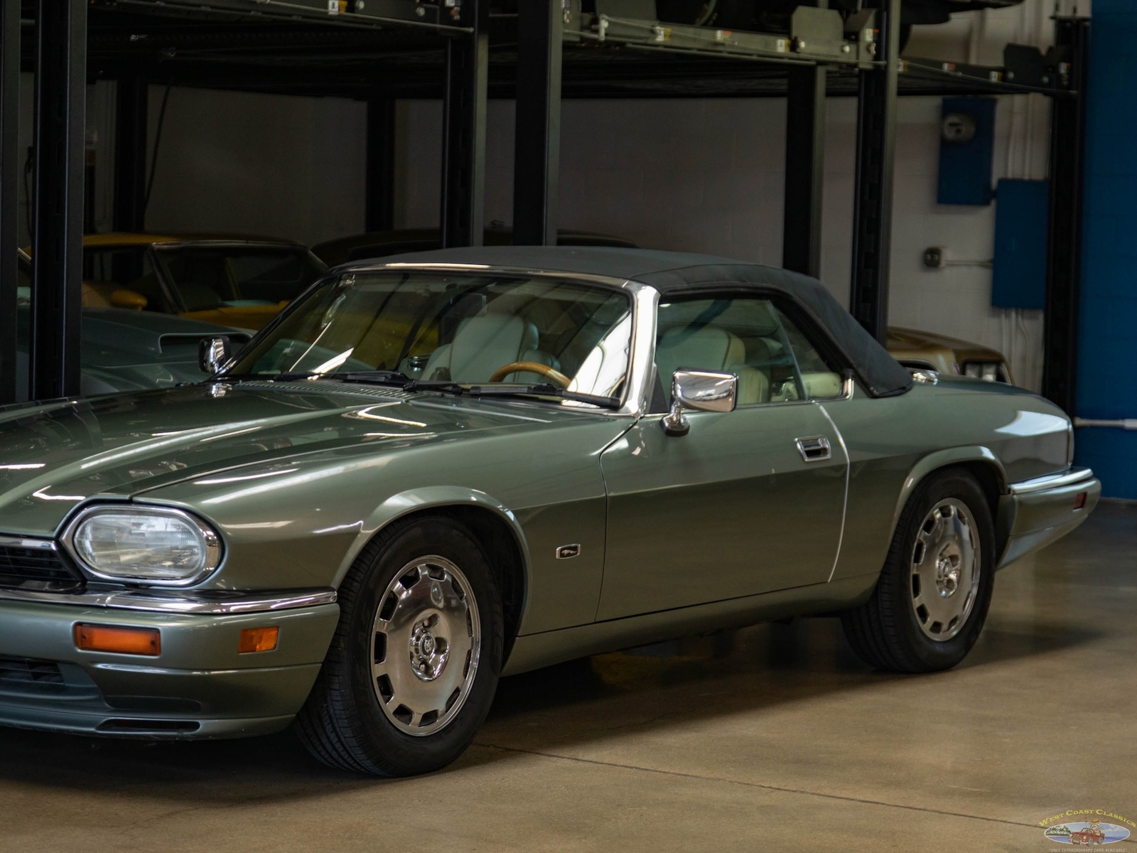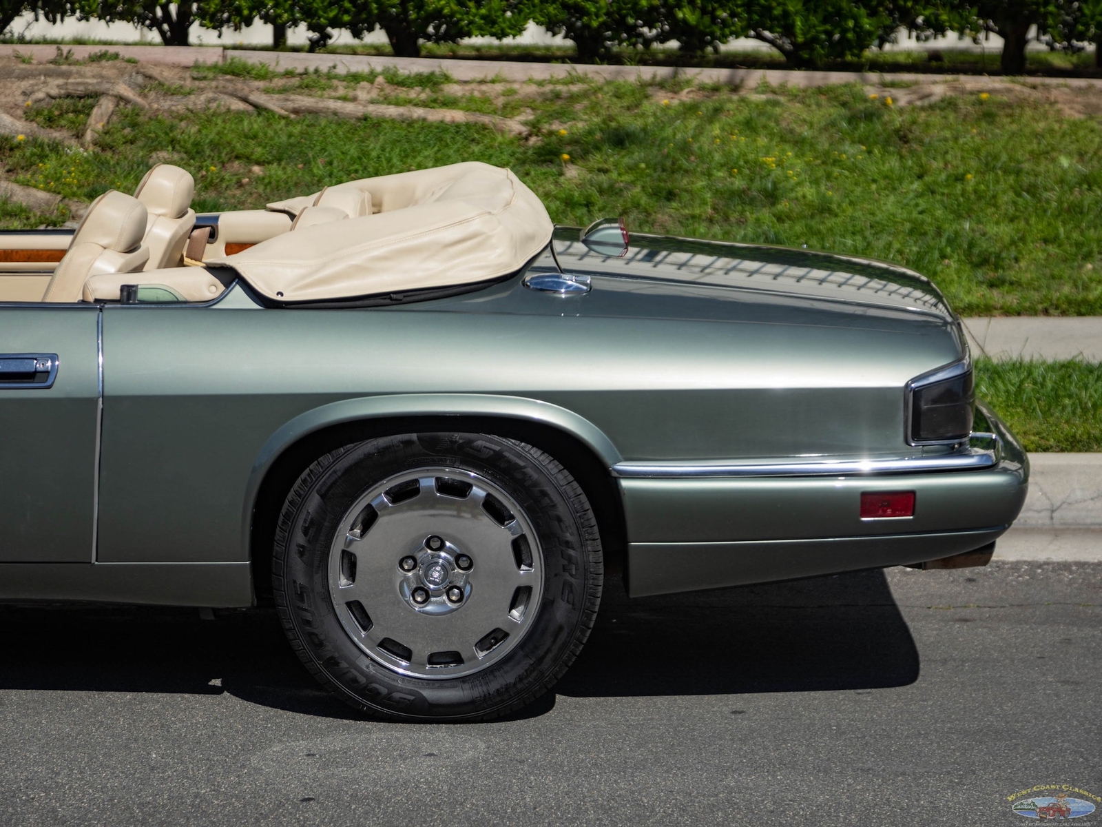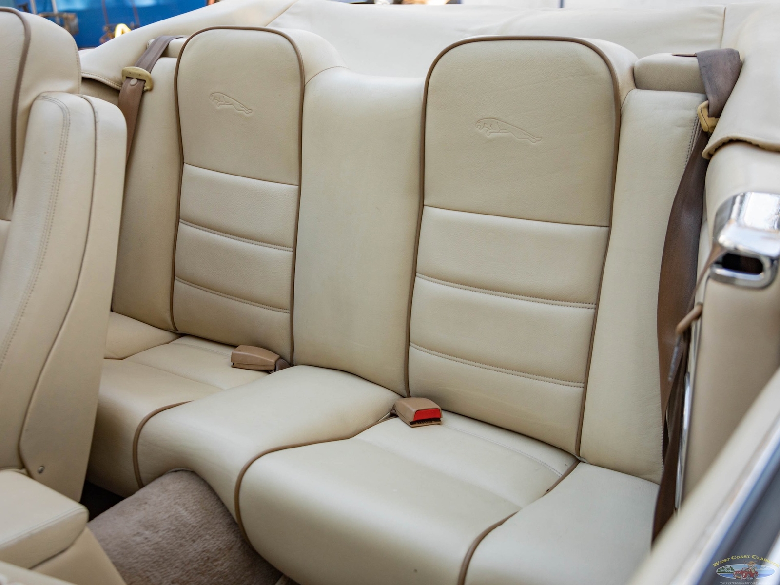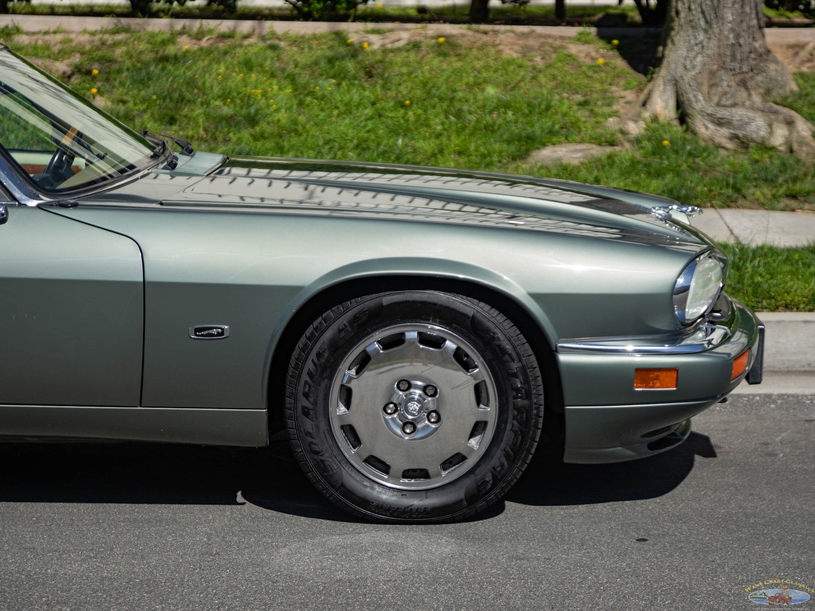 The original factory and very striking 'Jade Green' color paint is in stunning condition and the original 'Cream' color leather seats with 'Light' piping is also in outstanding condition with virtually no signs of any wear and there are no flaws in the dashboard or the walnut veneer, the door panels or the carpets. The soft top is also in exceptional and all original condition. The interior is also completely original with it's 'Jaguar' radio/cassette stereo system with a CD changer in the trunk and all the options and gauges are working as they should including the ice-cold air conditioning!
