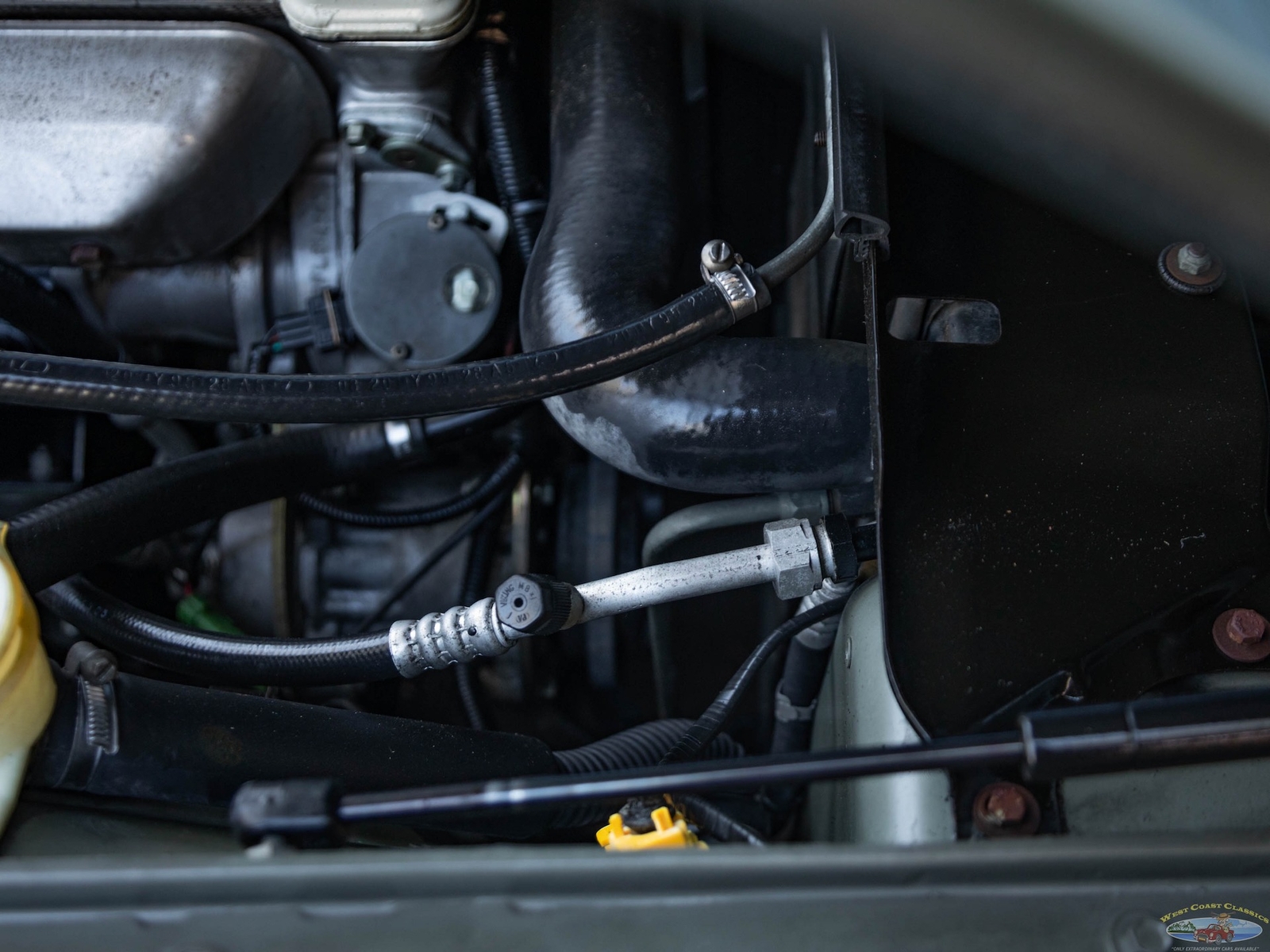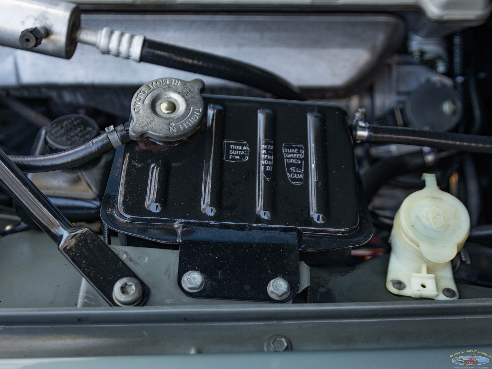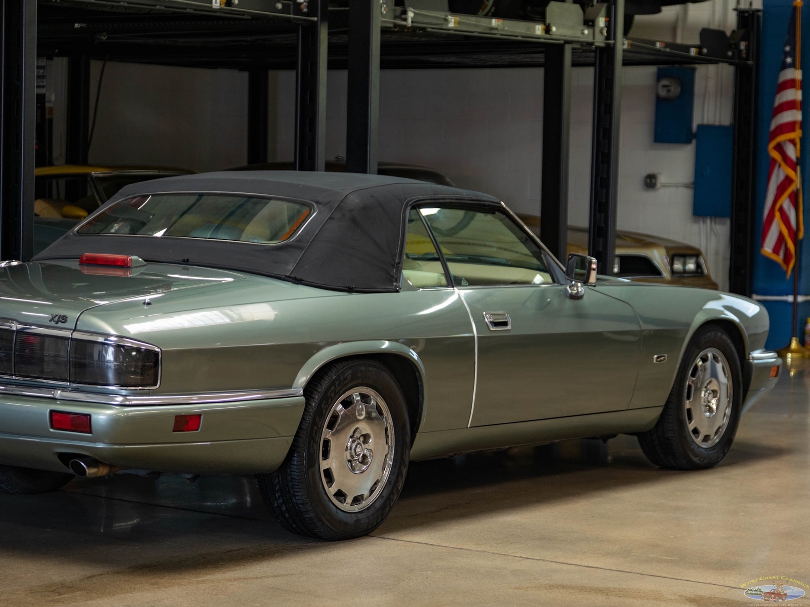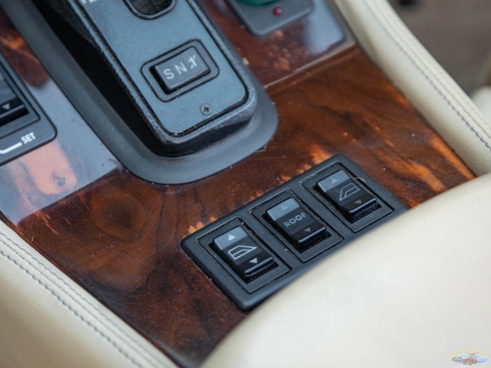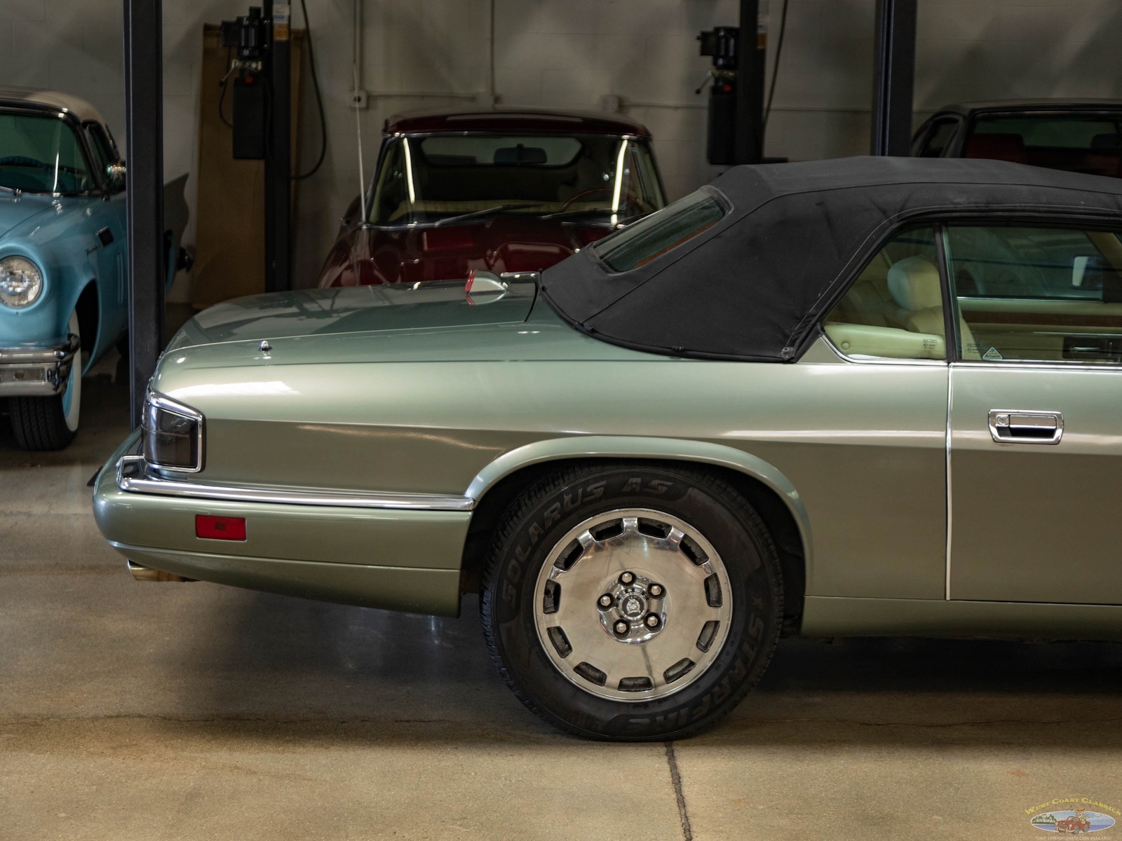 The original factory and very striking 'Jade Green' color paint is in stunning condition and the original 'Cream' color leather seats with 'Light' piping is also in outstanding condition with virtually no signs of any wear and there are no flaws in the dashboard or the walnut veneer, the door panels or the carpets. The soft top is also in exceptional and all original condition. The interior is also completely original with it's 'Jaguar' radio/cassette stereo system with a CD changer in the trunk and all the options and gauges are working as they should including the ice-cold air conditioning!