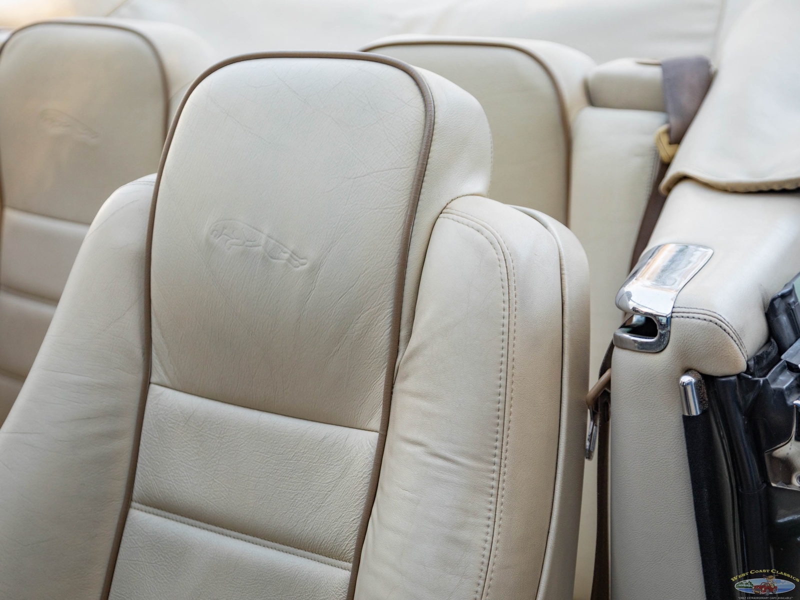 Gorgeous and very desirable color combination of original factory 'Jade Green' (Code HEV) color paint with a beautiful condition 'Charcoal Black' color factory canvas power soft top and with a beautiful doeskin 'Cream' (Code NDR) leather interior and matching tonneau cover. This particular car must be seen to be truly appreciated! A real head-turner! Obviously always garaged with no history of any accident damage whatsoever with all original factory parts and a clean CARFAX report - never abused, babied all the way!