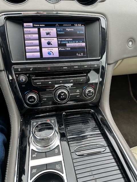 2014 Jaguar XJ with low miles.  Deep Burgandy exterior with light gray interior.