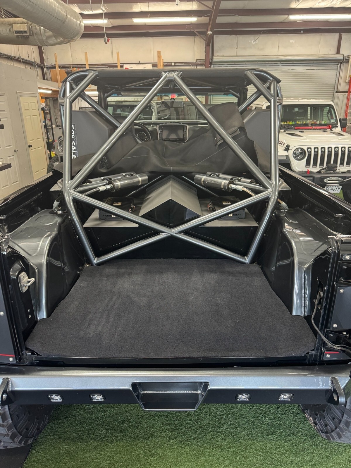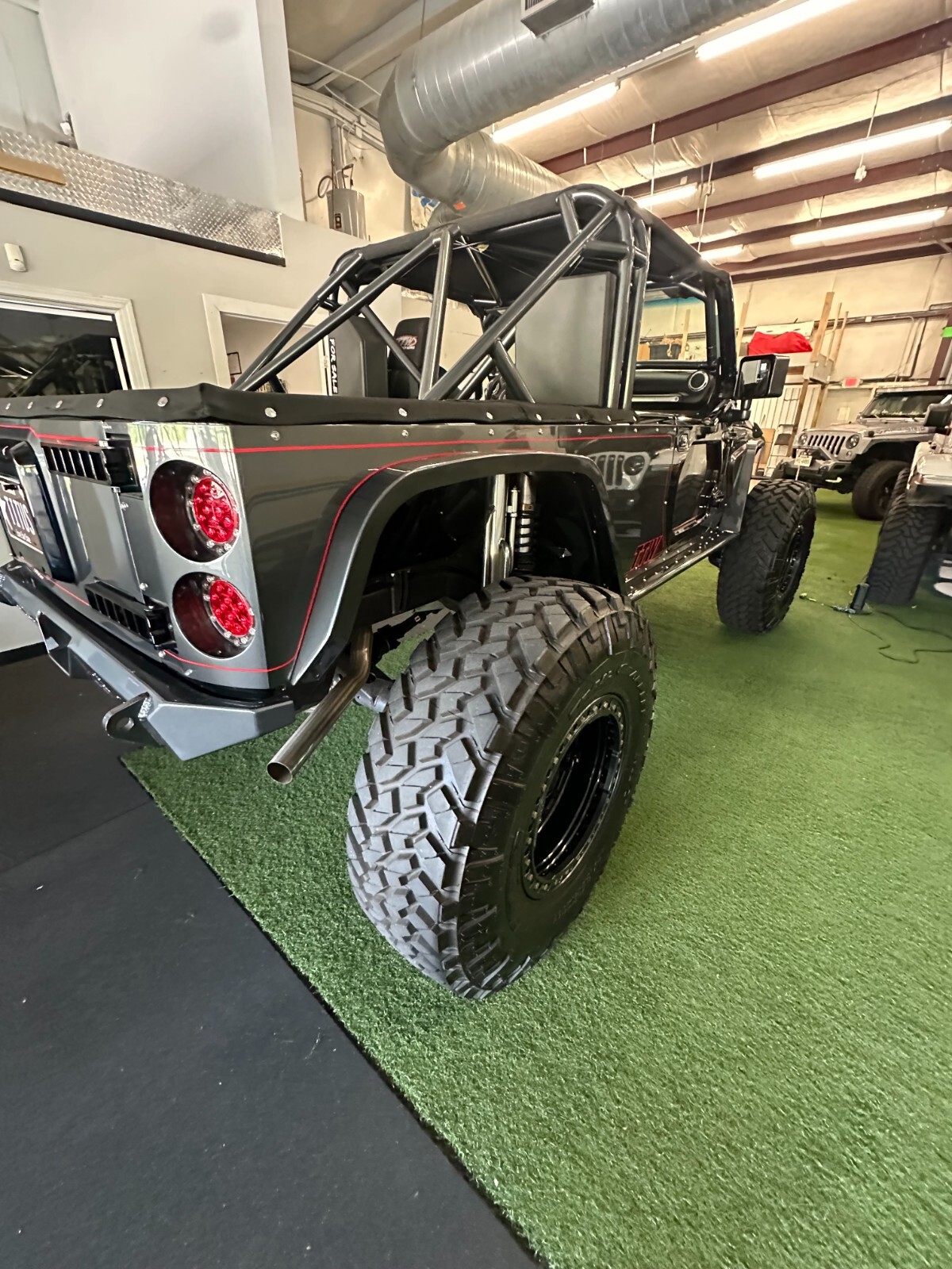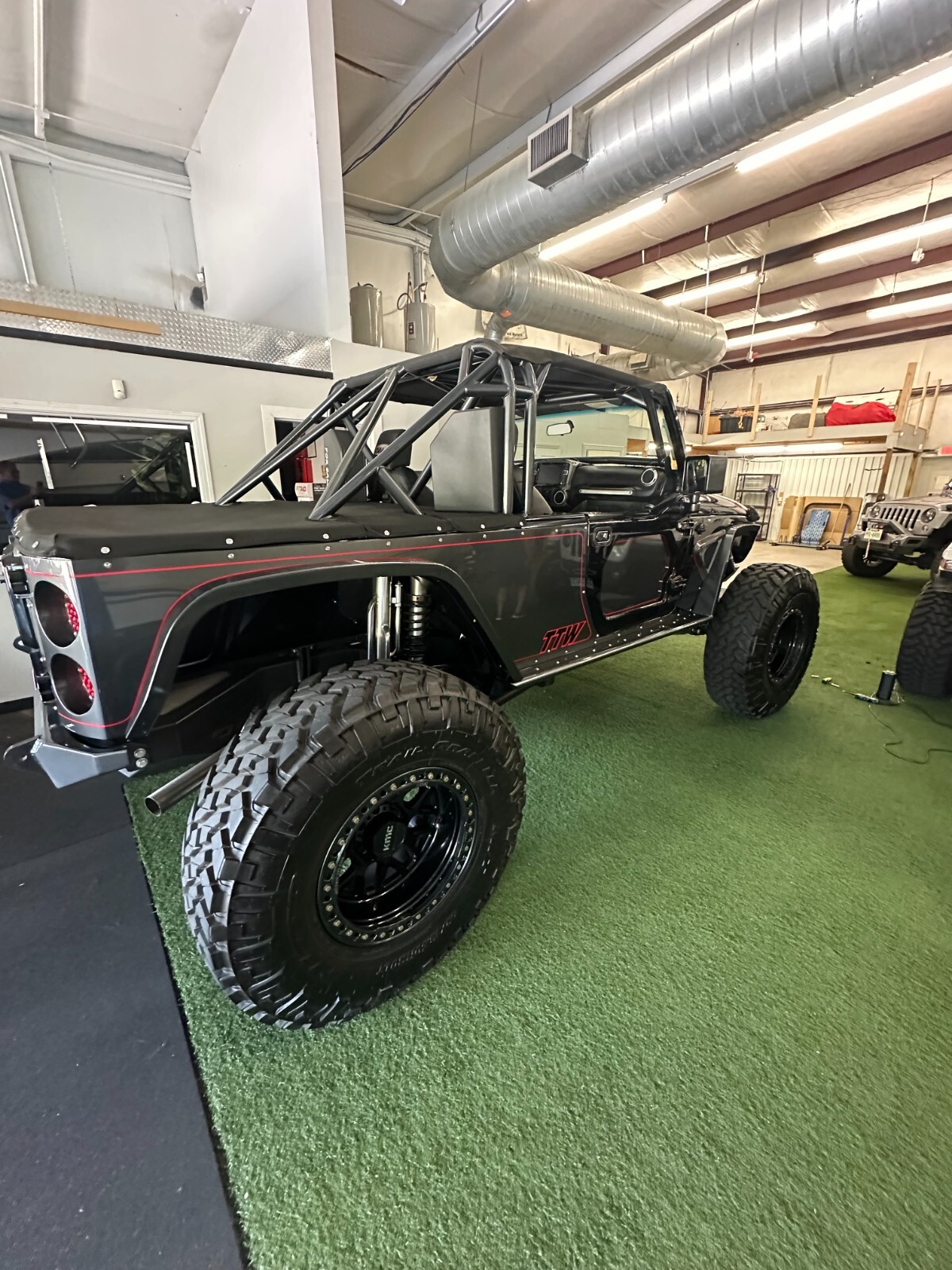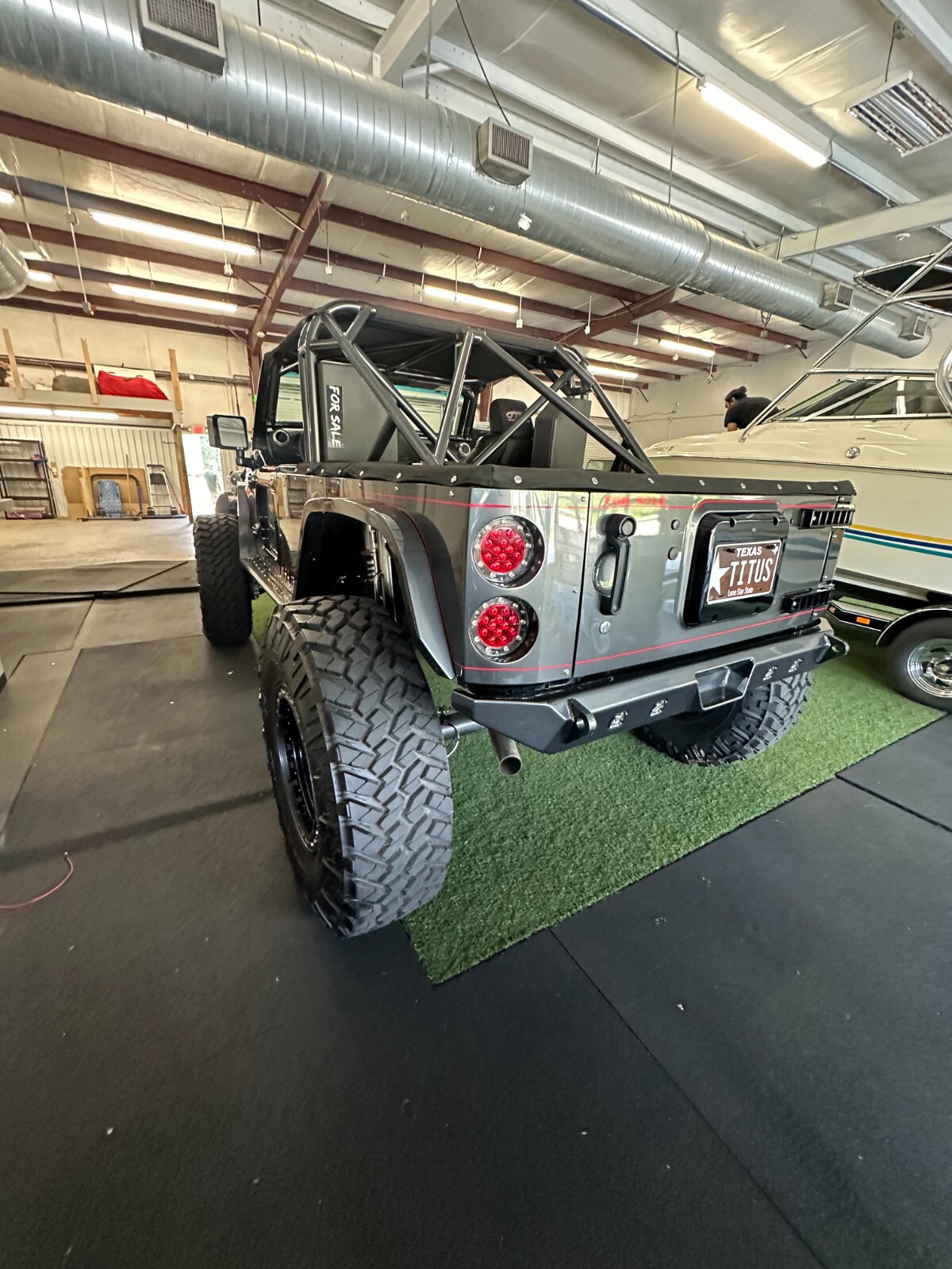 This is a 1 of 1 2012 Jeep wrangler JK with extremely low miles. There is not another one out there. This Jeep started off as a 4dr it was then covered to a 2 door with a bed. the grill and the hood have been changed to look like the newer jeep JL models. one of the biggest changes is the motor has been swapped to a V8 6.4L Hemi 392. Almost everything on this jeep is custom and a lot of parts are hand built even the parts that were purchased were modified in some way. custom Roll cage that ties into the rear suspension. The front is a three link set up with a track bar and the rear is a 4 link trailing arm configuration. All links are attached with 1 inch bolts all four front arms and rear upper arms are solid aluminum. It has FOA 2.5 12" front 14" rear coil overs as well a triple bypasses for shocks. The axles are trussed ultimate Dana 60s with e lockers with 20in kmc bead lock wheels and 42 in nitto tires. the sound system is built specifically for this Jeep. morel speakers amps and 12"sub all weather resistant. it was designed as an all around driving vehicle street, Rock crawling, and highspeed desert. all work was done at Texas tuck works in Magnolia Texas. Don't miss this opportunity to get a one off custom jeep to add to your collection.