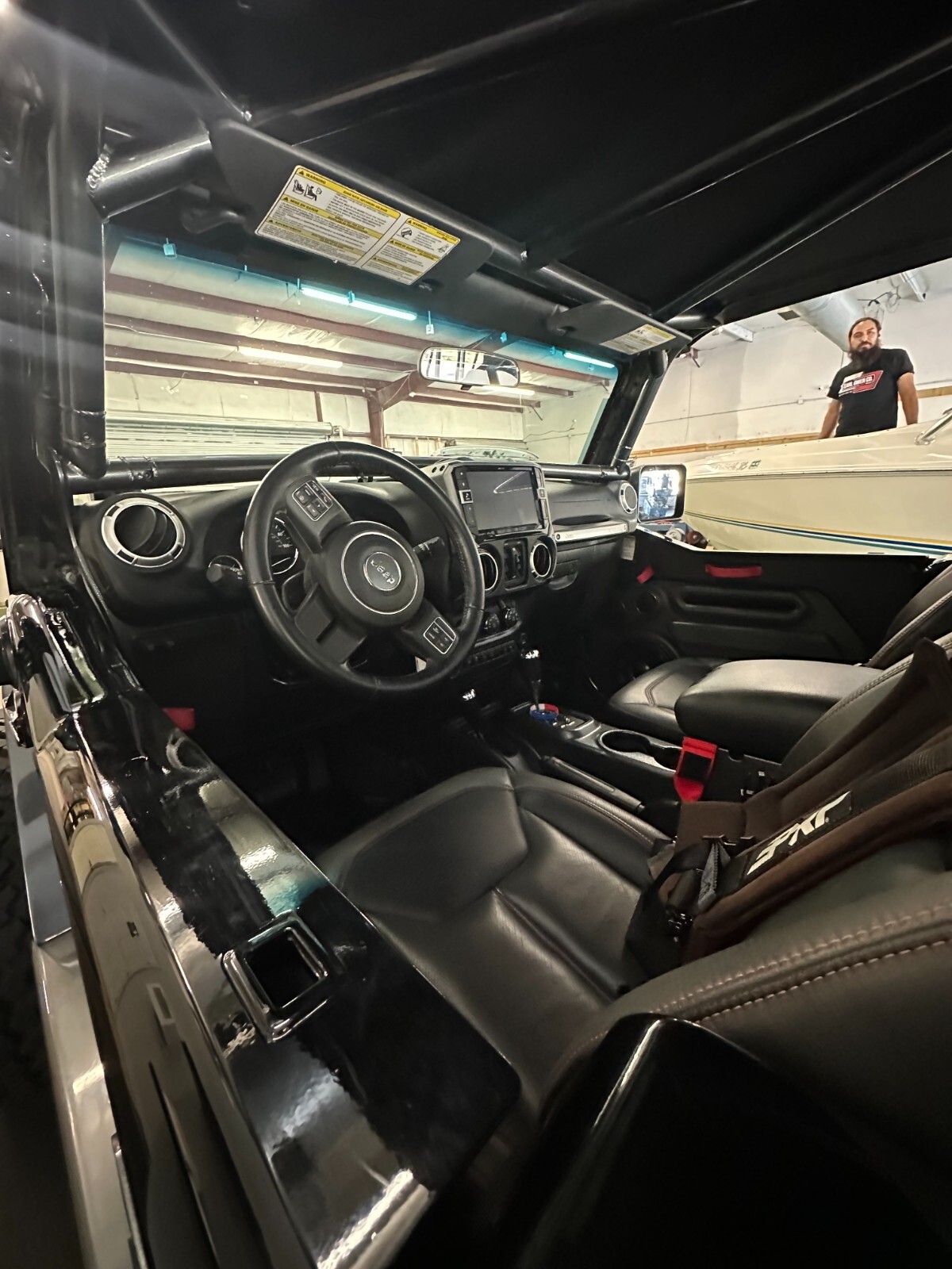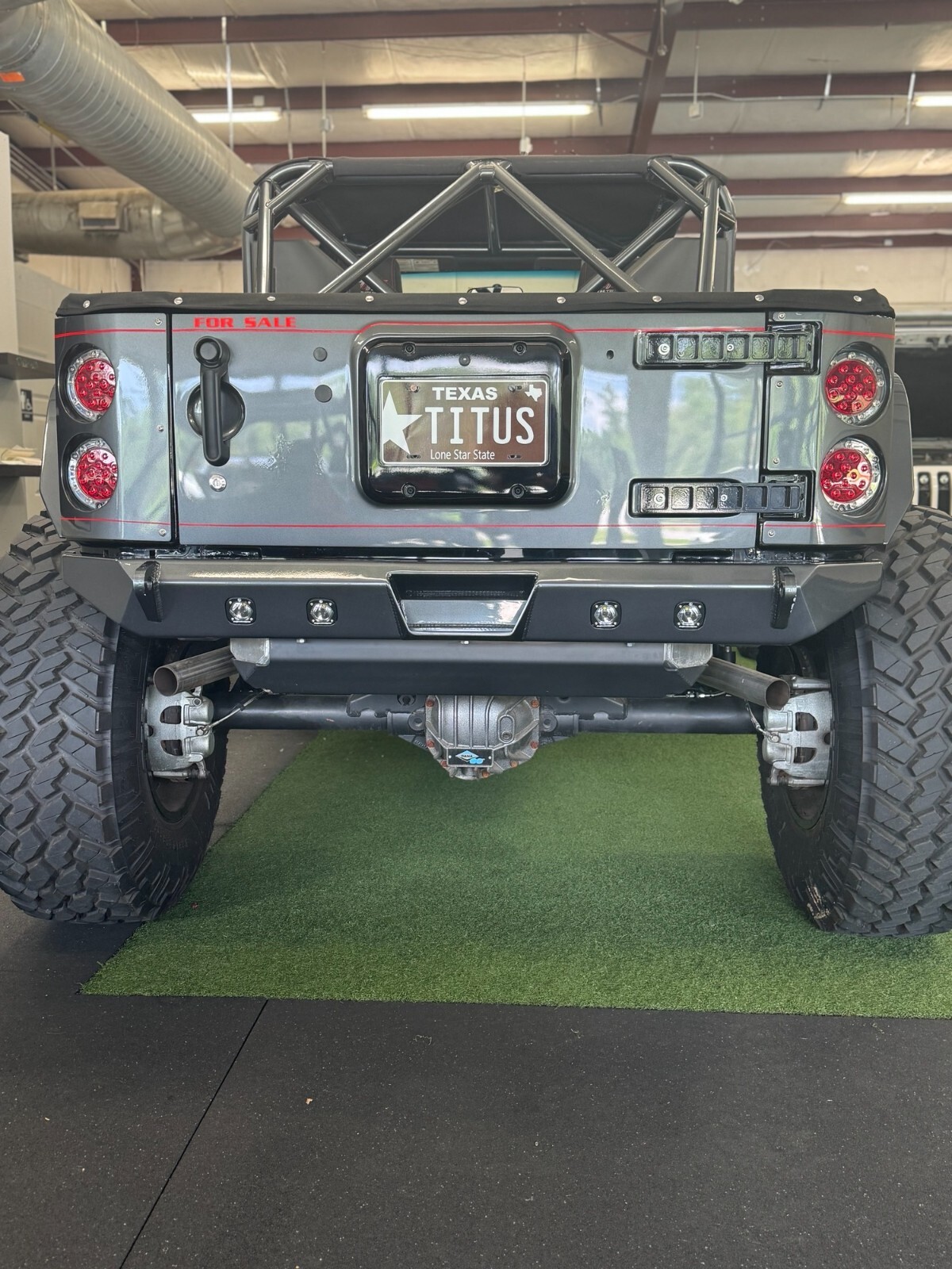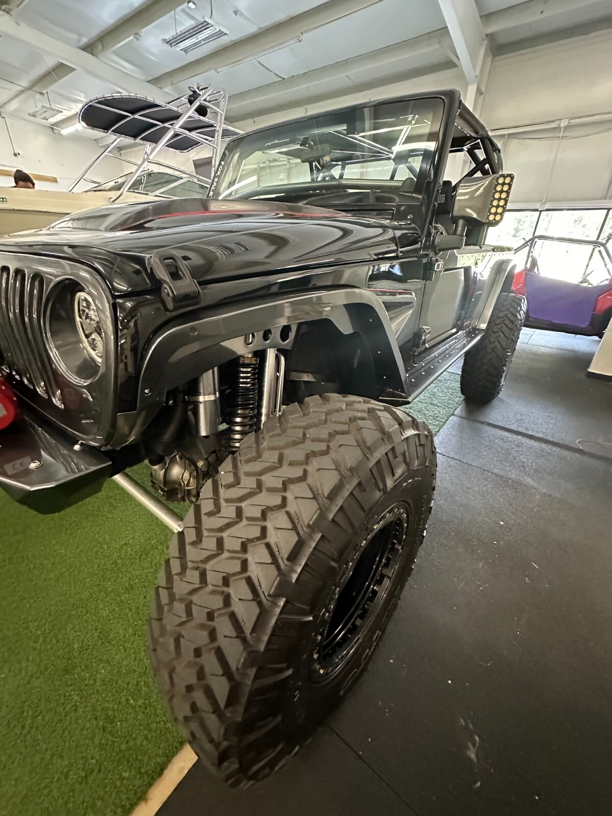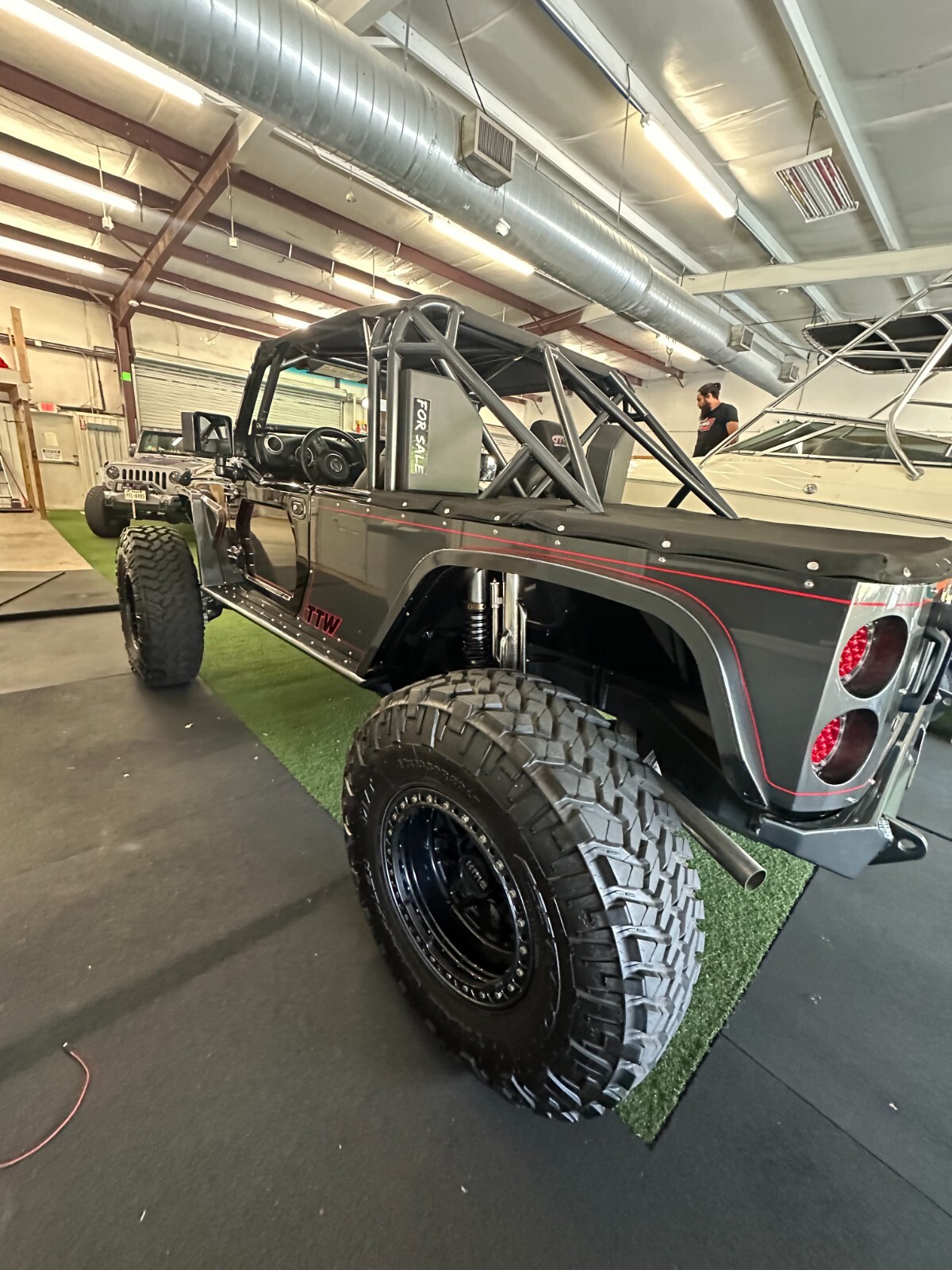 This is a 1 of 1 2012 Jeep wrangler JK with extremely low miles. There is not another one out there. This Jeep started off as a 4dr it was then covered to a 2 door with a bed. the grill and the hood have been changed to look like the newer jeep JL models. one of the biggest changes is the motor has been swapped to a V8 6.4L Hemi 392. Almost everything on this jeep is custom and a lot of parts are hand built even the parts that were purchased were modified in some way. custom Roll cage that ties into the rear suspension. The front is a three link set up with a track bar and the rear is a 4 link trailing arm configuration. All links are attached with 1 inch bolts all four front arms and rear upper arms are solid aluminum. It has FOA 2.5 12" front 14" rear coil overs as well a triple bypasses for shocks. The axles are trussed ultimate Dana 60s with e lockers with 20in kmc bead lock wheels and 42 in nitto tires. the sound system is built specifically for this Jeep. morel speakers amps and 12"sub all weather resistant. it was designed as an all around driving vehicle street, Rock crawling, and highspeed desert. all work was done at Texas tuck works in Magnolia Texas. Don't miss this opportunity to get a one off custom jeep to add to your collection.