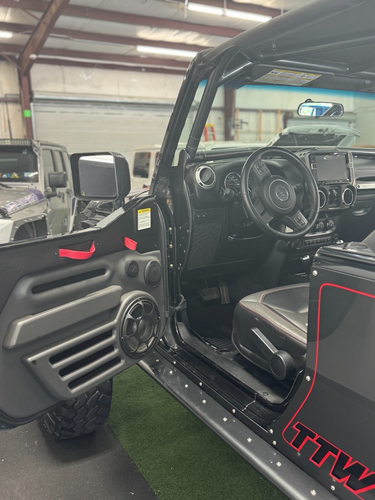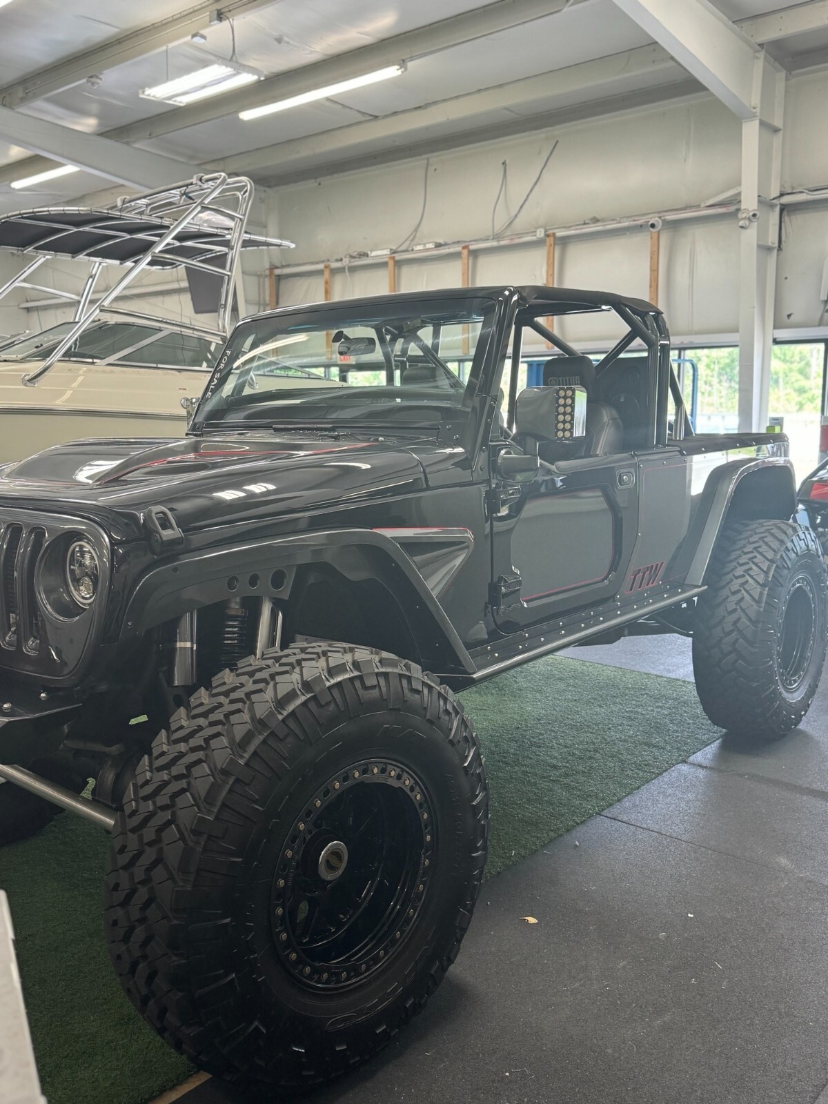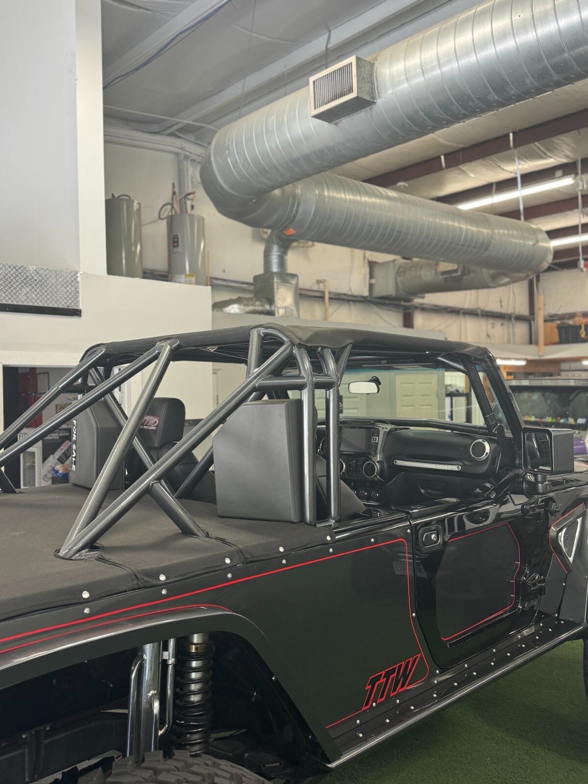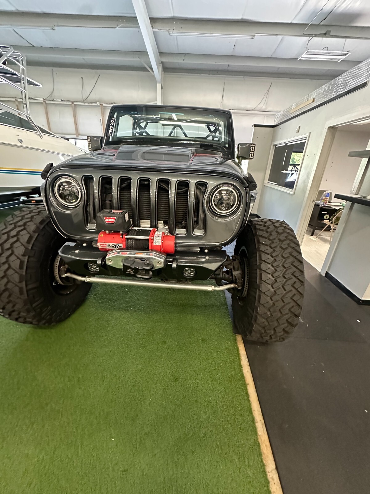 This is a 1 of 1 2012 Jeep wrangler JK with extremely low miles. There is not another one out there. This Jeep started off as a 4dr it was then covered to a 2 door with a bed. the grill and the hood have been changed to look like the newer jeep JL models. one of the biggest changes is the motor has been swapped to a V8 6.4L Hemi 392. Almost everything on this jeep is custom and a lot of parts are hand built even the parts that were purchased were modified in some way. custom Roll cage that ties into the rear suspension. The front is a three link set up with a track bar and the rear is a 4 link trailing arm configuration. All links are attached with 1 inch bolts all four front arms and rear upper arms are solid aluminum. It has FOA 2.5 12" front 14" rear coil overs as well a triple bypasses for shocks. The axles are trussed ultimate Dana 60s with e lockers with 20in kmc bead lock wheels and 42 in nitto tires. the sound system is built specifically for this Jeep. morel speakers amps and 12"sub all weather resistant. it was designed as an all around driving vehicle street, Rock crawling, and highspeed desert. all work was done at Texas tuck works in Magnolia Texas. Don't miss this opportunity to get a one off custom jeep to add to your collection.