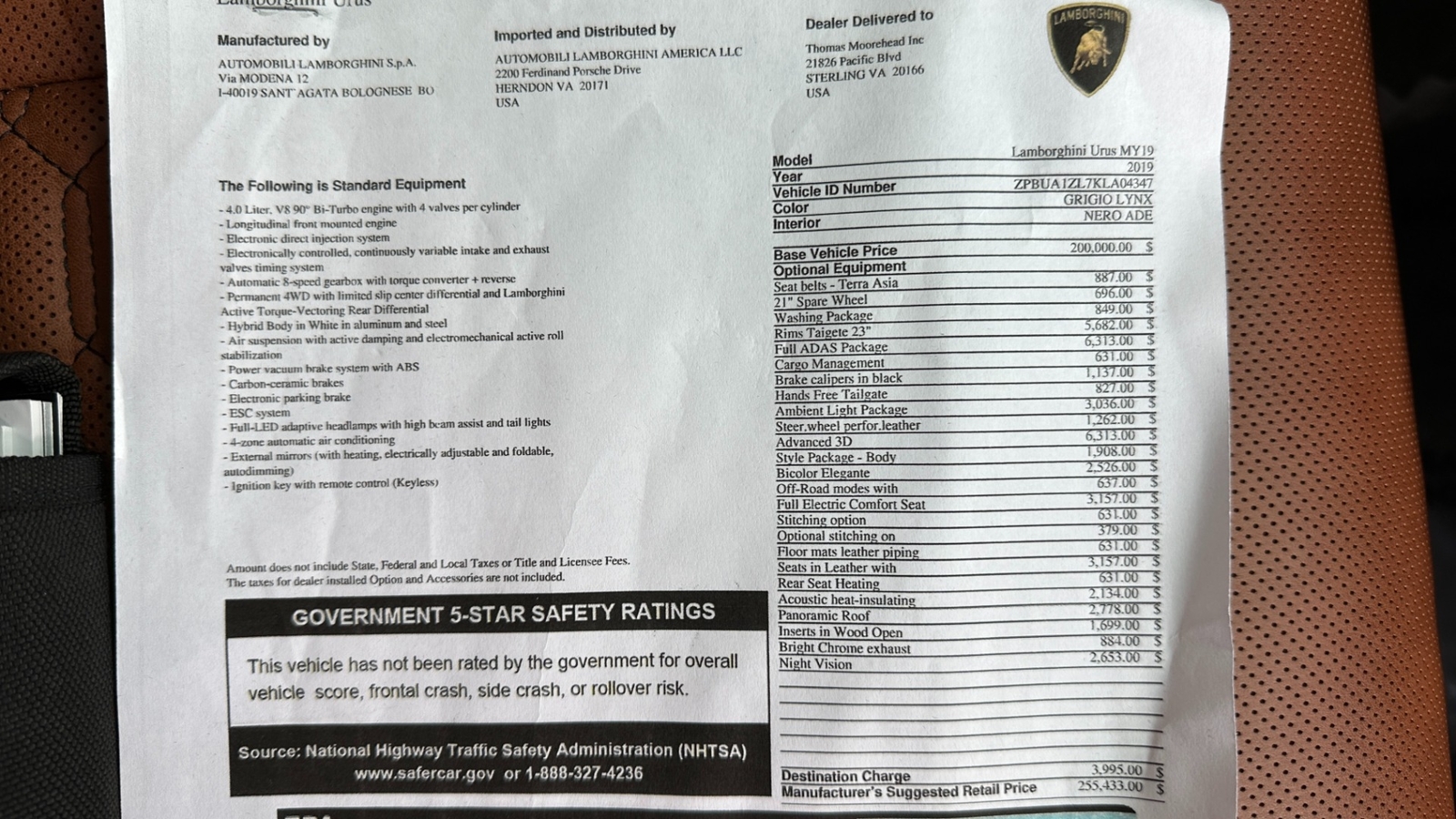 WARRANTY ON THIS 2019 LAMBORGHINI URUS