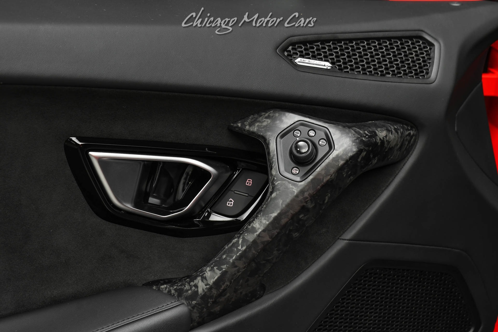 *LAMBORGHINI SENSONUM PREMIUM AUDIO SYSTEM*FACTORY OPTIONS INCLUDE:Big Forged Carbon Composites (Originally $6,600)20" Loge Forged Black Wheels (Originally $6,600)Transparent Engine Bonnet & Forged Carbon Composite (Originally $6,000)Lifting System (Originally $4,000)Lamborghini Sensonum Audio (Originally $3,800)Smartphone Interface & Connected Services (Originally $3,600)Electric & Heated Seats (Originally $3,200)EVO Trim - Sportivo (Originally $2,600)Rosso Efesto Seat Belts