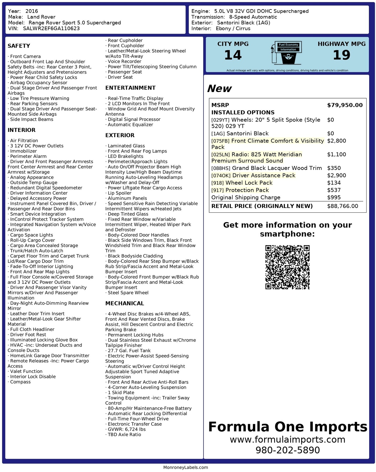 2016 Land Rover Range Rover Sport V8 SUPERCHARGED / COMFORT & VISIBILITY PKG / M