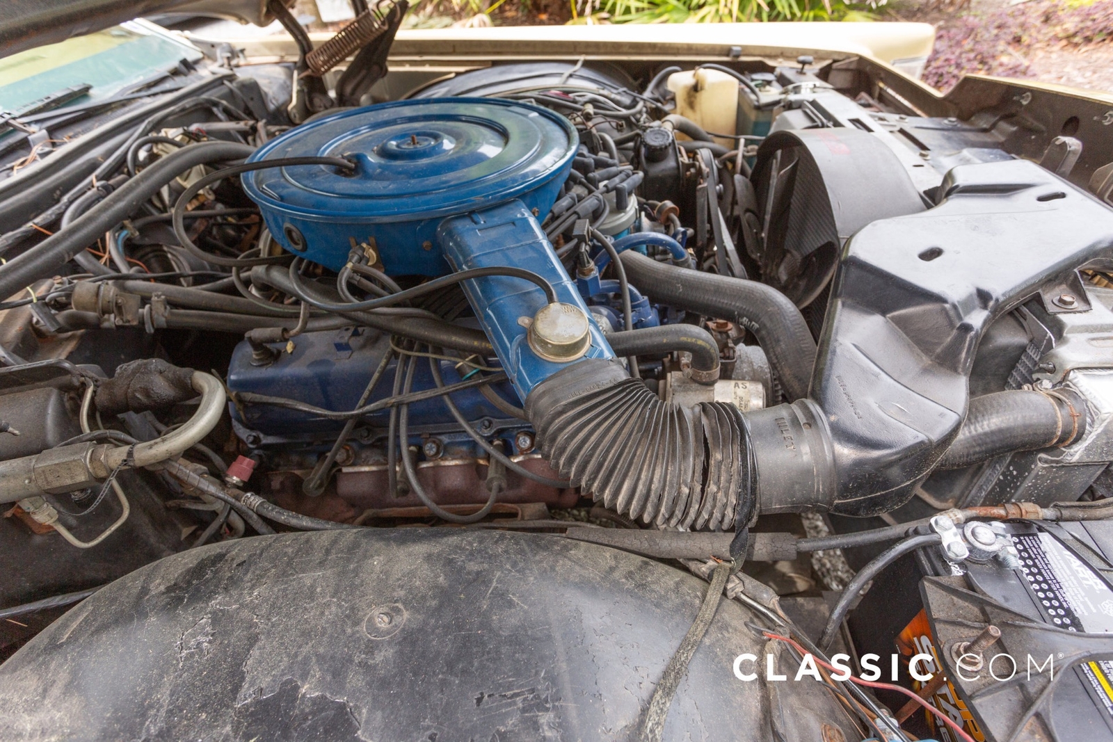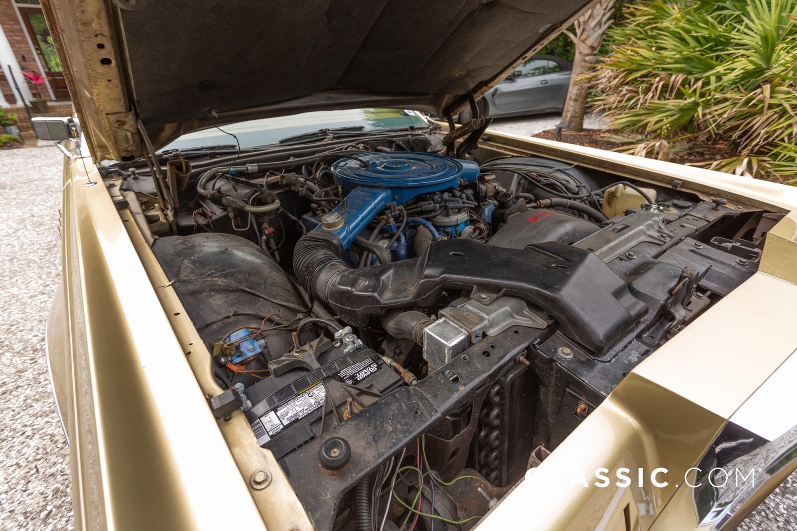 Equipped with a powerful 460ci V8 engine and backed by an automatic transmission, only 2,557 units received the exclusive Jubilee Gold paint finish in 1978. The exterior features a Landau-style top and hide-away headlights, while the round opera rear side windows give it an elegant look. This edition is equipped with a power moonroof, air conditioning, and power-operated seats and windows. Technological enhancements feature a contemporary backup camera and an aftermarket carburetor.
