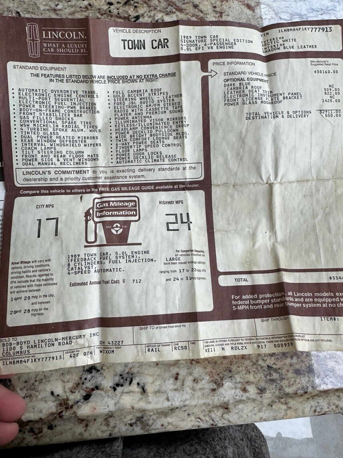 1989 Lincoln town car Special signature series fully loaded , digital dash and sunroof with an original window sticker