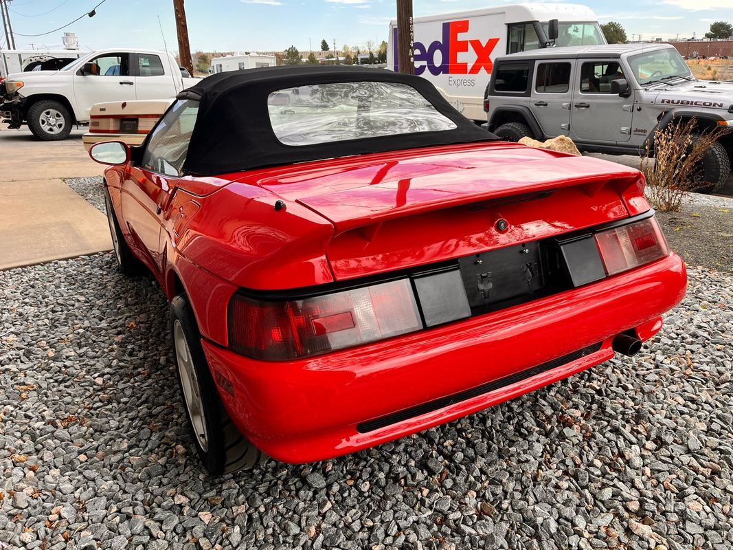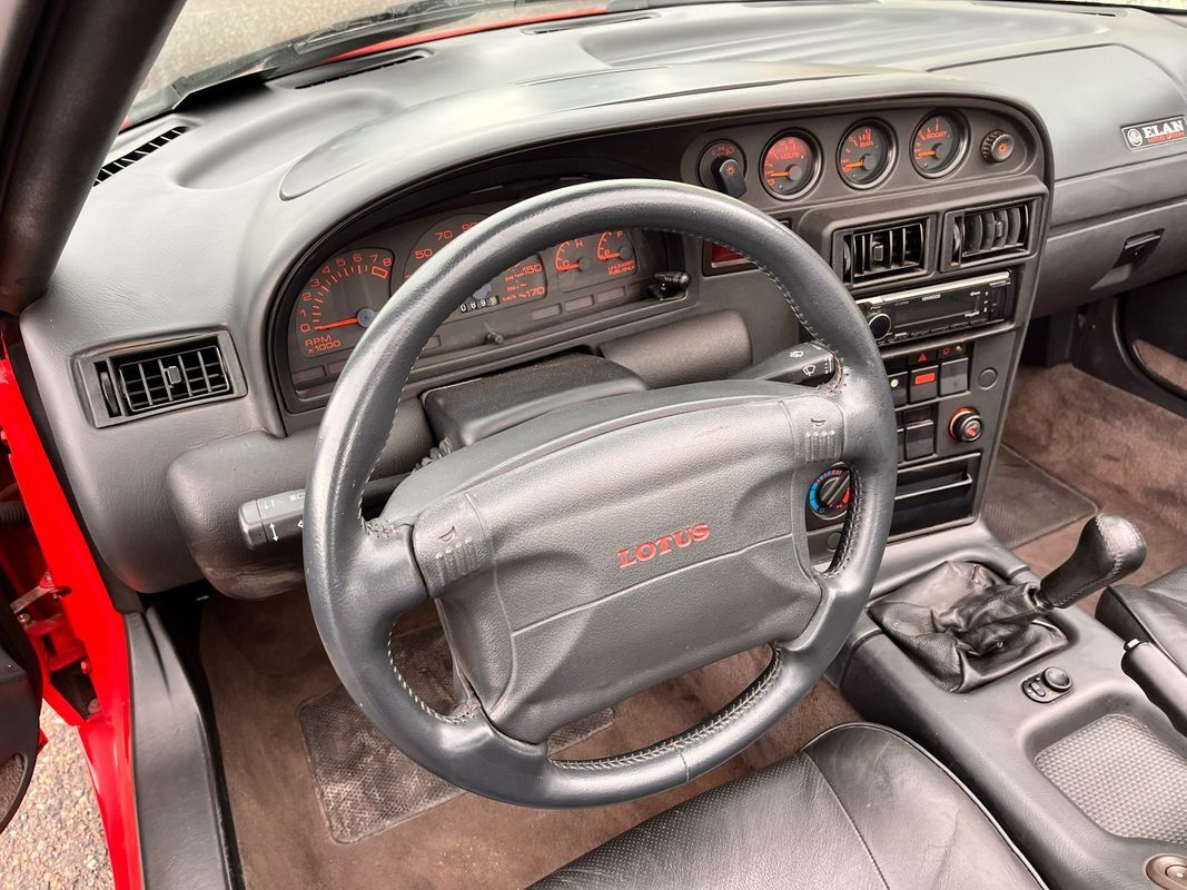 1991 Lotus Elan SE done in Red over Black leather with a black soft top. This Lotus only has 40k miles and runs out very nice. The body and paint are in very good shape with no chips or dents. The wheels have been upgraded and have track tires on them. The black soft top is in good shape and works good. The inside is very clean and has not been smoked in. Has upgraded CD player with Bluetooth and works well. All the lights work and power windows work. If you have been looking for a fun convertible that no one will have you must take a look at as it will not last long at this price. Call Weisco Motorcars for more info or to set up a time to stop by for a look over this Lotus.