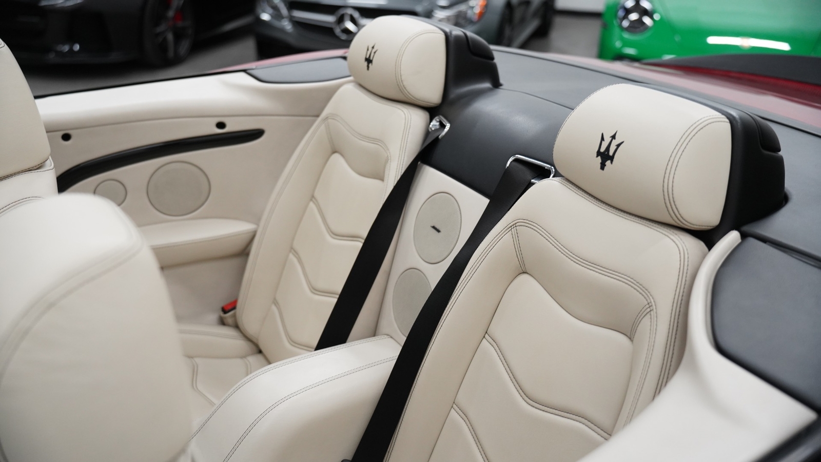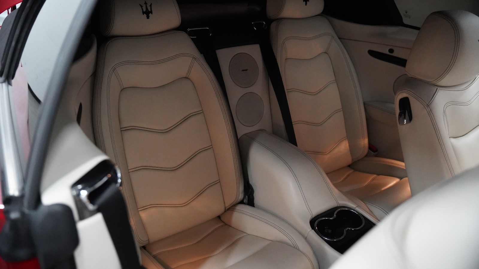 Rosso Mondiale 2013 Maserati GranTurismo Sport RWD 6-Speed Automatic with Overdrive 4.7L V8 SMPI DOHC 4.7L V8 SMPI DOHC, 12 Speakers, Adaptive suspension, AM/FM radio, Auto-leveling suspension, Automatic temperature control, Bose Premium Sound System, Brake assist, CD player, Colored Leather & Wood Trim Steering Wheel, Electronic Stability Control, Fr 20" x 8.5"/Rr 20" x 10.5" Trident Wheels, Front dual zone A/C, Fully automatic headlights, Heated Sport Bucket Seats, High Gloss Painted Interior Wood Trim, High intensity discharge headlights: Bi-Xenon, Navigation System, Rain sensing wipers, Rear Parking Sensors, Steering wheel mounted audio controls, Stitching Color On Request, Trident Logo Embossed in Headrest.