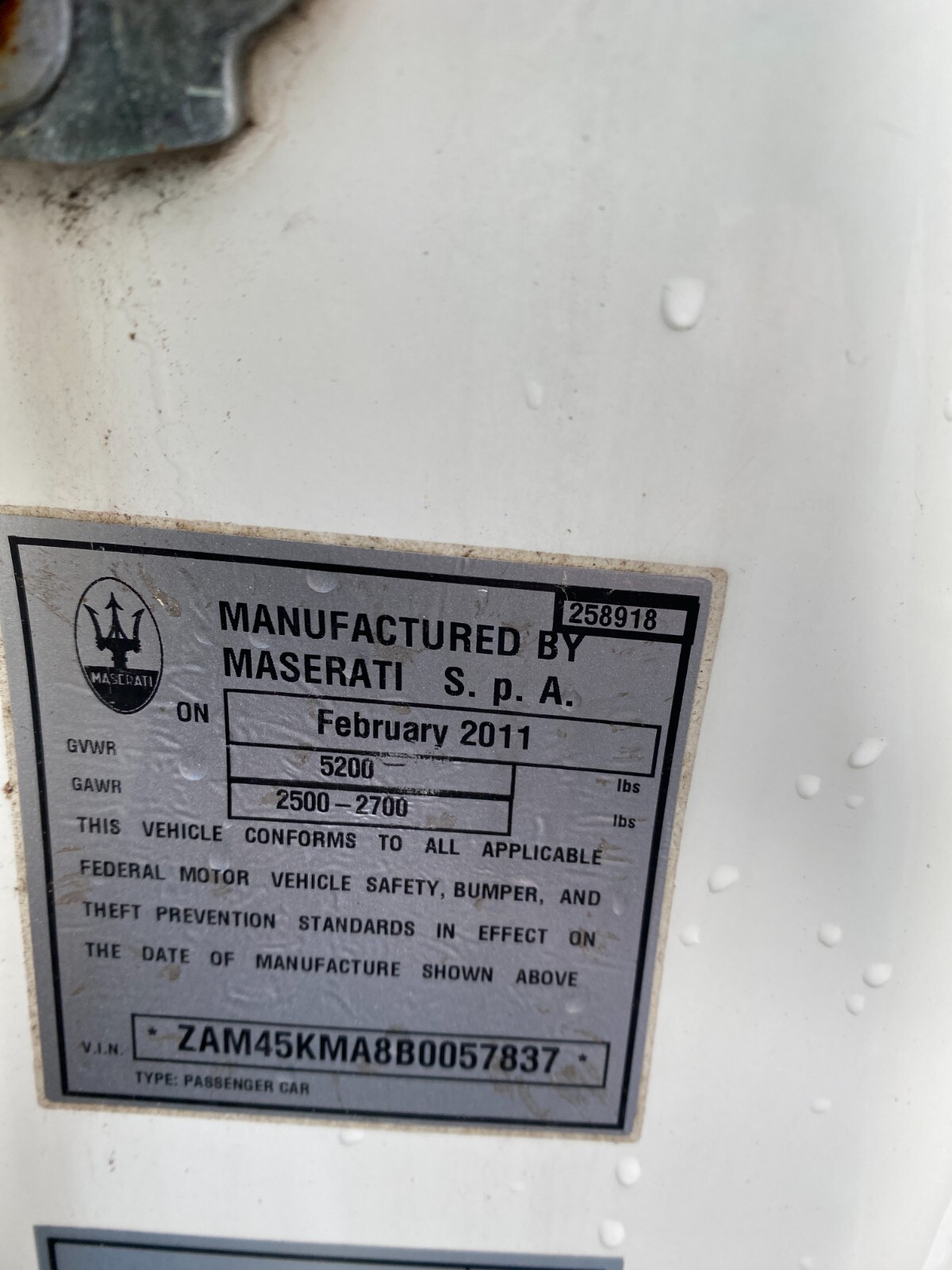 Absolutely stunning 2011 Maserati Granturismo S. Finished in White with black interior this Maserati has a CarFax clean title and boasts an Excellent Dealer Service History with just 40,960 miles. Turn the key and the exhaust barks as it comes to life, followed by a rather aggressive idle. With 433hp on tap, this Granturismo gets to triple digit speeds with ease. The paddle shift transmission works beautifully and hit hard when manually shifting. AND WHAT ABOUT THAT SOUND! This engine and exhaust combination gives an experience few will ever know. Remember, this a four seat grand tourer with the heart of a Ferrari.Considering that, it provides a much more exciting experience than a comparable Mercedes, BMW or Audi. It may not beat a CL63 or an M6 in a drag race, but that’s not the point of a car like this. Nobody builds a car that feels as alive as Ferrari. From the Rev of the engine to the razor sharp handling, it is a much more dramatic driving experience than most competitors.This GranTurismo offers a slightly refined version of that same raw intensity for a mere fraction of the price. For under $30k you get a modern, usable, Italian exotic that you can comfortably hop in and drive every day. You’d have to shell out five times that amount for a comparable Ferrari of which it shares most of its mechanical bits.Comes with 2 keys, manual, tool kit.Tires are in great shape, minor curb rash. Interior is good, but has the usual sticky dash and buttons associated with these vehicles.Excellent paint condition. Great body condition!Runs and drives great. No mechanical issues except for the driver's seat not moving fully back.*** A non refundable deposit of $500 will be due 48 hours after the auction close price via Paypal; balance will be due not more than 7 calendar days from date of the auction close. We will relist the vehicle exactly 48 hours after the close of auction if a non refundable deposit isn't received. We will relist the vehicle if the balance isn't paid in full 7 days after the auction close. Balance payment can be made via cash or cashiers check. Buyer is responsible for all sales tax, transfers and shipping. No international bidders.DO NOT BID IF YOU DO NOT INTEND TO PURCHASE. IF YOU HAVE QUESTIONS OR WANT TO SEE THE VEHICLE DO IT BEFORE PLACING A BID!