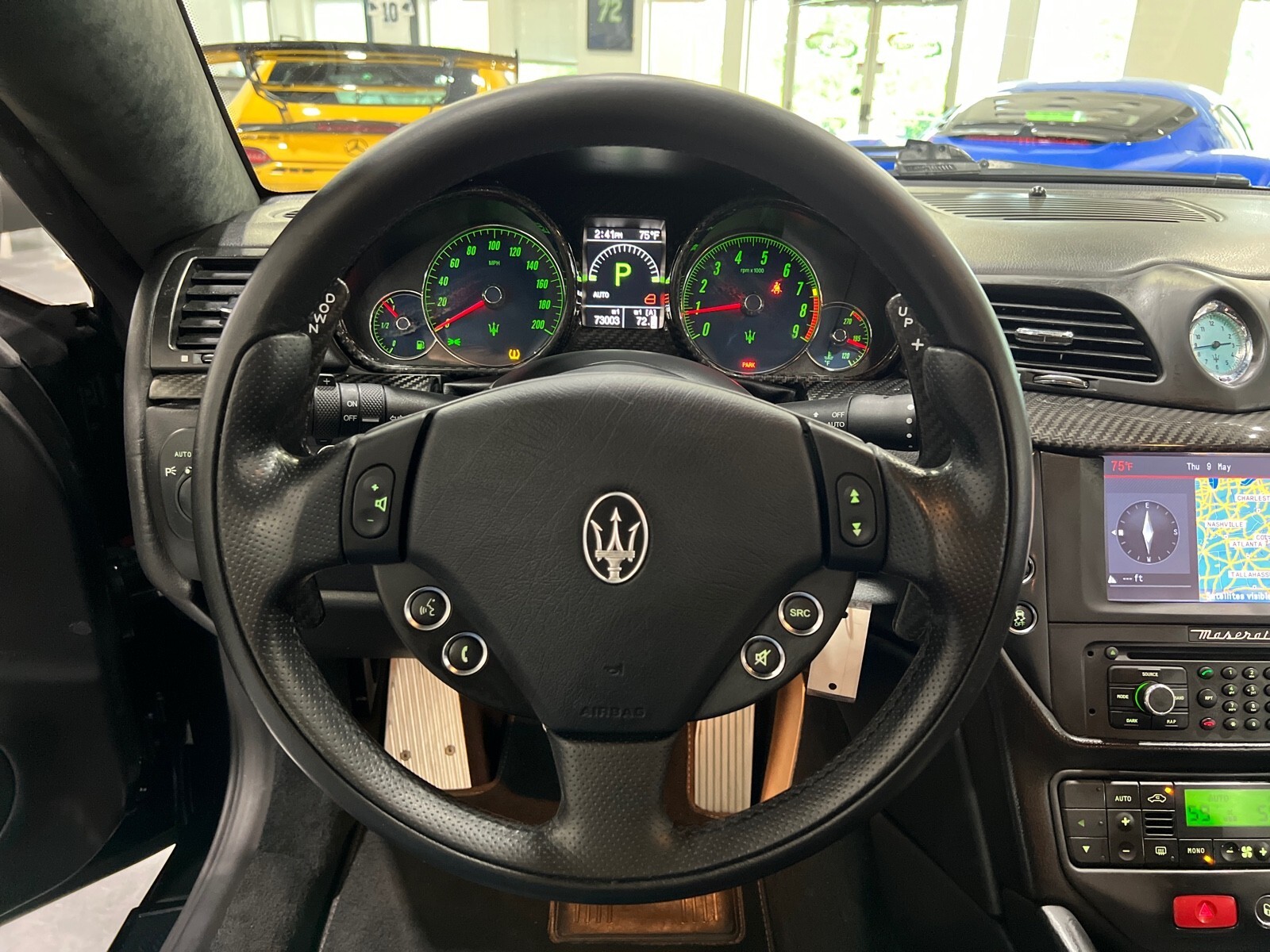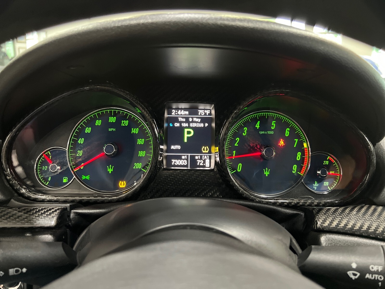 Clean CARFAX, naturally-aspirated 4.7L V8 transferring power to the rear wheels through a 6-speed automatic transmission, factory exhaust valves, sounds amazing when valves are opened, Interior Carbon package, black 20'' MC Design wheels, red brake calipers, Bose audio, Bluetooth, USB and auxiliary ports, navigation, dual-zone climate control, heated front seats, heated mirrors, rear parking sensors, and more! Affordable entry to Italian sports car ownership! $147,450 MSRP when new! No interior sticky buttons / panel (common issues on maserati) has been removed by our in-house detail department! Recent service/maintenance include: NEW VALVE COVER GASKETS, TRUNK STRUTS, OIL CHANGE, and WIPER BLADES! (~$3,250 after parts and labor) **Window sticker is a duplicate version, prices and options might vary** MSRP $139,900.00 INSTALLED OPTIONS [11] Nero (Black) $0 [PAINT] Standard Paint $0 [38] Nero, Leather Seat Trim $0 [ICP] Interior Carbon PKG carbon fiber dashboard carbon fiber door panels carbon fiber rear side panels gloss black plastic components $2,550 [ICP3] Interior Carbon PKG Evolution II carbon fiber instrument panel carbon fiber elongated gear shift paddles $2,075 [MCOPACO] 20 MC Design Graphite Opaco Wheels $800 [DIM] Auto Dimming Exterior Mirrors $0 [BOSE] Bose Surround Sound System $0 [TRIDENT] Trident Logo Embossed Headrests $625 [HOME] Homelink System $0 [PRES] Tire Pressure Monitoring System $0 Original Shipping Charge $1,500 RETAIL PRICE (ORIGINALLY NEW) $147,450.00 VOLUME KNOB INOP, STEERING WHEEL BUTTON WORKS, SCRATCH IN WINDSHIELD