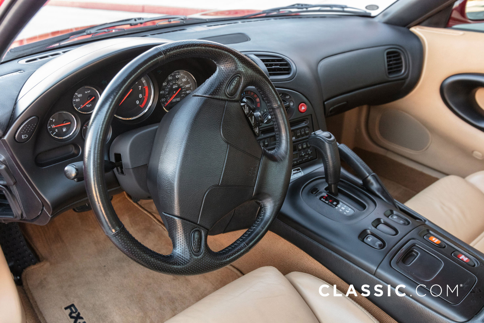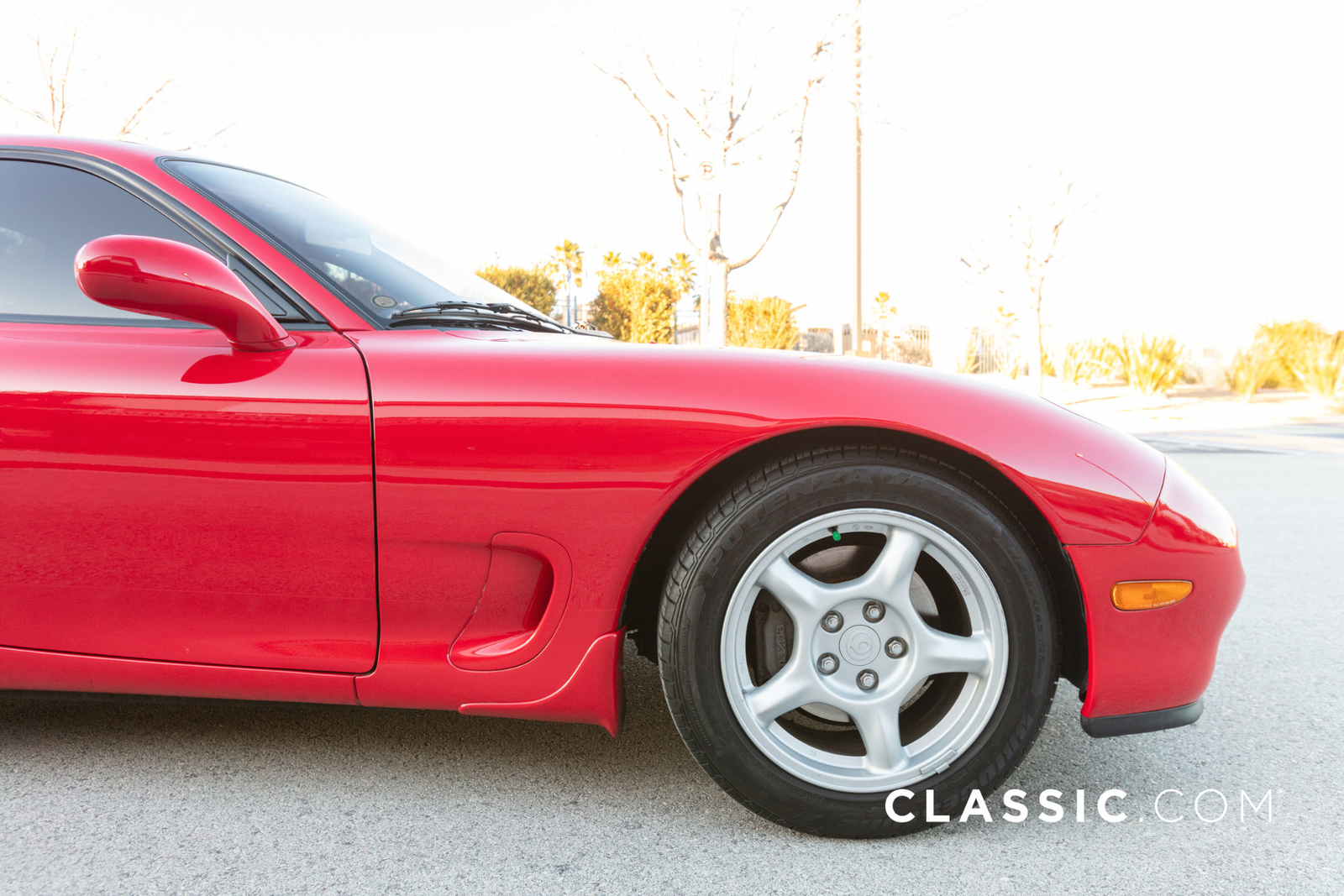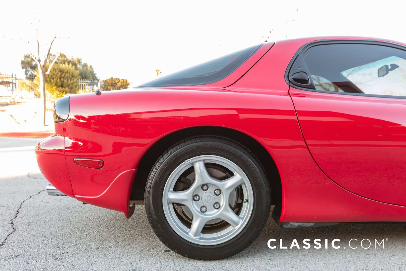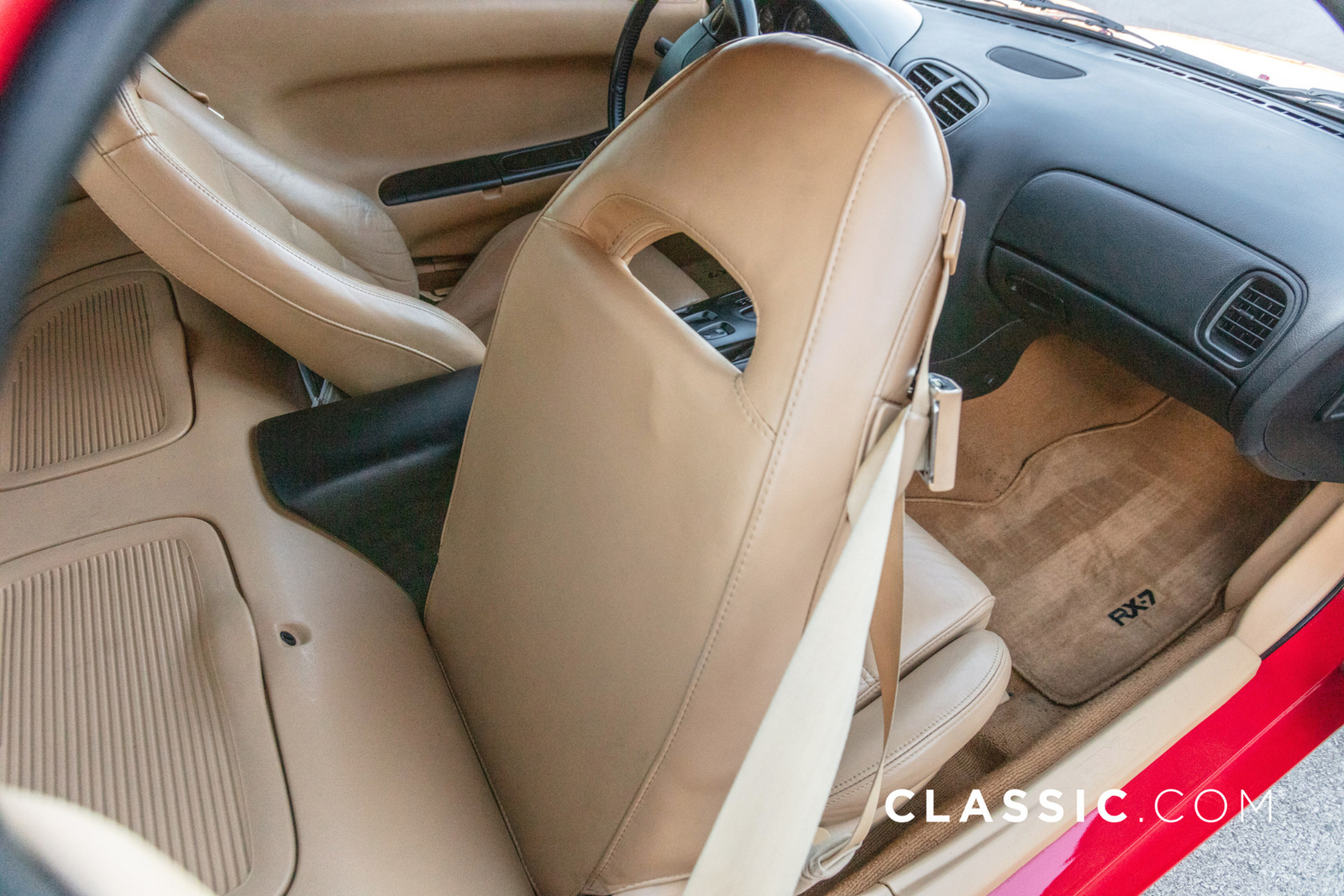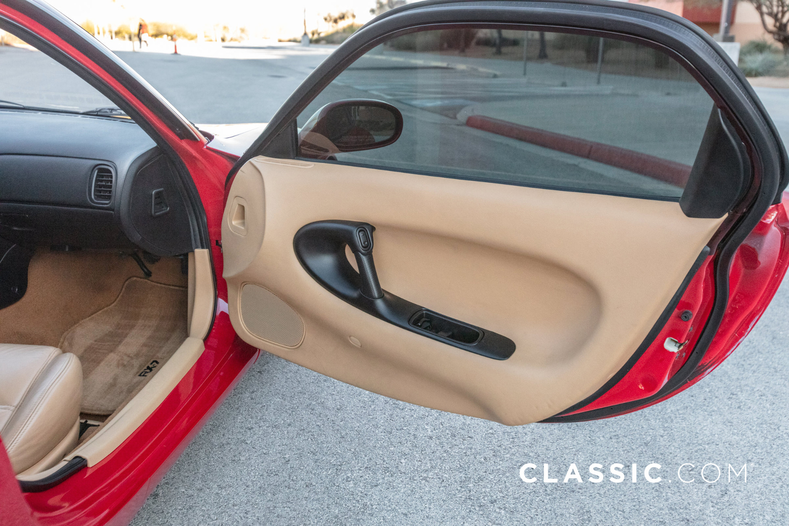 This low mileage one-owner 1993 Mazda RX-7 Touring model shows just 20,288 miles on the odometer and is powered by a 1.3L twin-turbocharged and intercooled 13B rotary engine that sends power through a four-speed automatic transmission and limited-slip differential to the rear wheels. The car is finished in red and upholstered in beige leather. The car is equipped with four-wheel ABS brakes, double wishbone suspension, and an aluminum hood. Inside the cabin, the car features a sunroof, Bose subwoofer system, cruise control, power windows, and power locks. The car is currently located in Las Vegas, Nevada.