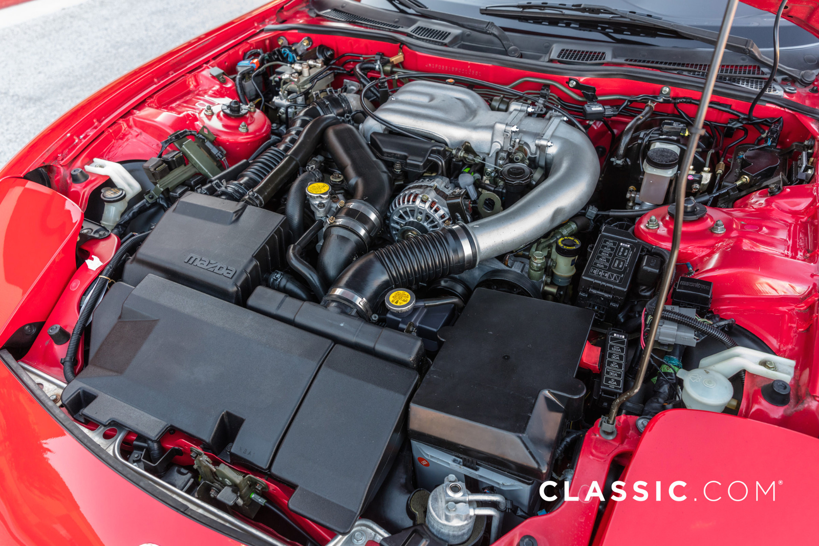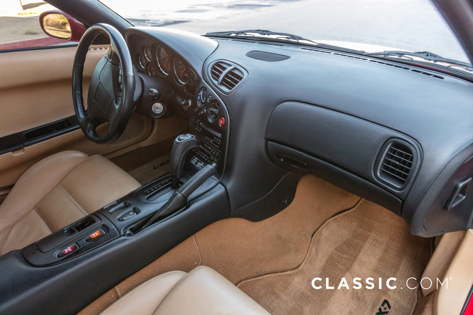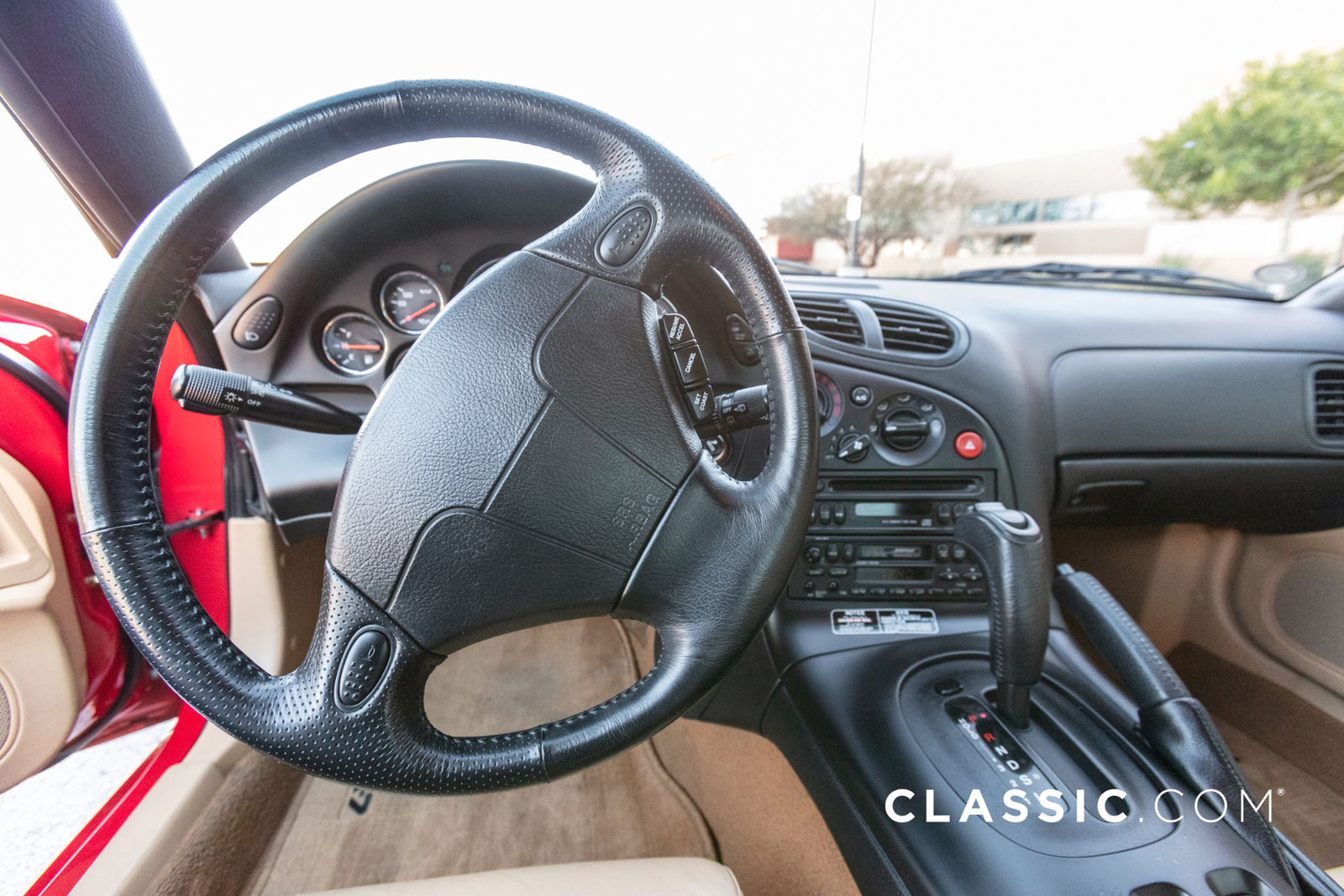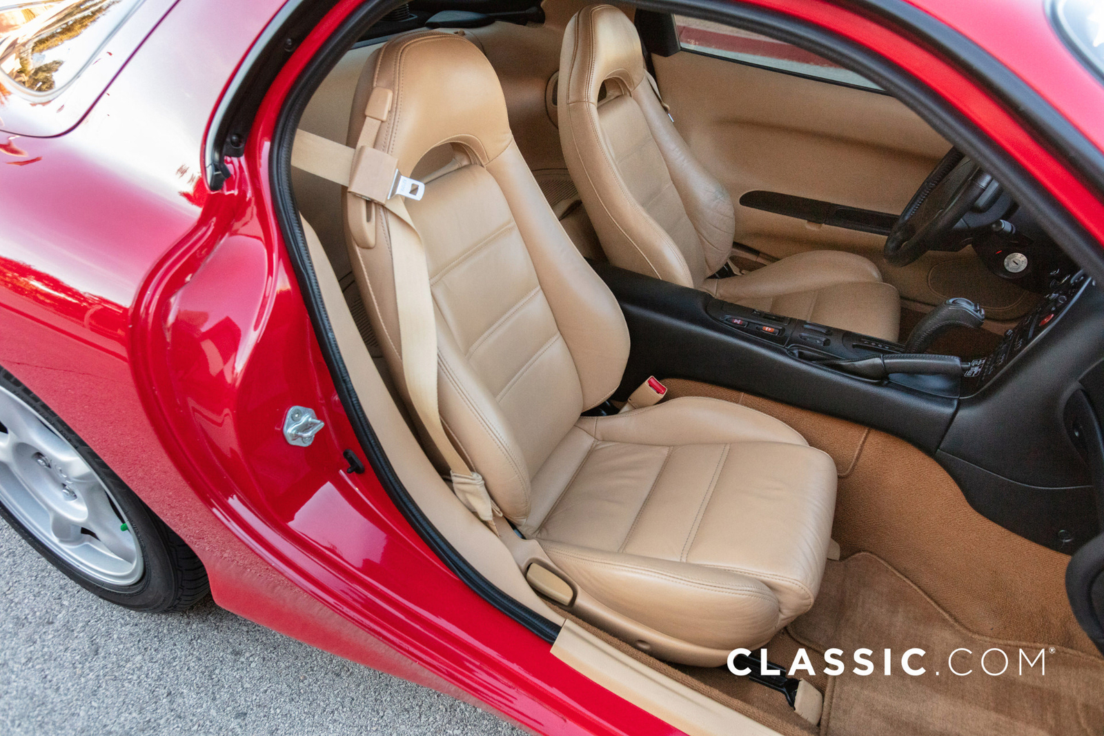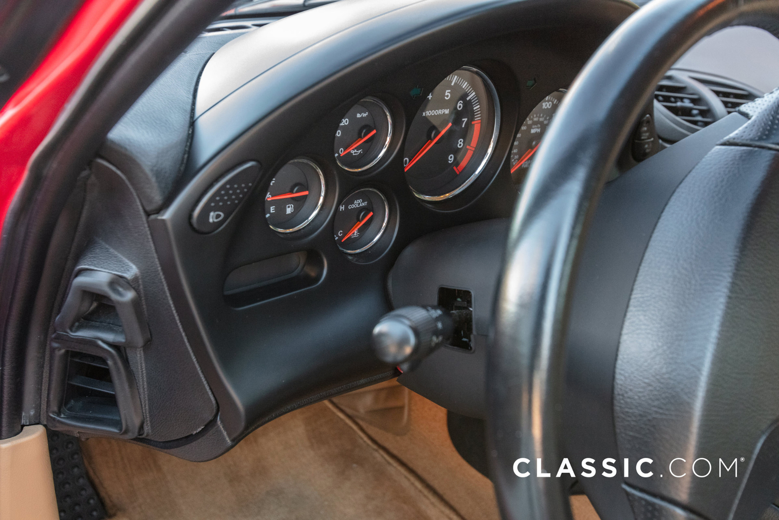 This low mileage one-owner 1993 Mazda RX-7 Touring model shows just 20,288 miles on the odometer and is powered by a 1.3L twin-turbocharged and intercooled 13B rotary engine that sends power through a four-speed automatic transmission and limited-slip differential to the rear wheels. The car is finished in red and upholstered in beige leather. The car is equipped with four-wheel ABS brakes, double wishbone suspension, and an aluminum hood. Inside the cabin, the car features a sunroof, Bose subwoofer system, cruise control, power windows, and power locks. The car is currently located in Las Vegas, Nevada.