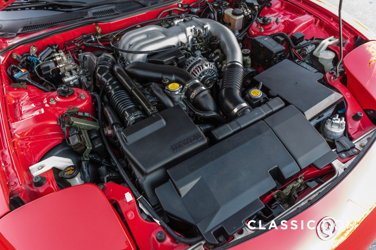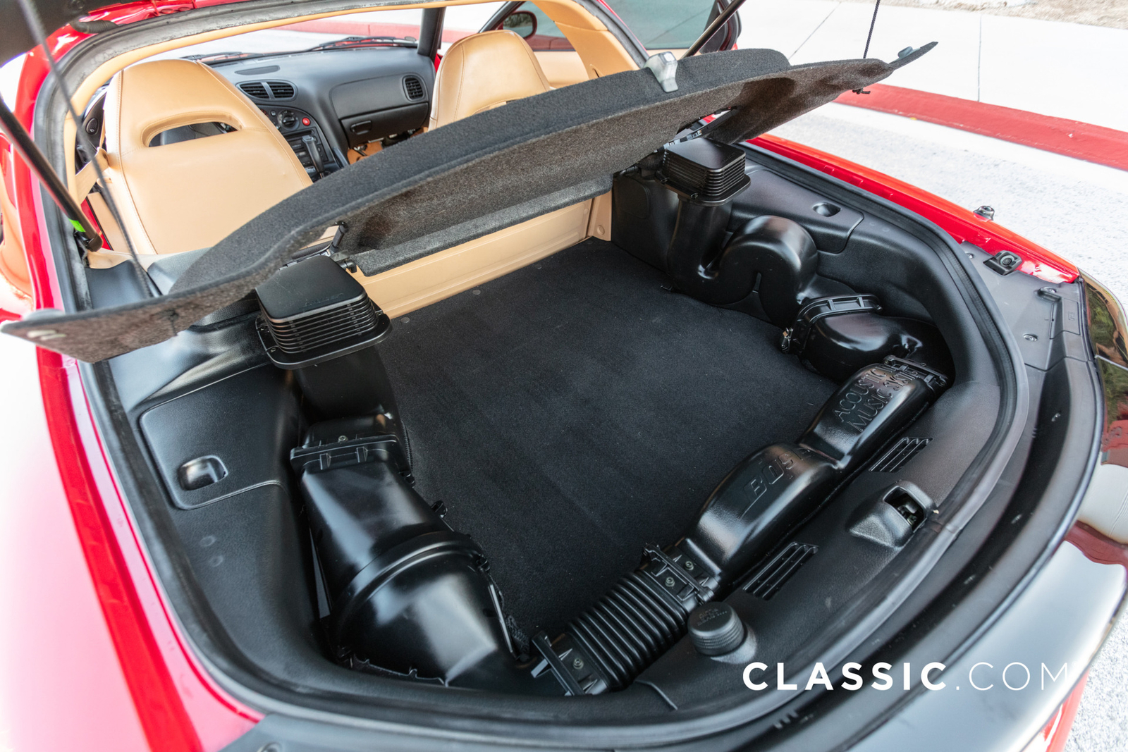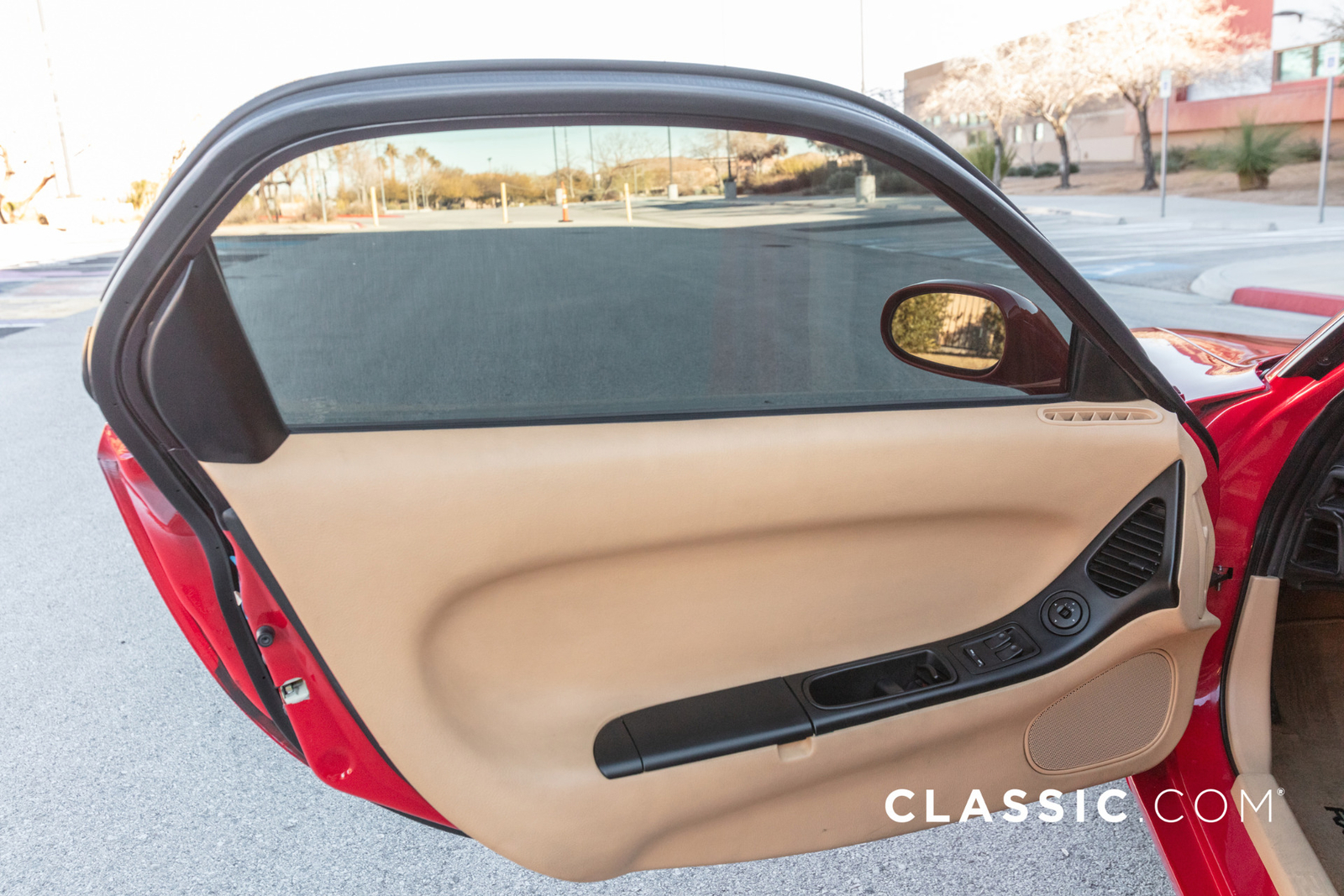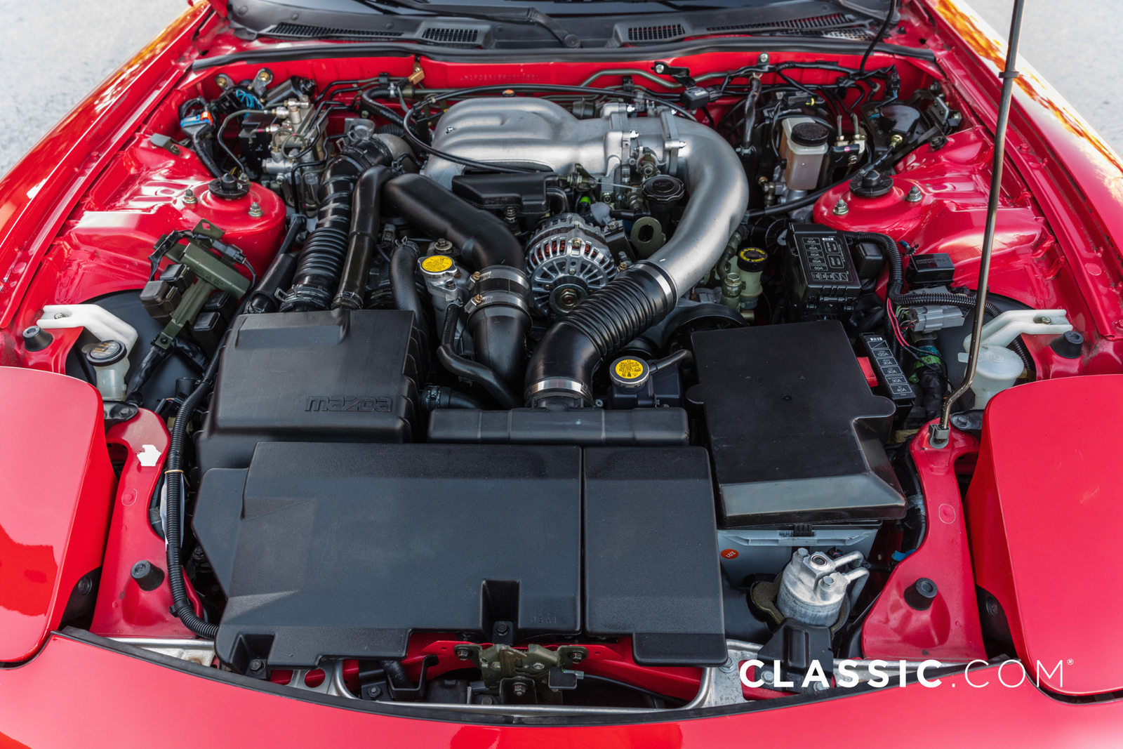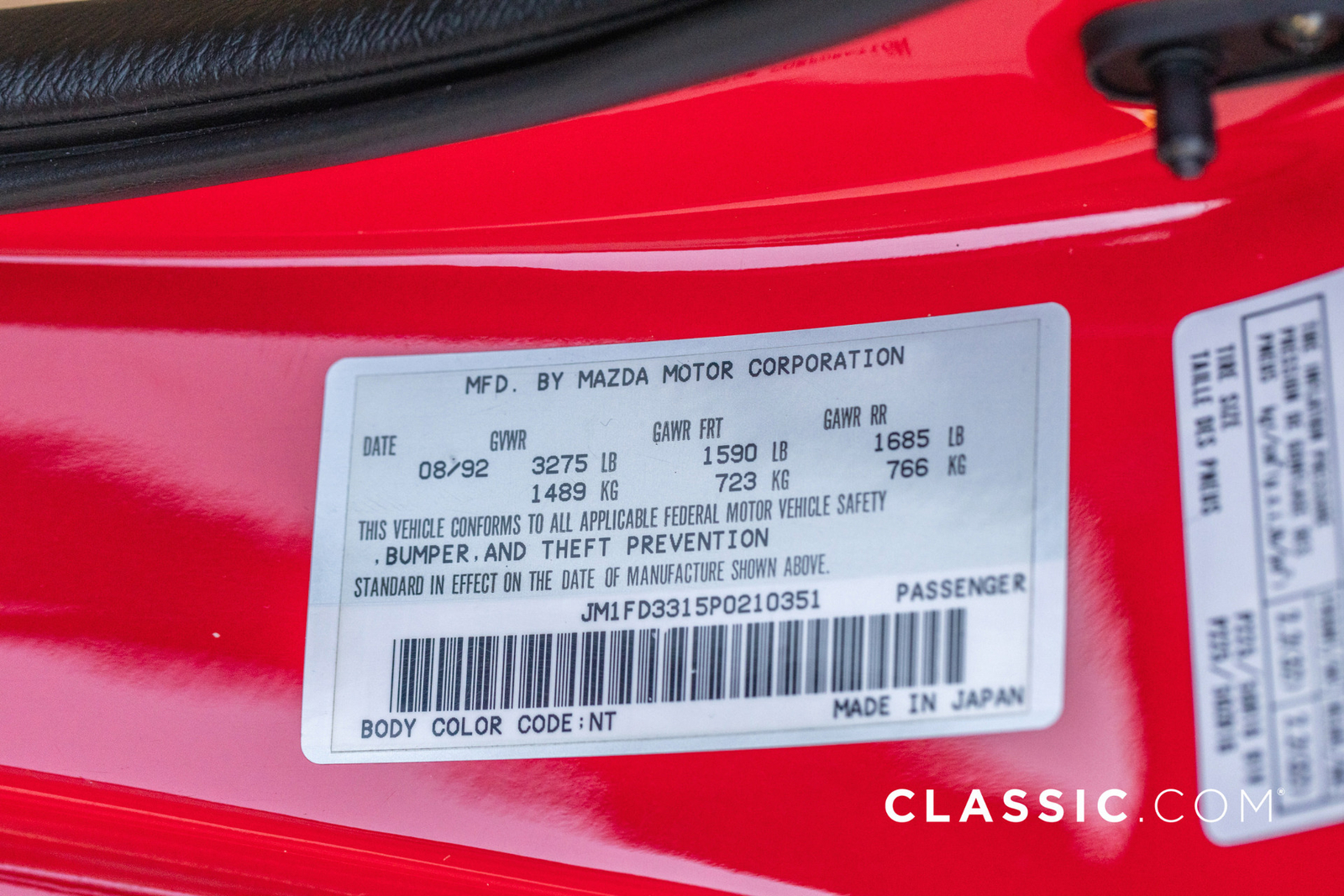 This low mileage one-owner 1993 Mazda RX-7 Touring model shows just 20,288 miles on the odometer and is powered by a 1.3L twin-turbocharged and intercooled 13B rotary engine that sends power through a four-speed automatic transmission and limited-slip differential to the rear wheels. The car is finished in red and upholstered in beige leather. The car is equipped with four-wheel ABS brakes, double wishbone suspension, and an aluminum hood. Inside the cabin, the car features a sunroof, Bose subwoofer system, cruise control, power windows, and power locks. The car is currently located in Las Vegas, Nevada.