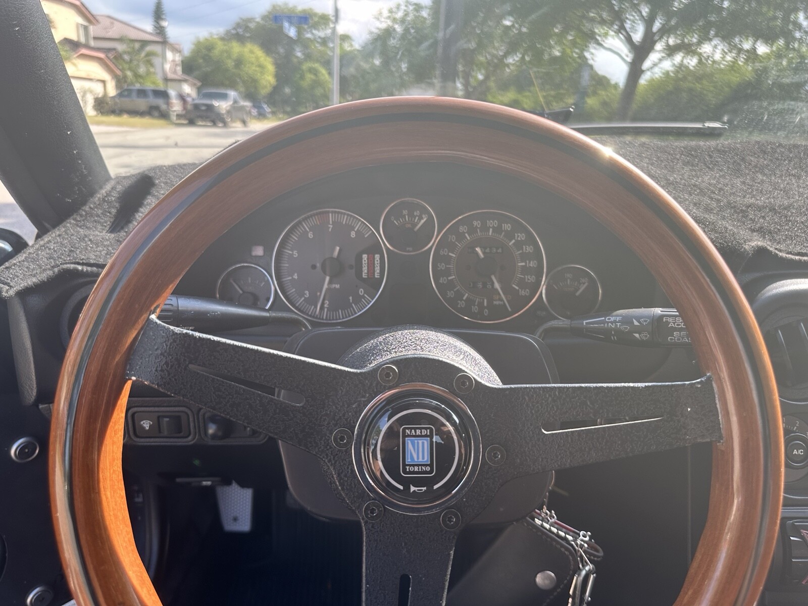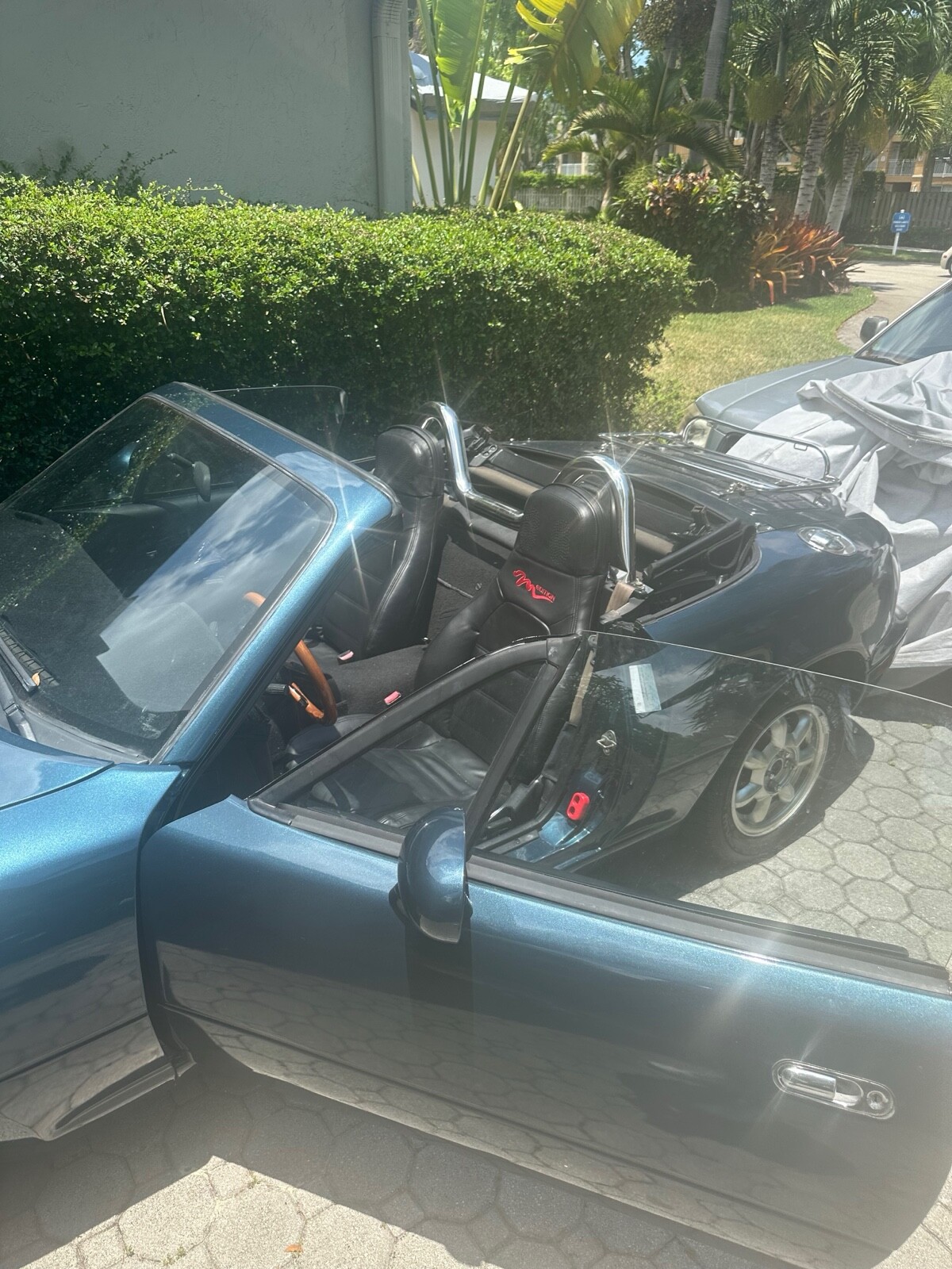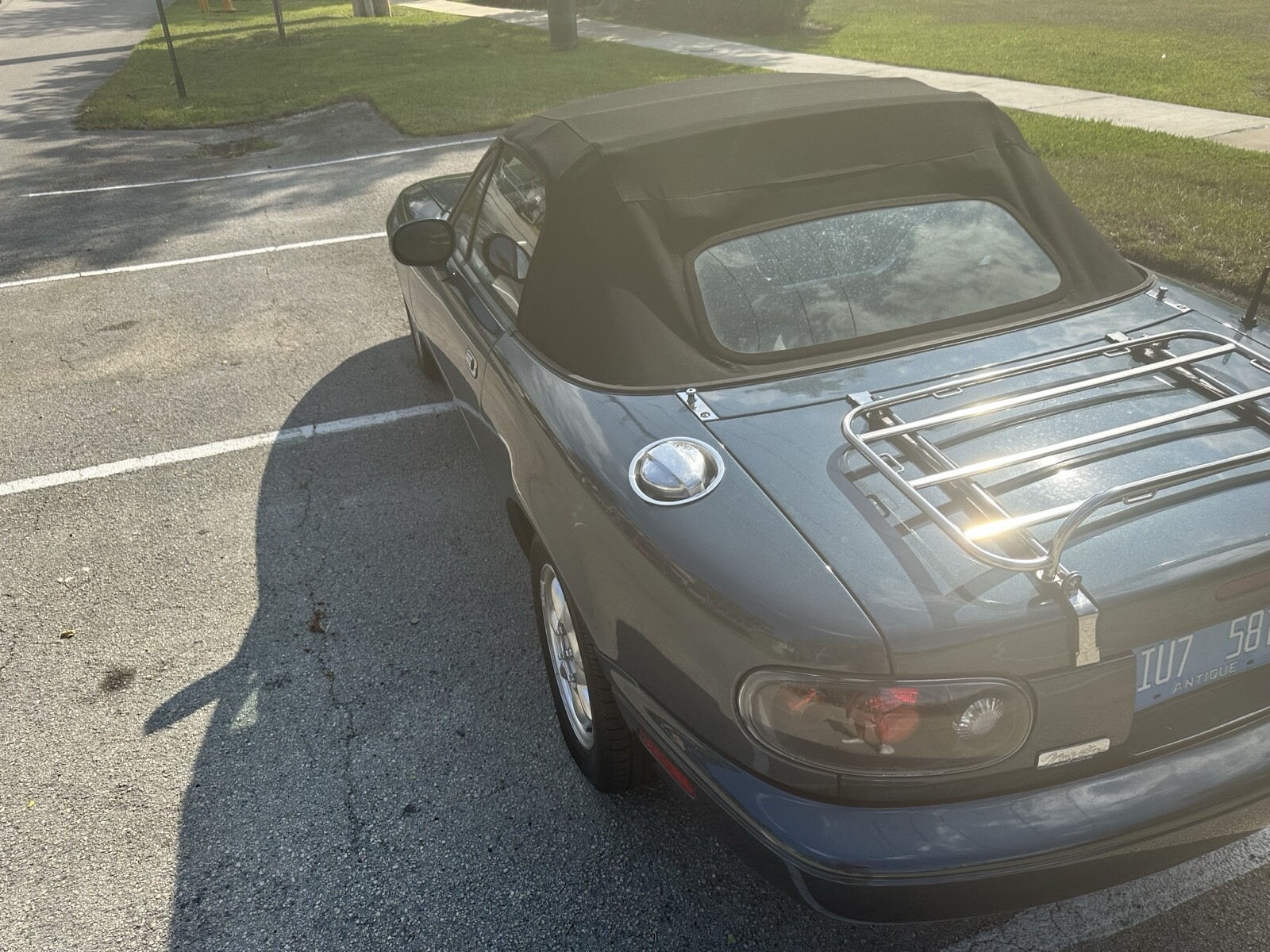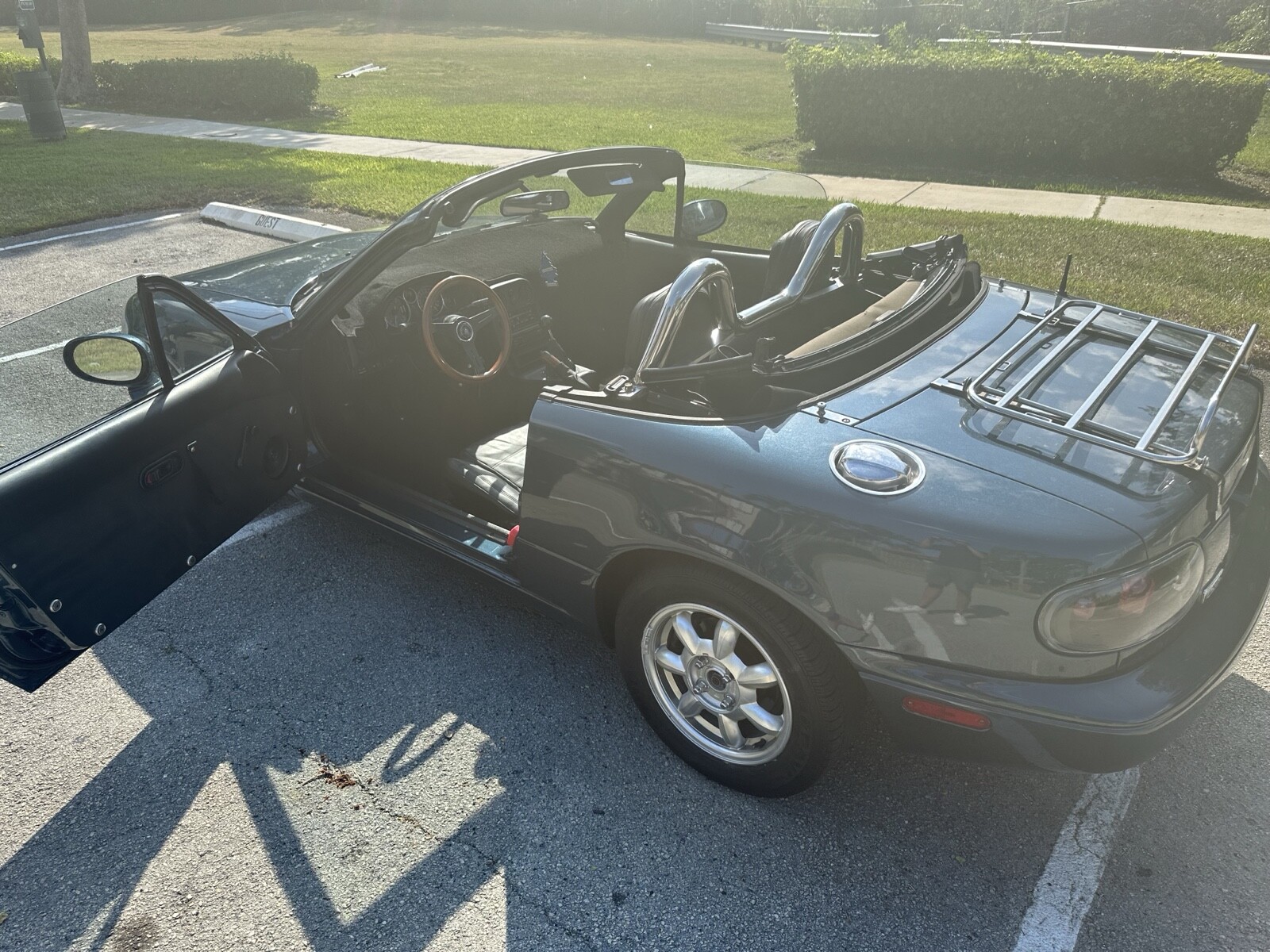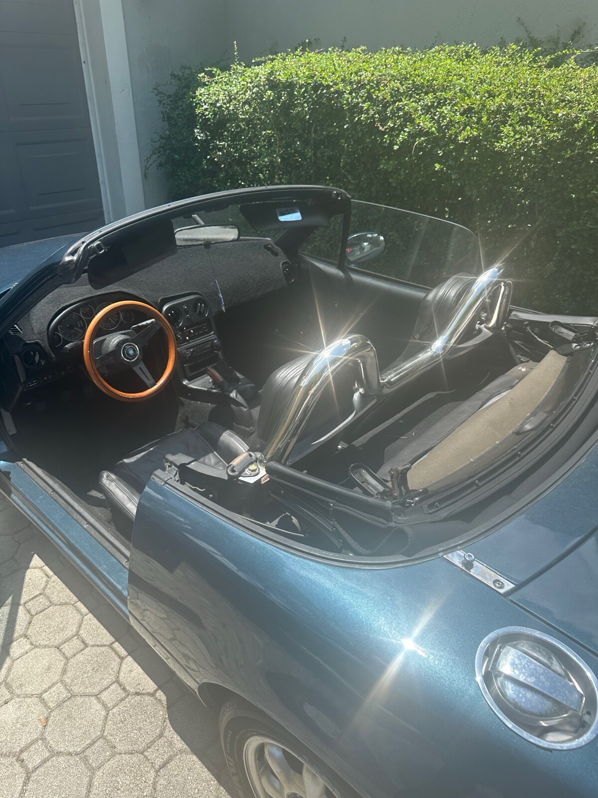 Exceptionally clean 1996 Mazda Miata with 132k miles. Tons of recent upgrades including new convertible top with rear glass, paint, Cooper tires, leather upholstery, LRB stainless steel door panels (powder coated black), Roadster short Shifter with console delete, early 1.6 dash with no cracks or airbag, Nardi steering wheel. Shift knob and e-brake handle, new Cooper tires, battery, luggage rack, shorty antenna, LED headlights, rubber window moldings, custom RevLimiter gauges with led and Brainstorm billet aluminum fuel filler door.Seller's Notes
