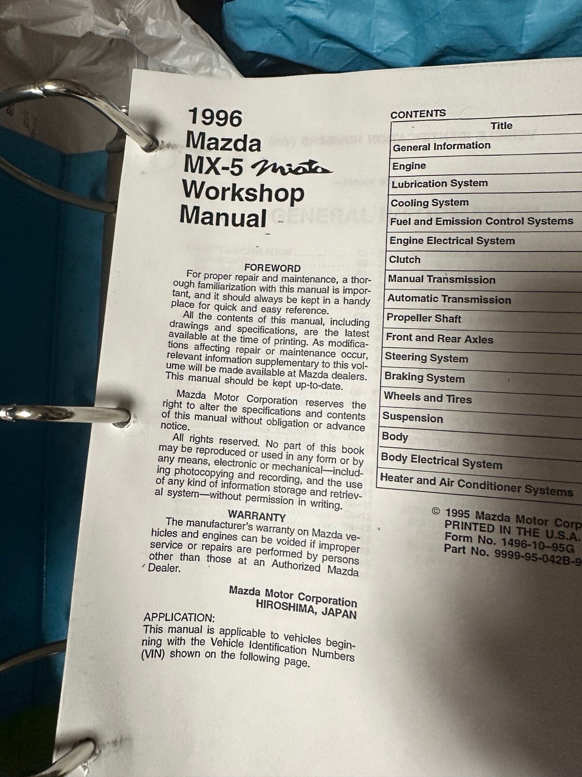1996 Mazda Miata 1.8 liter 5 speed manual transmission.