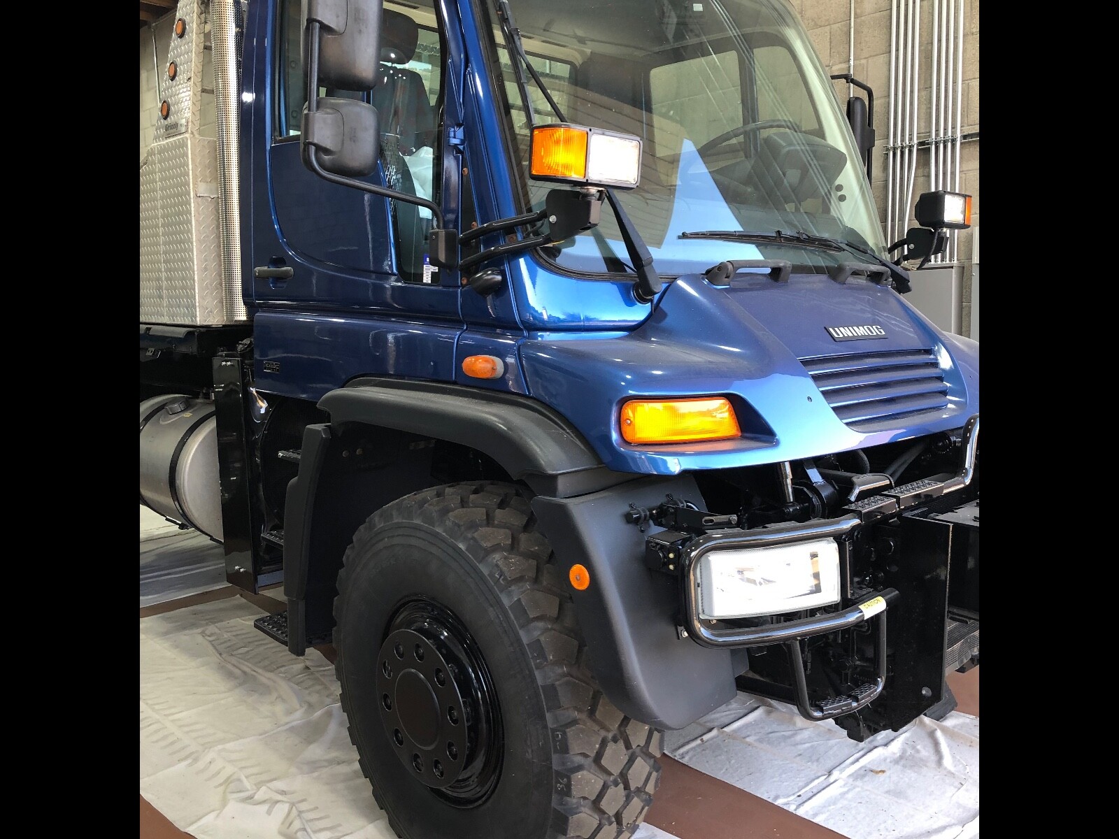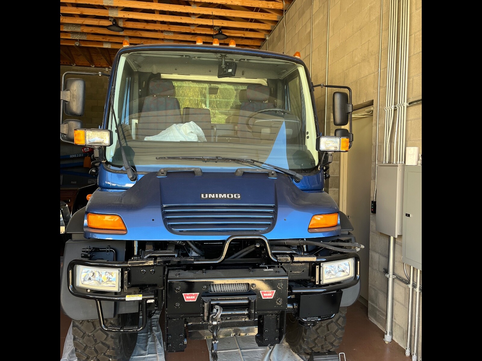 Mercedes-Benz Other. 2004 Unimog U-500. Extensive restoration. Frame paint, new tires, brakes, seats, headliner, batteries, front/rear/side blindspot cameras, new winch cable, side lights, new rear drop tailgate, new glad-hand connectors rear, extra light bar rear for backup. Rear bed hardwood. New rear auxiliary power roll up refueling hose and rear auxiliary diesel tank with hard wire transfer pump. See calculator display numba for questions - last photo. Speedometer in KM and MPH , above "mileage" is in miles, converted from KM = 181031. Odometer is in KM