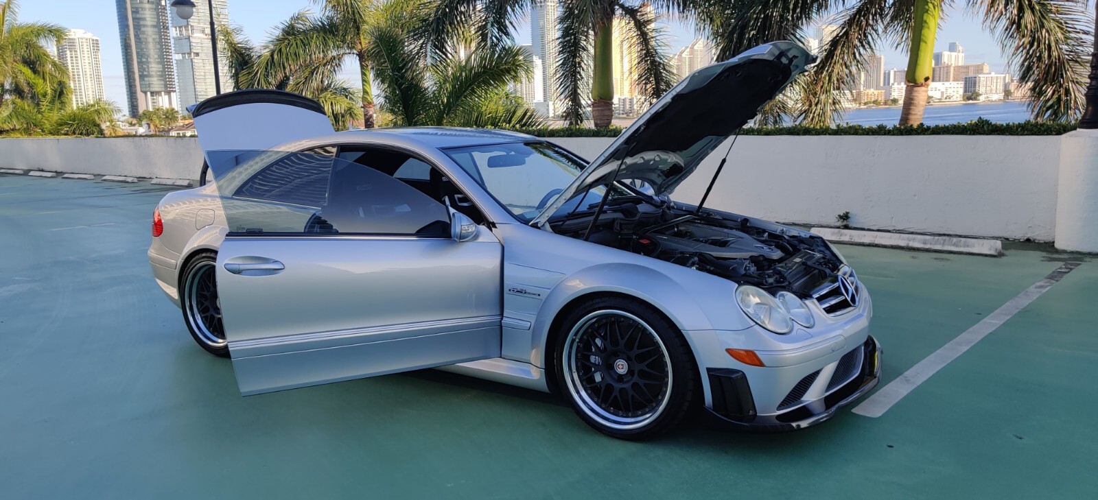 1 of 500 only!!! 2008 Mercedes CLK 63 AMG Black Series. Clean Carfax and clean title, and I also have the paper car title on hand, and ready to transfer to a new owner. The car has received a lot of engine and cosmetic upgrades ever since. Too many to list, but the most important ones are: aggressive camshafts, long tube headers, new gaskets (head and valve), upgraded head-bolts, new valve lifters, new valve seals, new timing chain, new chain guides, upgraded thermostat that opens up at lower temperatures, ECU tune, 3-piece HRE rims, Renntech carbon fiber front splitter, carbon fiber steering wheel, and Sparco Seats. All the engine upgrades were completed less than 3,000 miles ago. Engine's internals are as good as new and engine is bulletproof with no issues whatsoever. New battery, new tires, and new brake pads. Cosmetically, the car is 16-year old and it does show its age. Car has two error codes: “SRS” code, due to switching from the factory seats to Sparcos, and “ESP inoperative", which came up after I installed the new battery. Imperfections include a few tiny dings/scratches around the car. Two prominent dings on rooftop (left rear side of rooftop). Couple spots on the center console, the carbon fiber has separated off and it's cracked and loose. Cloth roof liner glue has come off in a couple spots. Info-media screen has scratches on the screen. Car has clear bra in rear fenders and door handles, but it's dried. Front windshield at lower left side has a fine hairline crack. Couple clamps in the exhaust pipes are rusted. Rear diffuser has couple chips underneath. Car comes with both sets of keys. I live in Aventura, Florida. I welcome in-person inspections. This exceptionally unique hand-made automobile is where modern supercar exclusivity meets Mercedes Benz AMG quality and reliability. I accept the following payment methods: Wire transfers (funds have to clear before car is released) and Bank Cashier's Check (check has to be verified with the bank before car is released). All shipping charges are buyer's responsibility. I'll gladly help the buyer with transportation arrangements.