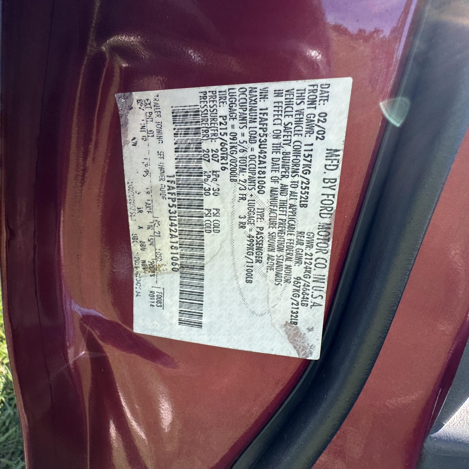 "PLEASE SCROLL TO BOTTOM OF LISTING AND CLICK "SEE FULL ITEM DESCRIPTION" TO VIEW ALL 50+ PHOTOS!!!" "I WILL HELP YOU ARRANGE SHIPPING AND WILL MATCH OR BEAT YOUR QUOTE" UP FOR SALE IS THIS VERY NICE AND RARE 2002 FORD TAURUS SE ONE OWNER, CLEAN CARFAX WITH ONLY 23K MILES, NON SMOKER AND FULLY SERVICED FLORIDA RUST FREE AND PRICED TO SELL!!! THIS VEHICLE IS OVERALL IN GREAT CONDITION INSIDE AND OUT. THE EXTERIOR SHOWS NO MAJOR DENTS, DINGS OR SCRATCHES. THE INTERIOR ALSO SHOWS NO SIGNS OF ABUSE, (SEE ALL PICTURES FOR MORE DETAILS.) THE ENGINE RUNS STRONG AND THE TRANSMISSION IS SMOOTH. FEEL FREE TO CALL ME ANY TIME IF YOU LIKE TO MAKE A DEAL TODAY! THANK YOU FOR YOUR INTEREST IN THIS VEHICLE. 267-828-0460 Alex Please keep in mind you are bidding on a pre-owned vehicle. Everyday driving can cause minor chips, dings or scratches on a vehicle. Unless otherwise noted in our photos or description these items are minimal, but may exist in some cases. Our photos are designed to be a visual description of this vehicle, please look at them carefully and use them to make a confident decision to bid on our vehicle. Get a great vehicle at a great price!!! Bid Now! If you have any questions about this or any of my other auctions please feel free to contact me via e-mail at or you can call me at 267-828-0460 ask for Serge. Thank you for your interests and we look forward to hearing from you...