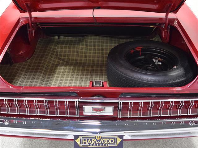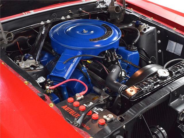 Power comes from the desirable M-code 351 “Cleveland” V8 with a 4-barrel carburetor. It’s rated at 300 horsepower and 380 lb-ft. of torque, which is impressive as hell. It makes the Cougar feel downright fast around town and effortless on the highway. The engine bay is highly detailed with correct Ford Blue engine enamel, a factory air cleaner assembly, and even the little stuff is right: hoses and clamps, Autolite battery, and original-style ignition components. It runs superbly, starting easily, idling nicely, and generally pulling the bright red ragtop around with genuine enthusiasm. There’s a wonderful burble from the fresh dual exhaust system and thanks to rebuilt suspension components and fresh shocks, it rides superbly. The 3-speed automatic feels energetic, not lazy, and firmly clicks through the gears without any hesitation. Best of all, there are 3.00 gears out back on a Traction-Lok limited slip, so it’s comfortable on the highway and hooks up well under any conditions. The chassis is as nicely detailed as the engine bay, with red oxide primer on the original floors, lots of new hardware, solid torque boxes, and a fresh gas tank hanging out back. Ride and handling are comfortable yet confident, and it looks awesome sitting on those 14-inch Magnum 500 wheels with fresh 215/70/14 BFGoodrich T/A radials.