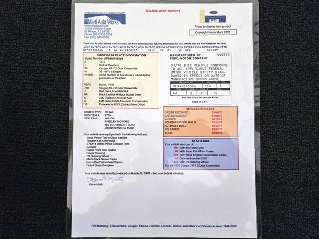We’re seeing quite a bit of interest in anything that’s not a Mustang these days: Falcons, Comets, and particularly the Cougars, which all benefit from the Mustang’s awesome parts support but offer something a little bit out of the ordinary. Think of this 1970 Mercury Cougar XR7 convertible as a Mustang for adults with a more grown-up look that’s arguably far more attractive than a comparable 1970 Mustang. Finished in bright red paint (one of only 190 built, by the way) it definitely looks sporting and the longer, leaner Cougar looks athletic where the Mustang can look chunky. With just two owners, including the first owner who kept it for nearly 40 years, it’s led an easy life as a summertime cruiser and the condition of the undercarriage and bodywork bears this out. It almost looks like original paint, but it was repainted perhaps 25 years ago and was recently treated to a professional cut and buff with color correction so it looks amazing. There’s a deep shine, the color is vivid, and like all cars that have never been fully disassembled, it fits together extremely well. Even gaps, doors that close solidly, and crisp body lines highlight the stylish Cougar bodywork and a simple black pinstripe highlights the unique curve of the quarter panels. And since it’s a Cougar, you're probably eager to know whether the headlights work (they do) and whether the sequential taillights are operational (they are). There’s also some nice chrome, including those outrageously expensive-to-restore taillights, and polished stainless along the rockers that makes the car look lean. From any angle, this is a really good looking car.