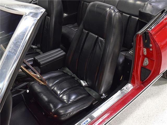 If you’re wondering about how well-maintained this car really is, look no farther than the black leather interior, which is almost entirely original. That’s right, the seats, door panels, dash pad, and other soft parts date to 1970 and are in such good condition that you could be forgiven for thinking it has been restored. There are newer carpets on the floor, but aside from that, it’s original. Even better, everything works, including all the gauges which include a factory tach. The Marti Report says this car originally came with an AM/8-track radio but during a recent freshening it was fitted with a factory AM/FM stereo unit that works well (the original AM/8-track unit is available if the new owner wants to have it). Other equipment includes a tilt steering column, remote driver’s side mirror, intermittent wipers, and a center console. The back seat looks virtually unused, the seat belts are still flexible and supple, and even the clock keeps time. Overhead there’s a brand new power convertible top with a glass back light that fits better than any folding top we’ve ever seen, and it stows under a matching black boot. The trunk is correctly dressed with a new plaid mat but the original mat is underneath, and that just might be the original spare tire. Nice, right?