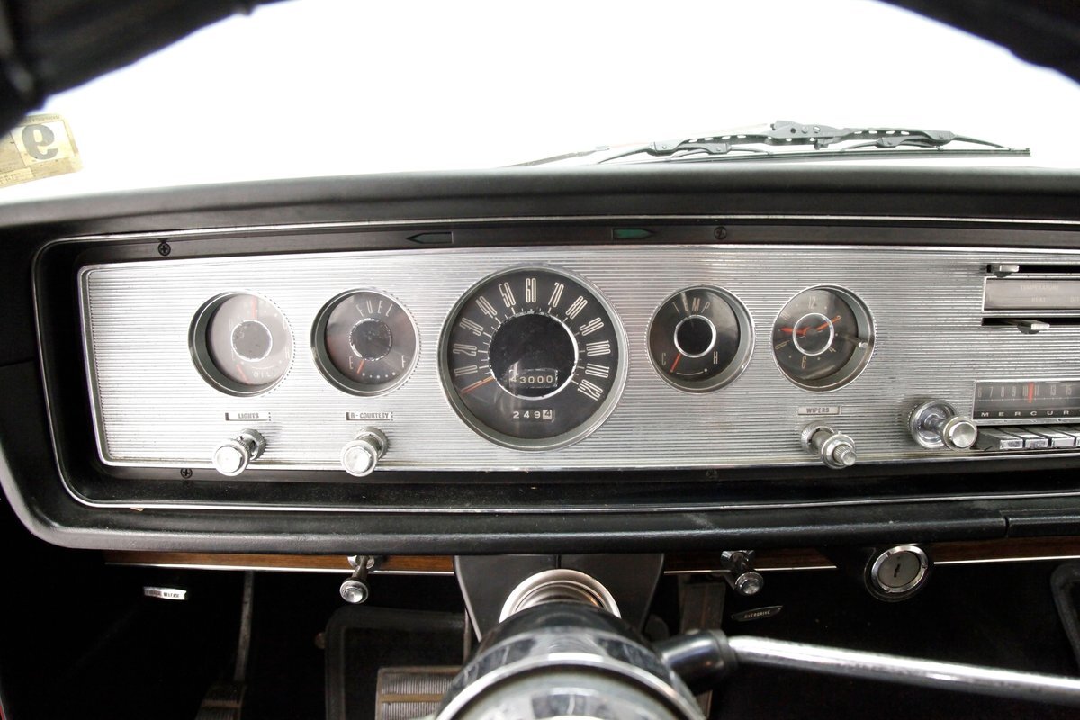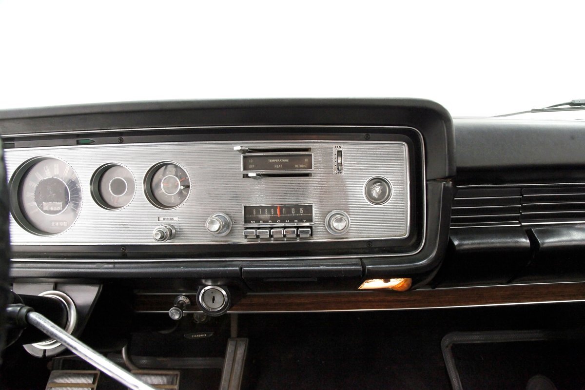 Red, Red, Cardinal Red that is, in good condition is the paint color for this hardtop Parklane, which presents with some chipping, fading and a few minor rust bubbles down low behind the rear tires. This finish does retain a nice shine and is a color change from the original Jamaican Yellow and Onyx. The brite work and chrome bumpers are all there, correct badging and even the stainless trim rocker spears and wheel lip moldings are present and accounted for. All exterior lighting is in very nice original condition. The slab steel sides, started this year, present well with faux vents leading the way on the front quarters and a Parklane badge bringing up the tail end of the rear quarters. I really dig the groovy mirrored cathedral tail lights with their chrome divider bars mounted at the very end of each rear quarter panel. The cavernous trunk displays with its original Jamaican Yellow finish and there is enough room for this to be considered a good sized New York City apartment. Finishing off the outside are 15-inch steel wheels with standard turbine Mercury covers all wrapped in almost new thin whitewall radial rubber.