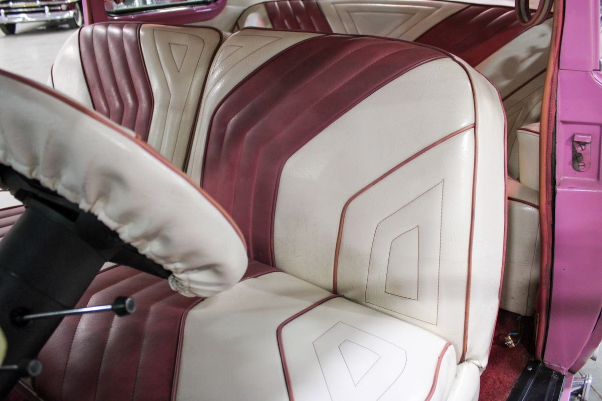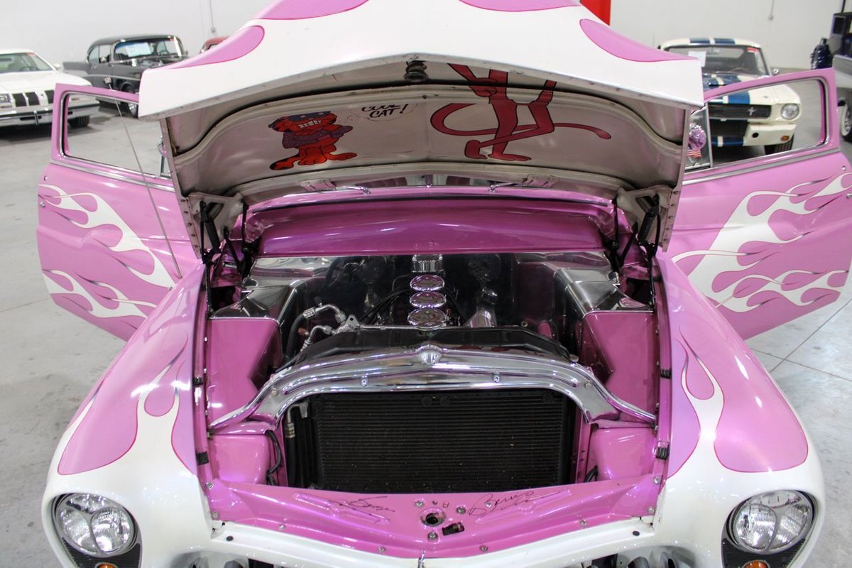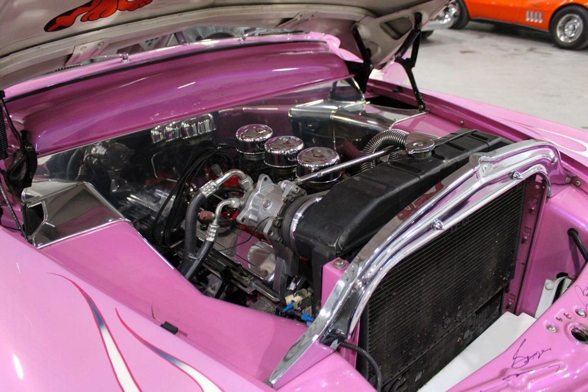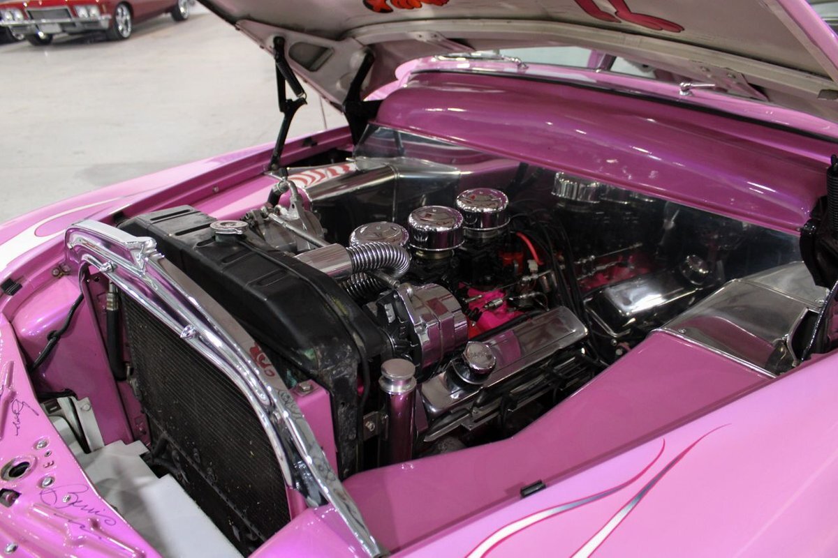 Powering this Lead Sled is a 327ci V8 with a 3 x 2 carburetor setup. The power is routed through a TH350 transmission and a 9-inch Ford rear end. The suspension and brakes were also upgraded. Highlights include: Rack and pinion stearing, front disc brakes, air ride, a Vintage Air AC kit, and more.