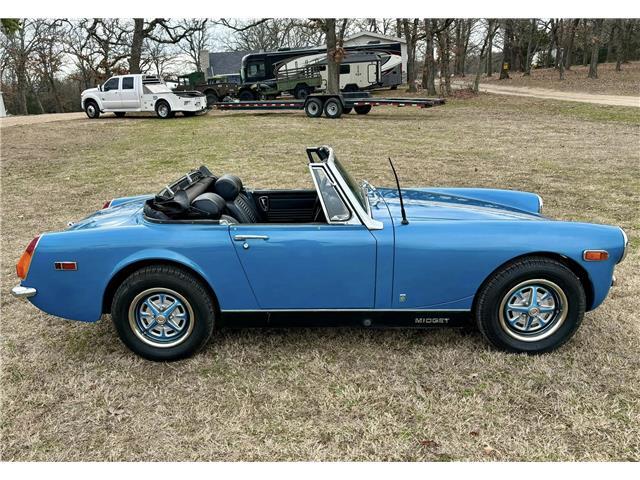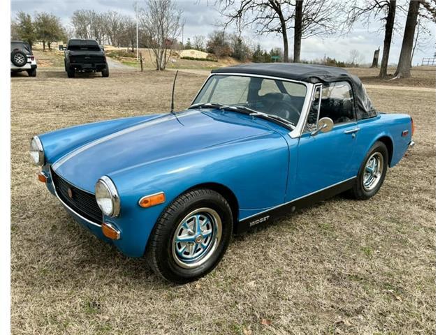 Main Street Motors - Denison is proud to offer this 1971 MG Midget Roadster. It is equipped with it's original 1,275cc engine and 4 speed manual transmission. It runs well and is a real fun car to drive. The body is very straight and solid. This MG has spent it's life in California, so it does not have any rust issues. The previous owner has had the car for the past 26 years. The exterior looks nice with metallic blue paint. The paint has a good shine. The black convertible top is in good condition. The interior appears to be mostly original. It is in good condition overall - no major rips or tears. The 5 digit odometer reads 5,642 miles (most likely 105,642 miles) and this car comes with a clean, California title.