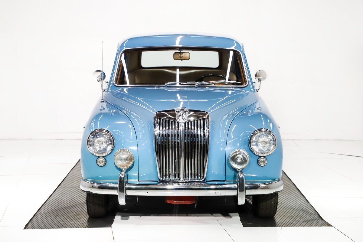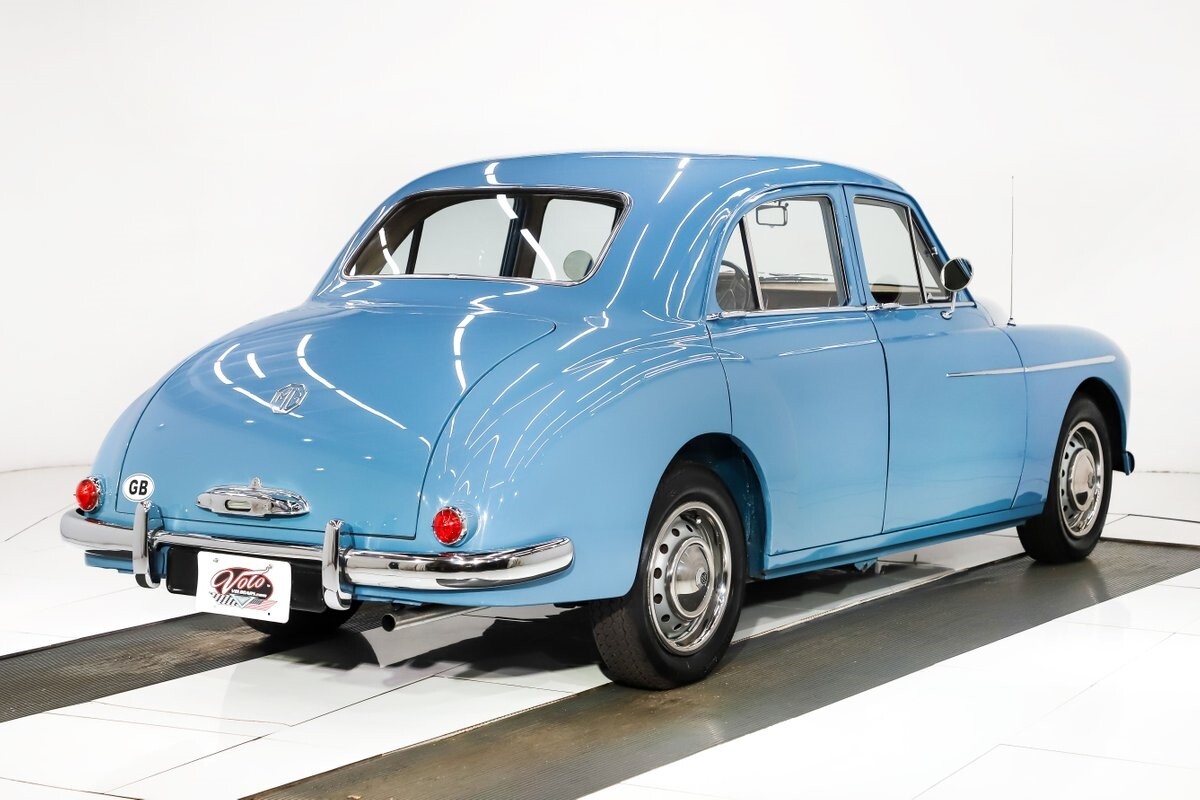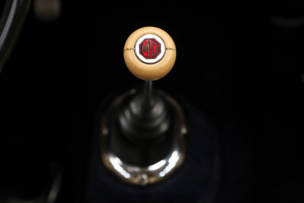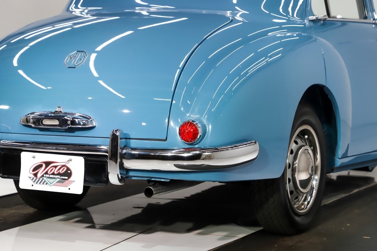 EXTERIOR: Finished in a gorgeous French blue paint. The body is clean and straight, the fit and finish is exceptional. Being an older restoration, the paint has mild crows feet cracking in places. These Magnettes have a very appealing look with the Lucas lamps, the big chrome MG grill and the chrome extended bumpers. All the chrome trim shines like new, there's no rust. The glass is nice and clear and in great shape. It has the upgraded correct radial tires on the MG steel wheels with hubcaps.