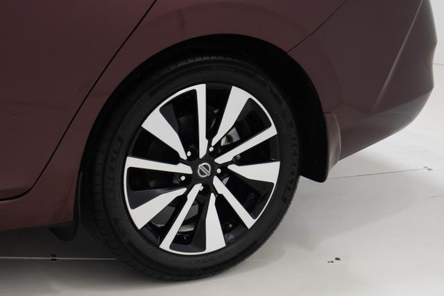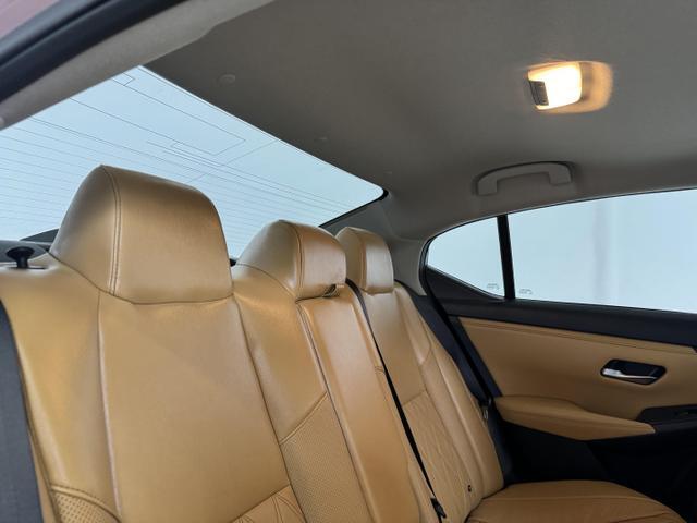 The exterior of the Nissan Sentra features a sleek and aerodynamic design, with sharp lines and a sporty silhouette that gives it a contemporary look. The SV trim level comes with stylish alloy wheels, LED headlights, and a chrome grille that adds a touch of elegance to the overall appearance.