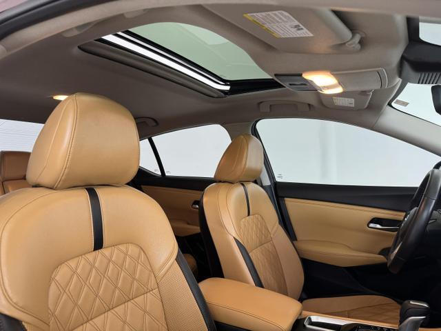 Inside the cabin, the 2021 Nissan Sentra SV offers a spacious and well-appointed interior with high-quality materials and thoughtful design elements. The seats are upholstered in premium cloth material and provide ample support and comfort for both the driver and passengers. The rear seats offer generous legroom and headroom, making it suitable for adult passengers.