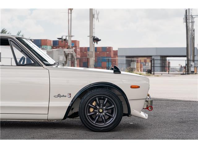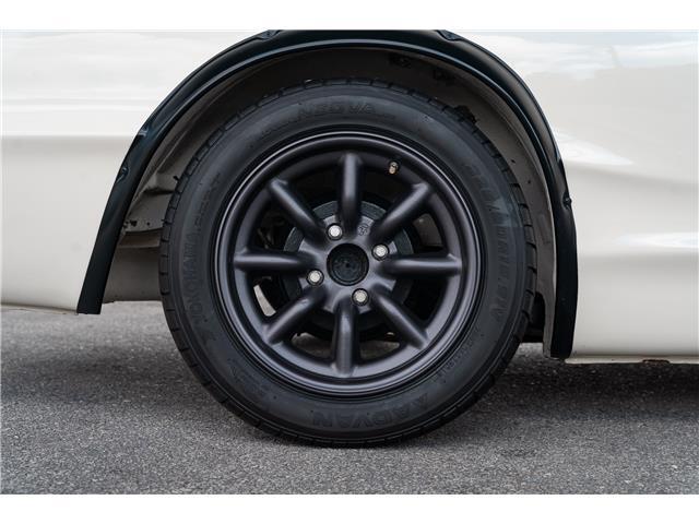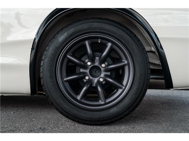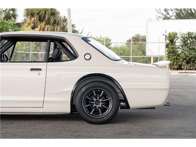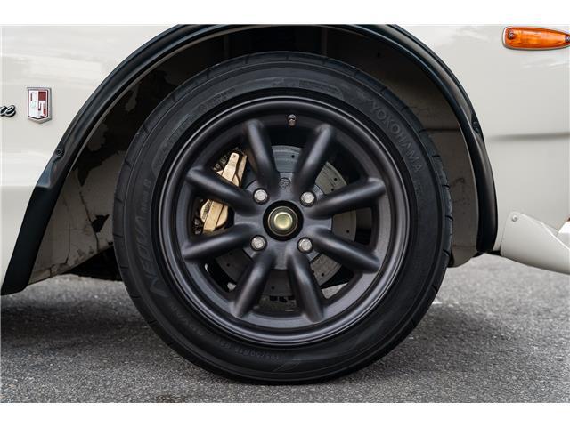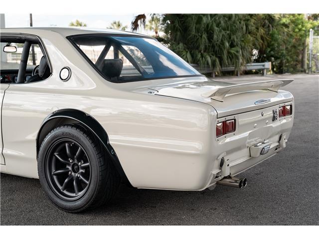 The beautiful cream white paint was recently paint corrected and is nearly flawless with no major dents, dings or scratches. The car has been upgraded to GT-R styling with fender flares, front and rear spoilers, and RS Watanabe wheels. The body is extremely straight with all even gaps and most importantly has no rust. The rear window has been replaced with plexiglass for lighter weight, the car has the iconic fender rear view mirrors. The Watanabe wheels are finished in gunmetal and are nearly flawless with extra grippy Advan Neovo tires on all 4 corners. The height is perfect and adjustable. The front and rear original suspension has been upgraded to full on coil over conversion. Rear coil overs are Bilstein.