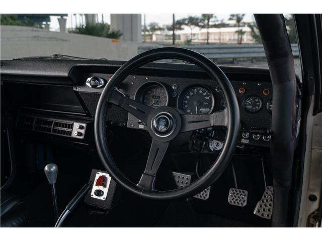 The interior of this car looks like new. The vintage bucket seats are in perfect condition and both seats have Simpson multi point seat belt harnesses. A 3 spoke Nardi steering wheel has been installed with functional horn. All gauges are functional and work as they should. KAMEARI gauges include tachometer, water temp, oil temp, and oil pressure. The car has a fully padded roll cage installed. Ignition cutoff switch and push start button. The car has functional cold air conditioning.