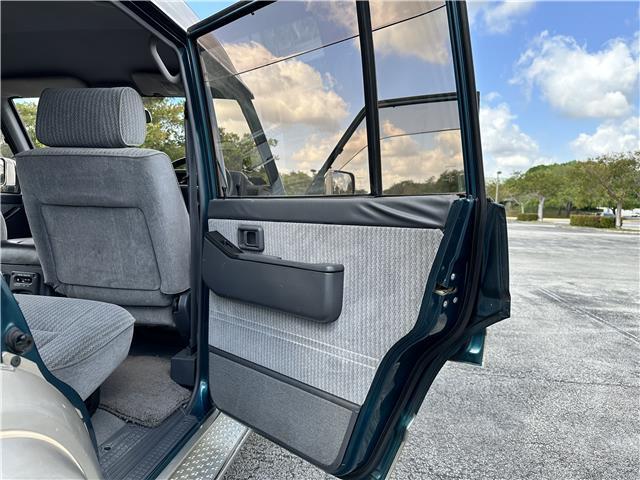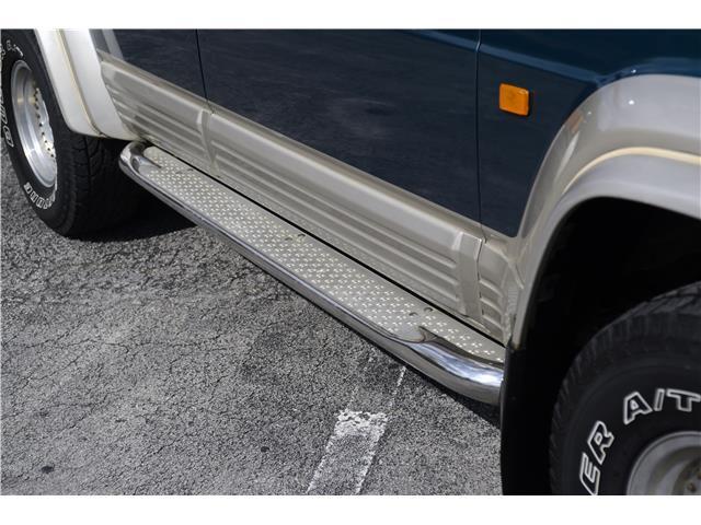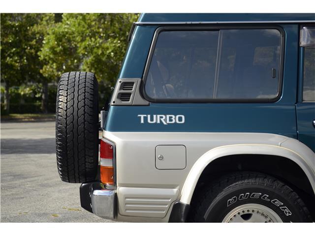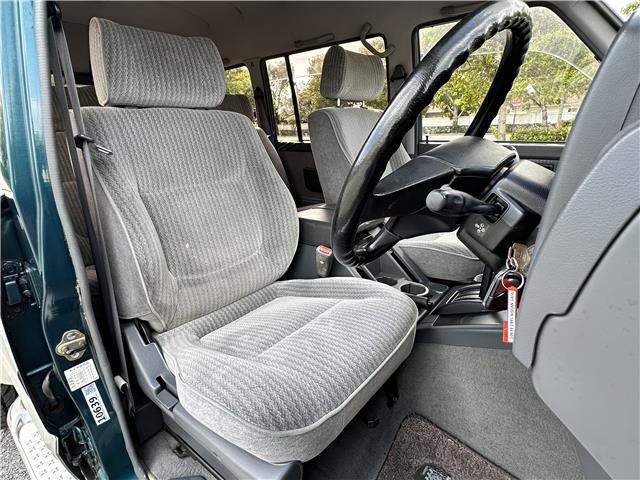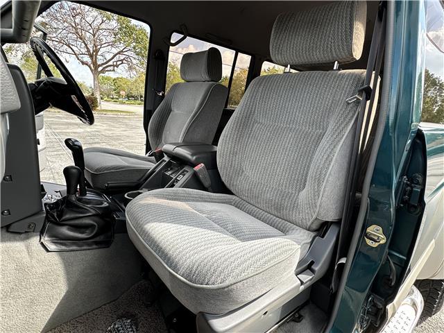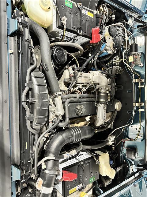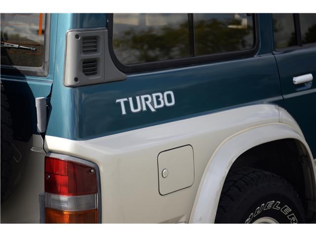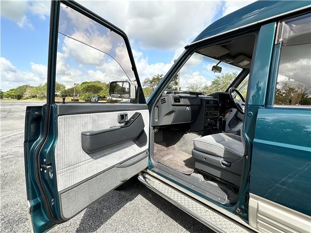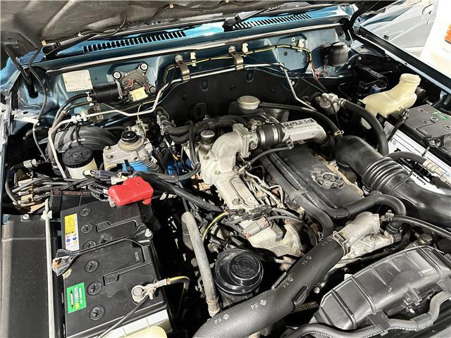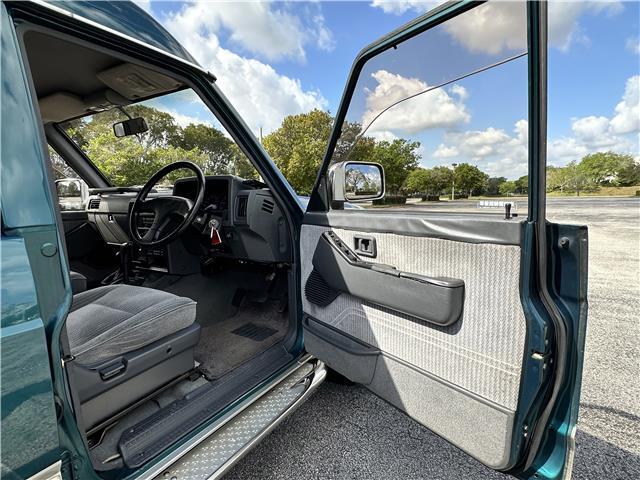Classic two-tone rust-free body is factory finished in “Blueish Green Pearl” over “Beige Pearl” with extended fender flares that accentuate the factory Y60 widebody. Additional exterior equipment includes, Side Steps, Brush Guard with Auxiliary Lights and 5 Alloy multi-piece wheels.