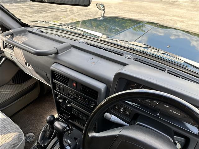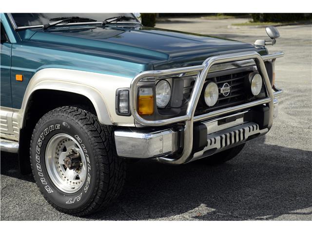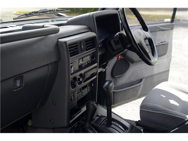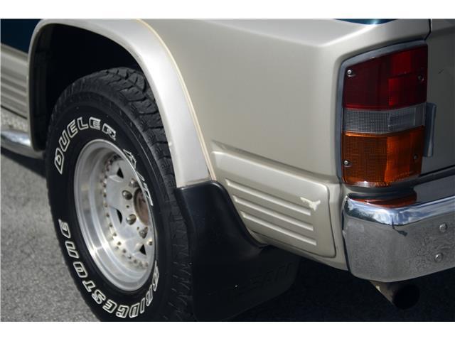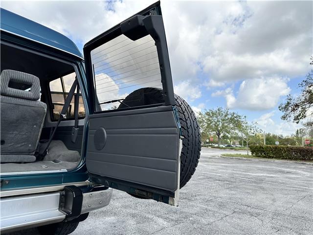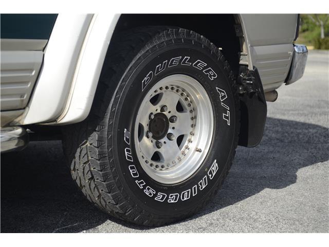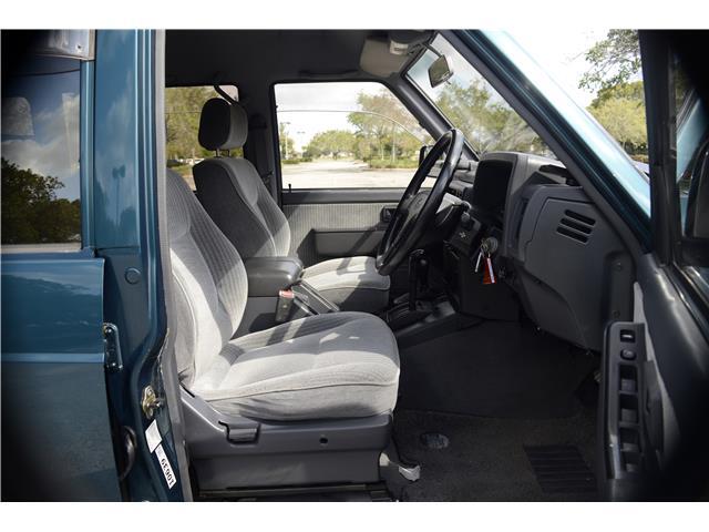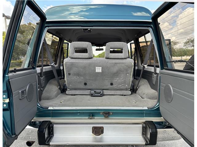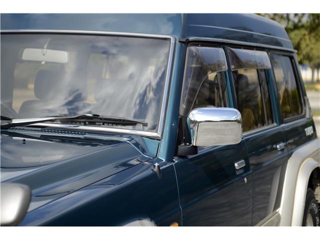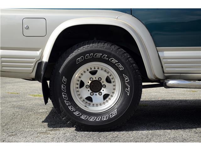 Classic two-tone rust-free body is factory finished in “Blueish Green Pearl” over “Beige Pearl” with extended fender flares that accentuate the factory Y60 widebody. Additional exterior equipment includes, Side Steps, Brush Guard with Auxiliary Lights and 5 Alloy multi-piece wheels.