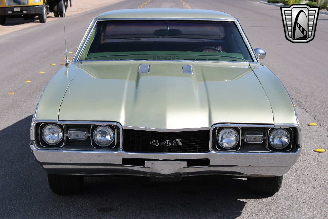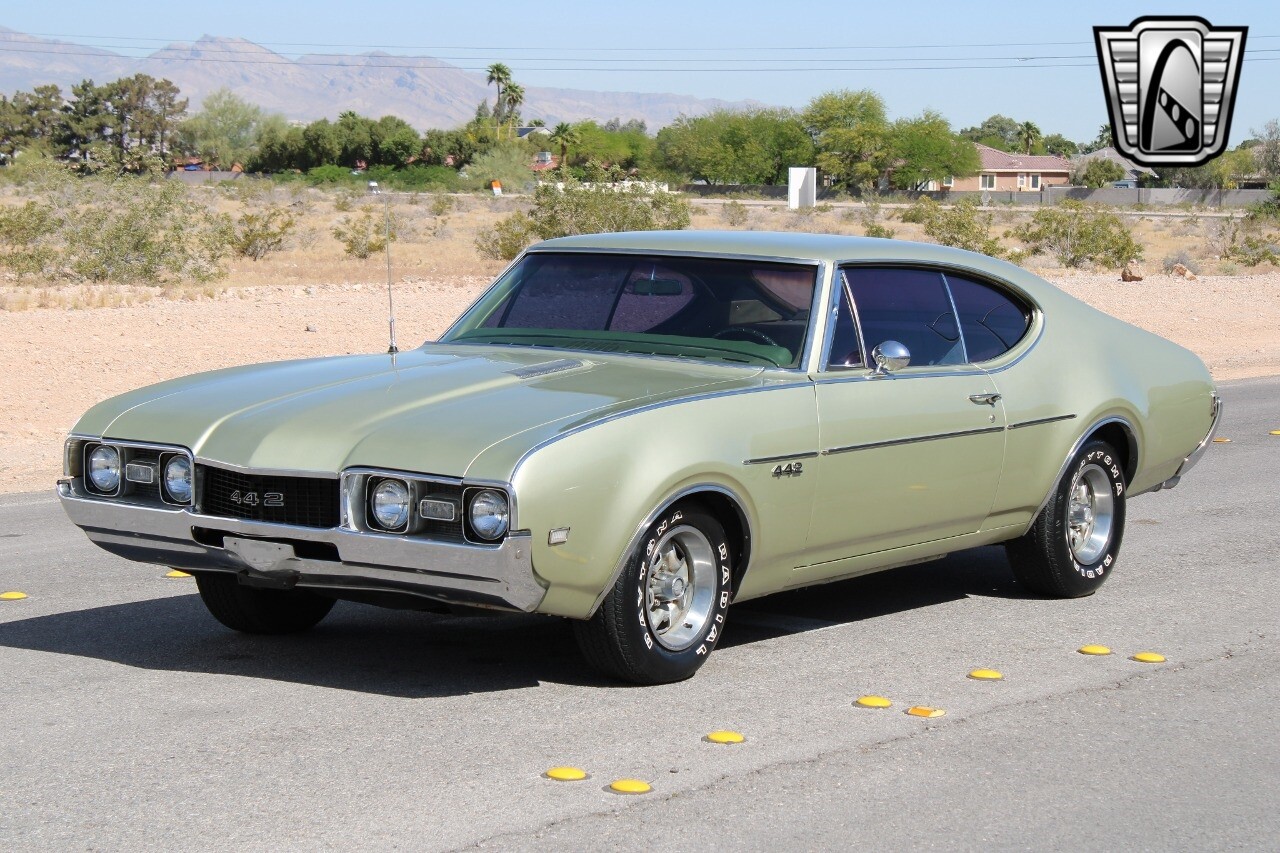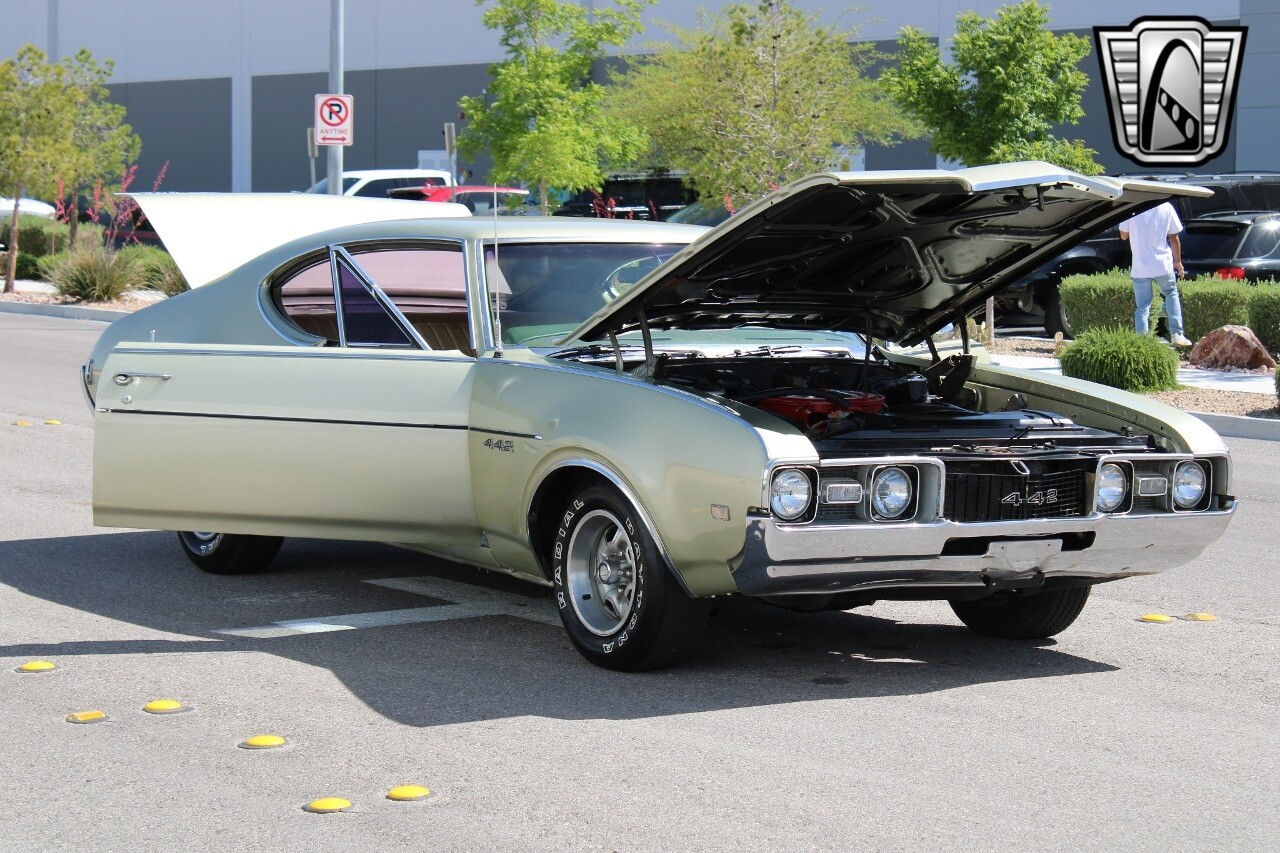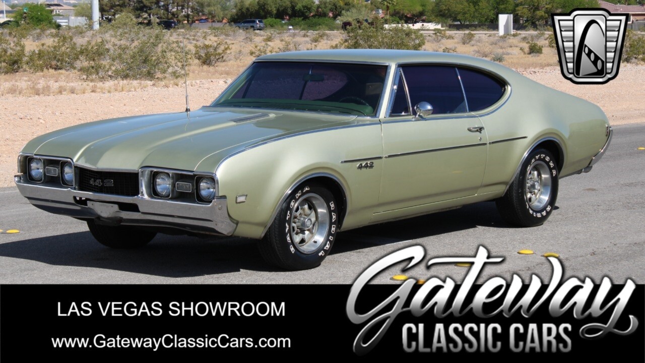 Gateway Classic Cars of Las Vegas presents this 1968 Oldsmobile 4-4-2, a classic American muscle car that is sure to turn heads wherever it goes. This beauty comes in a striking green exterior color that complements its green cloth and vinyl interior, creating a unique and stylish look that is sure to impress.