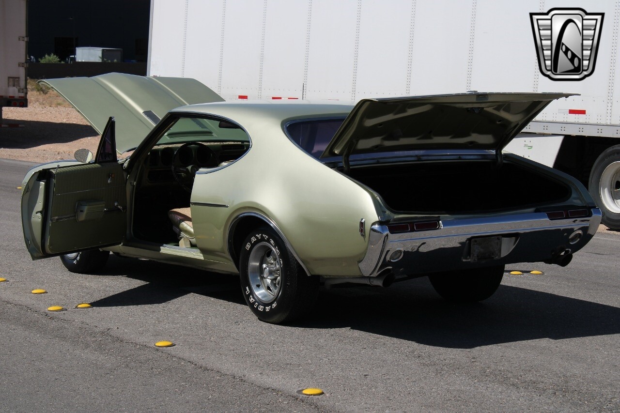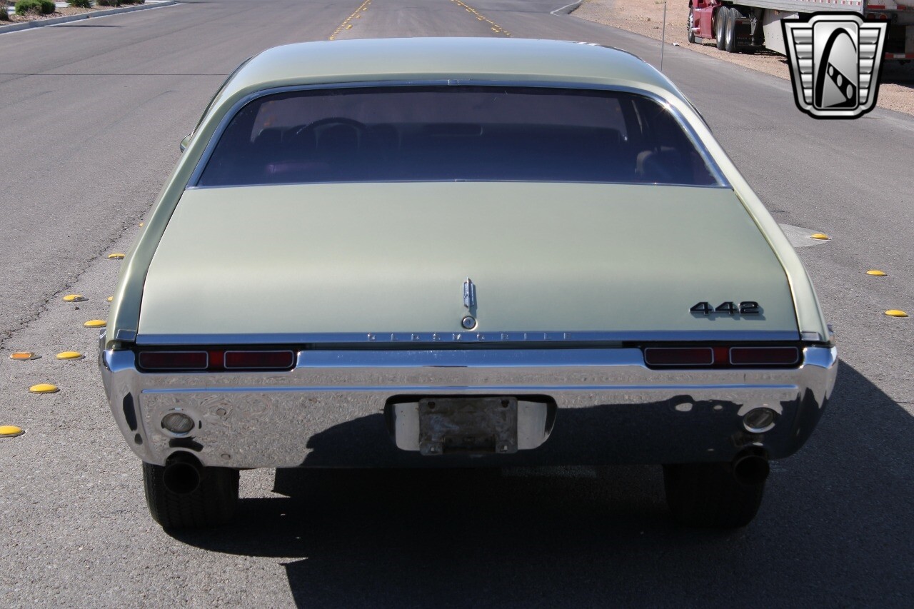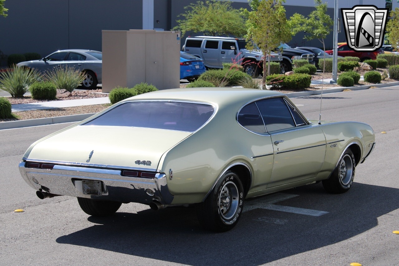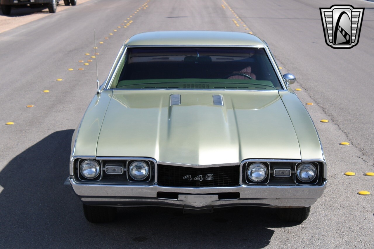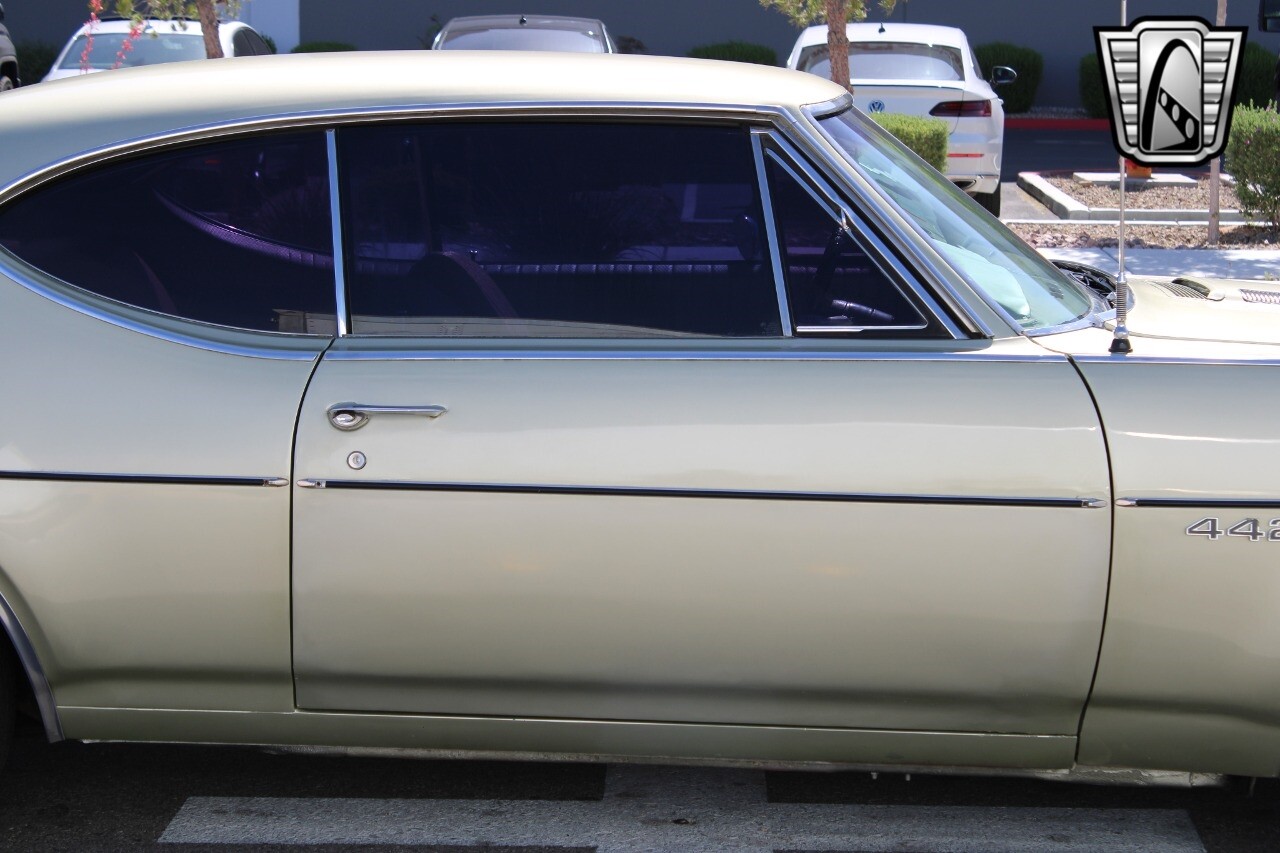 Gateway Classic Cars of Las Vegas presents this 1968 Oldsmobile 4-4-2, a classic American muscle car that is sure to turn heads wherever it goes. This beauty comes in a striking green exterior color that complements its green cloth and vinyl interior, creating a unique and stylish look that is sure to impress.