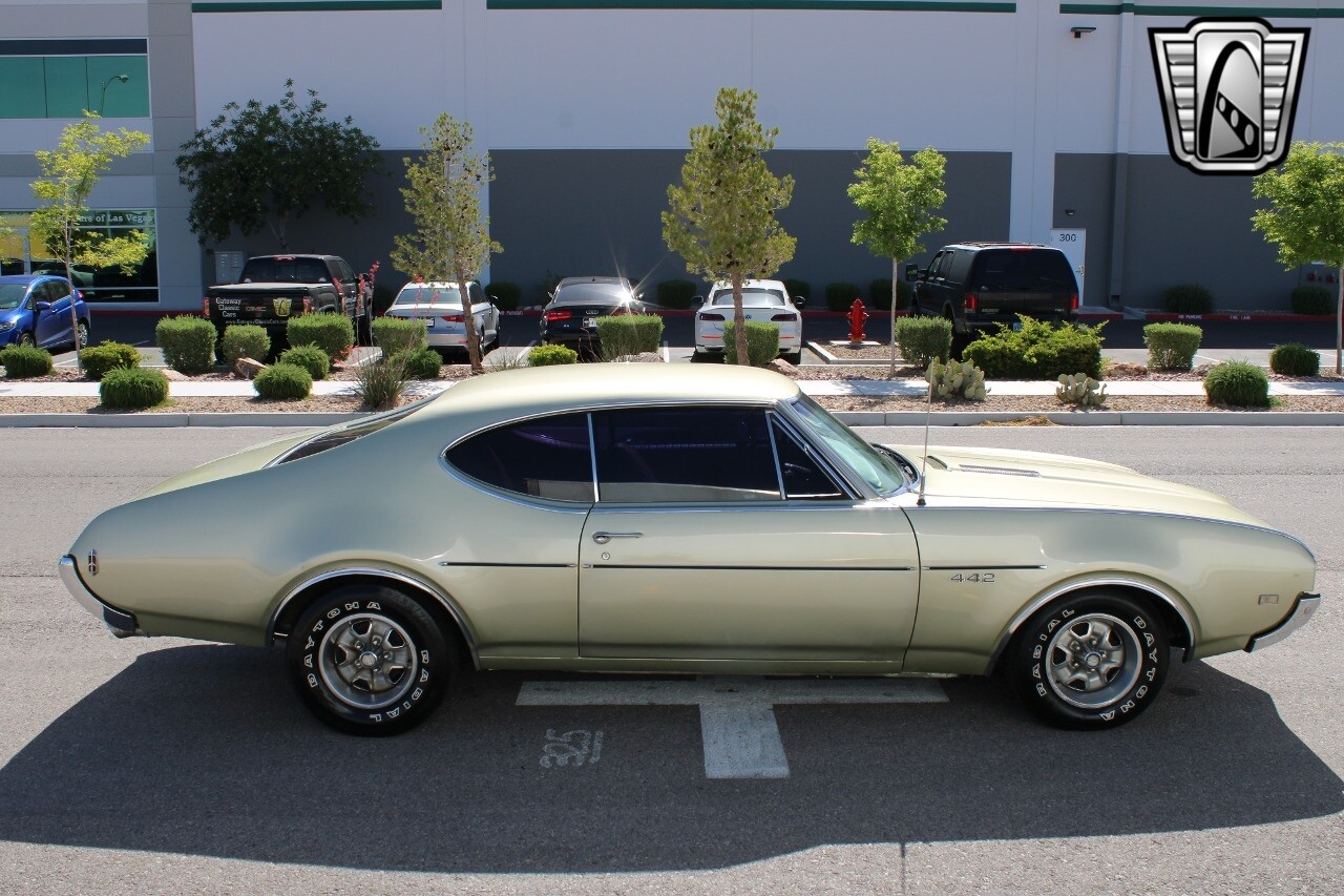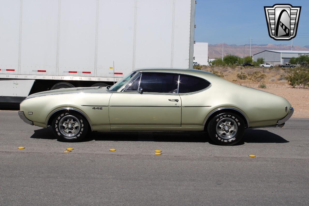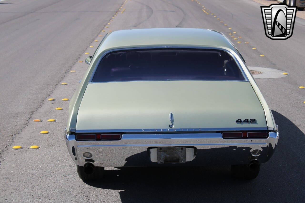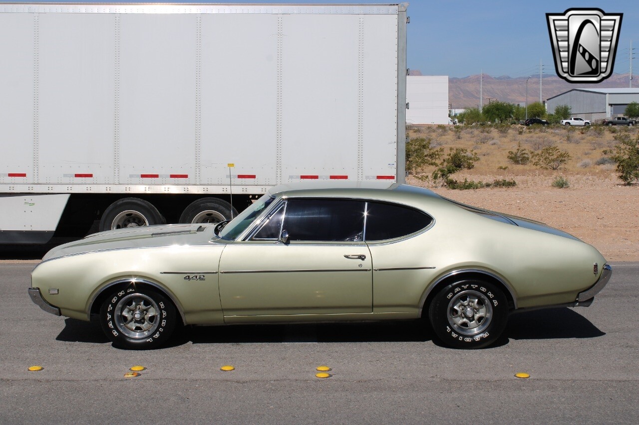 Gateway Classic Cars of Las Vegas presents this 1968 Oldsmobile 4-4-2, a classic American muscle car that is sure to turn heads wherever it goes. This beauty comes in a striking green exterior color that complements its green cloth and vinyl interior, creating a unique and stylish look that is sure to impress.