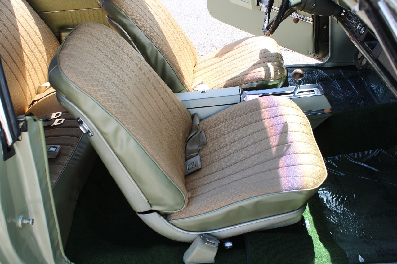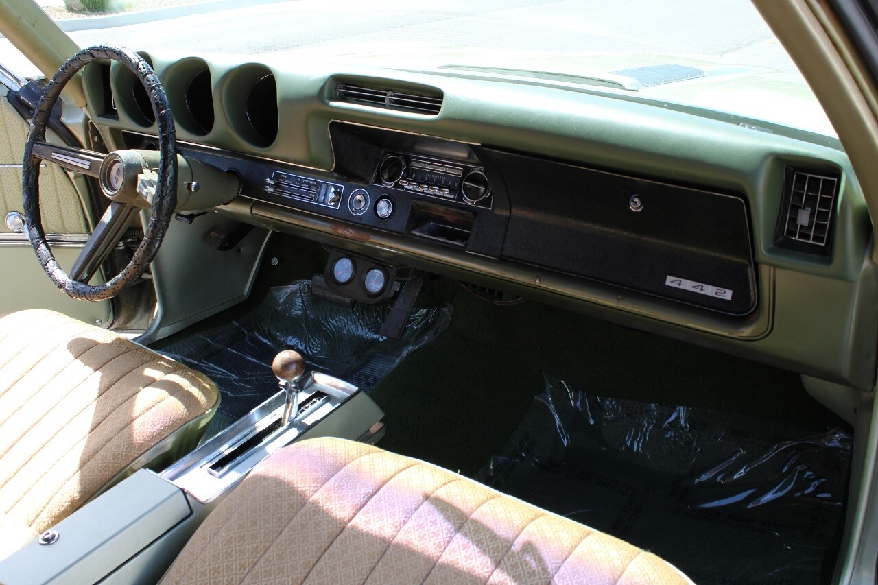 In addition to the cloth interior, this Oldsmobile 442 also features a vinyl interior, offering a unique blend of comfort and style.
