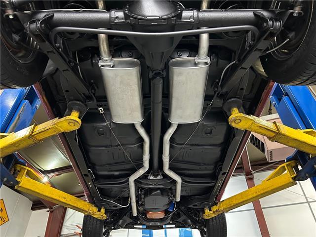 FACTORY EXHAUST MANIFOLDS WITH DUAL EXHAUST AND FLOWMASTER MUFFLERS – SHE SOUNDS JUST RIGHT.