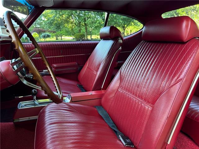 BEAUTIFUL RED BUCKET SEAT INTERIOR WITH CENTER CONSOLE. EVERYTHING IS IN VERY NICE CONDITION INCLUDING THE SEAT UPHOLSTERY, DOOR PANELS, DASH, HEADLINER, CARPET...ETC... HEAT, OPERATING LIGHTS, DASH LIGHTS, GAUGES, BLINKERS, HORN, REVERSE LIGHTS, WIPERS, ETC... ALL WORK. RETRO OLDSMOBILE RADIO. FACTORY TACHOMETER WORKS PERFECT!