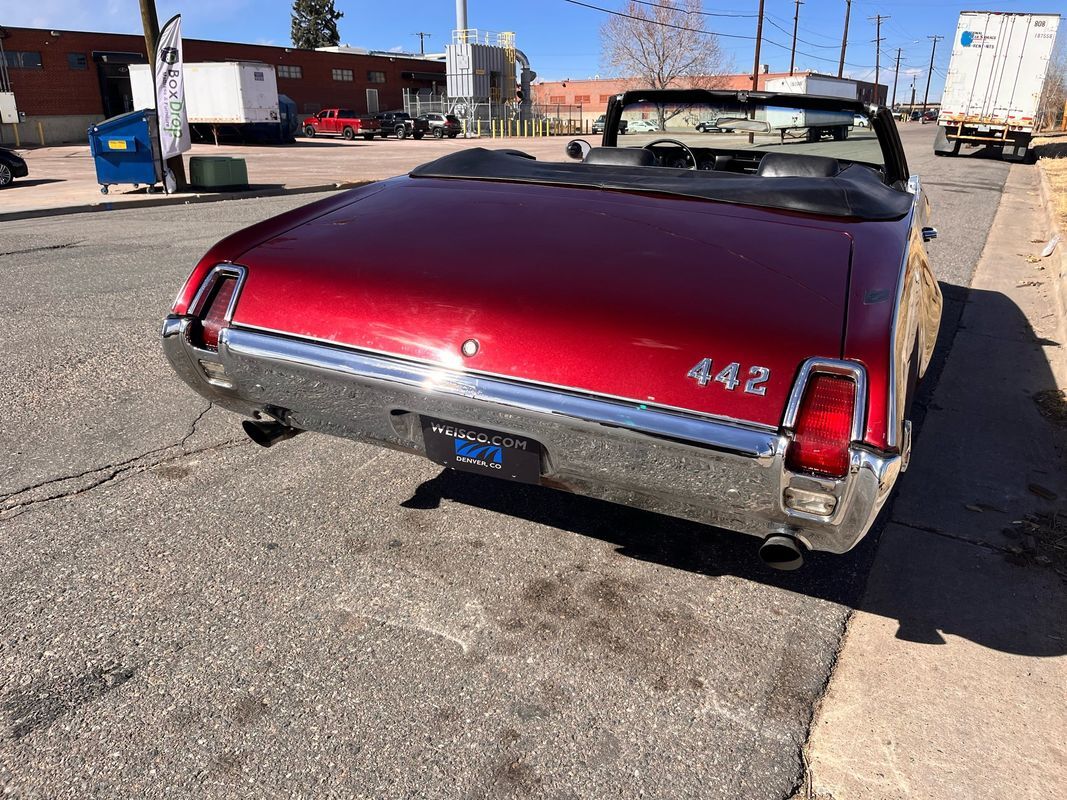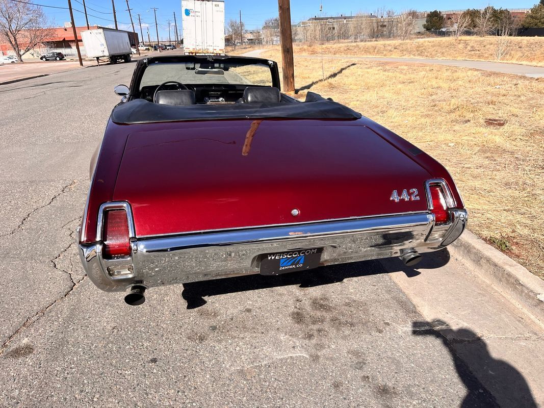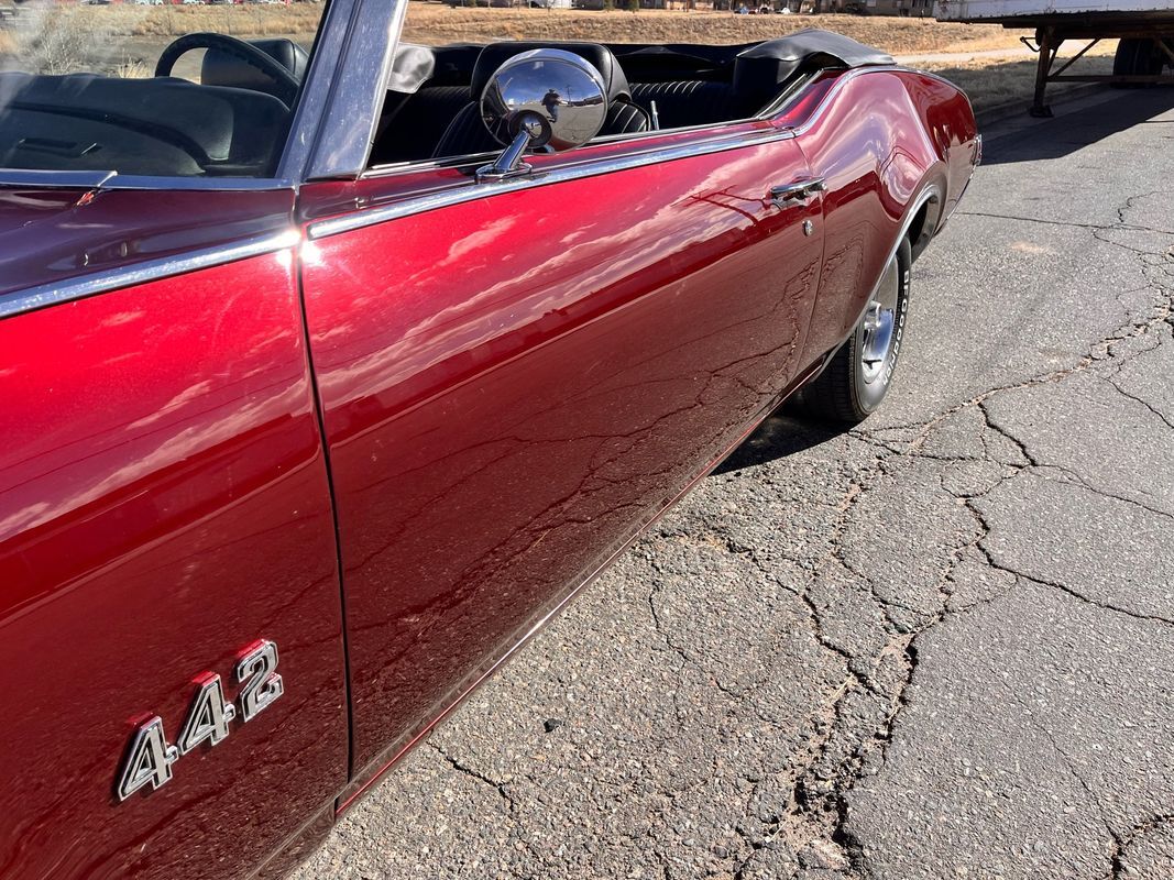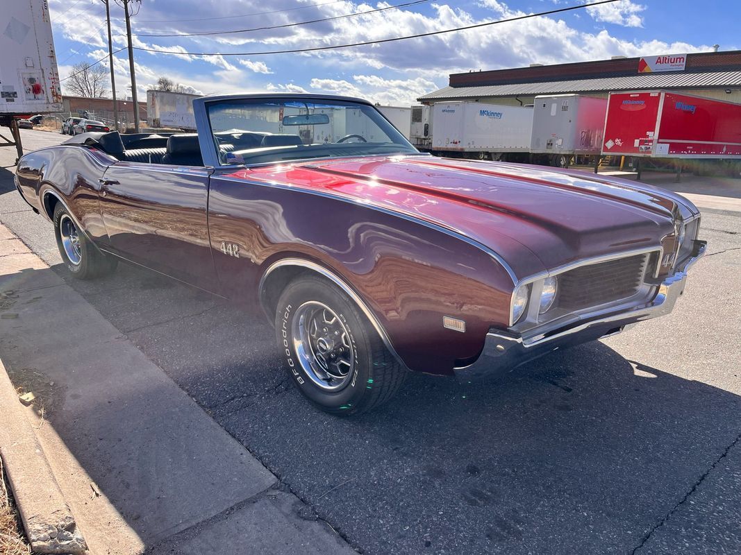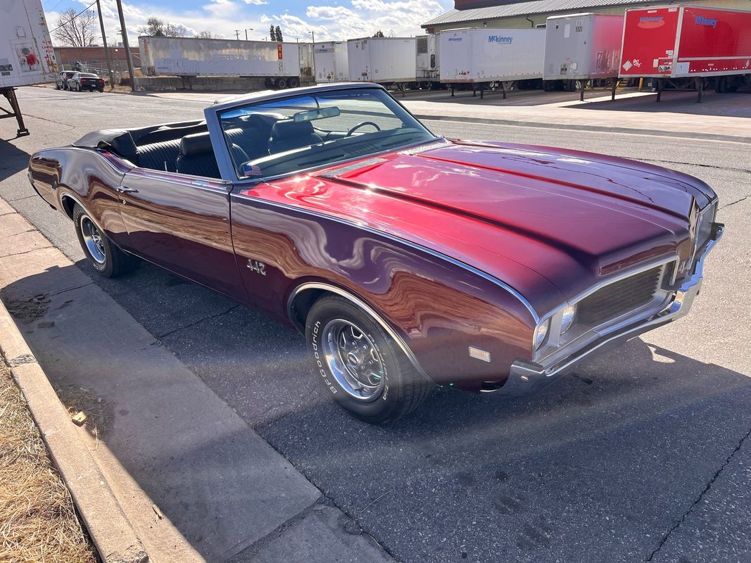 1969 Oldsmobile 442 convertible automatic on the floor with bucket seats &console. Has factory tick -tock-Tac, front power disc-brakes, and power steering. This OLDS 442 has a replacement70 442 engine 455- 365 HP and runs out very nice with upgrades like: hooker headers, msd ignition, edelbrock intake, edelbrock carb, and others. This 442 is arust-free California car andBeautiful inside and out ready for your enjoyment. Call Weisco Motorcars for more info or to set up a time to stop by for a look over this very clean Olds as it will not last long.